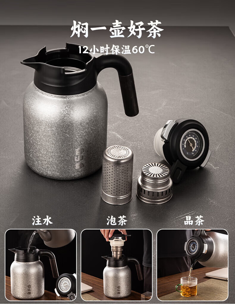 Rongshantang pure titanium stewed teapot 2025 new household thermos kettle large capacity stuffy teapot white tea stewed teapot 1.5L pure titanium inner tank mechanical temperature display stewed teapot