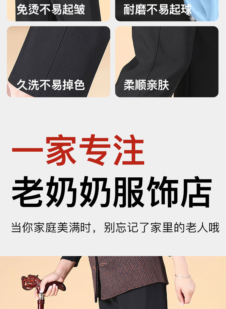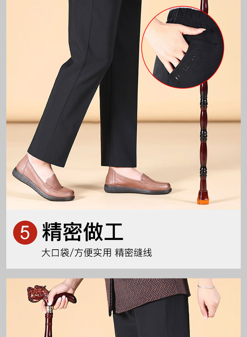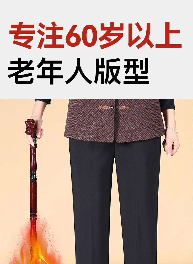 Woodpecker spring and autumn models for the elderly 60-70-80 years old and grandma loose and thickened women's winter velvet warm pants black (autumn and winter velvet models) 4XL (recommended 120-140Jin Jin is equal to 0.5 kg)