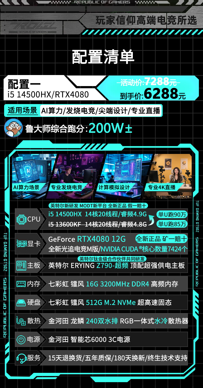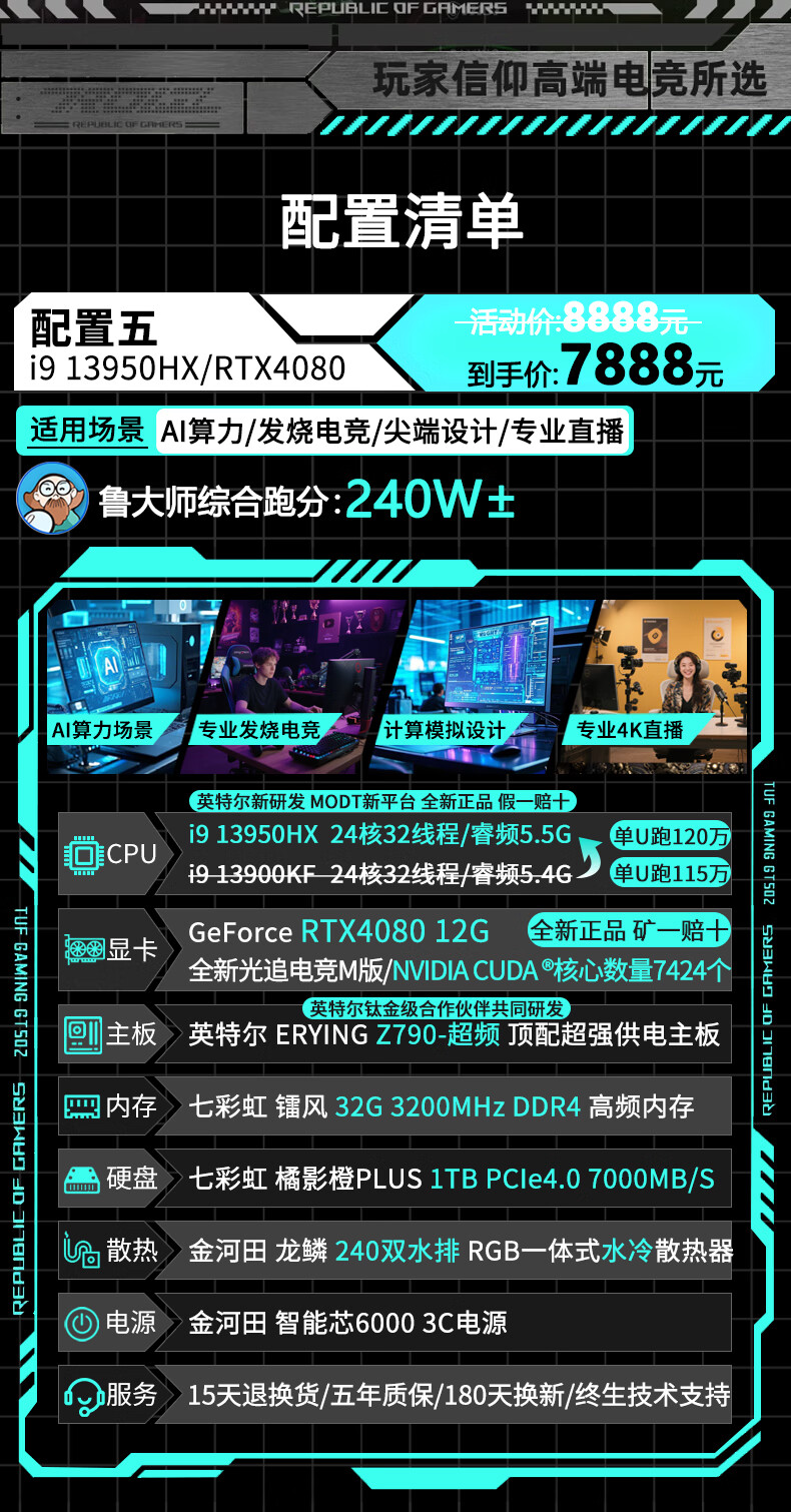 Colorful RTX4090/RTX4080 top-end independent graphics + Intel 14th generation i9 14900/i7 14700/i5 13600KF desktop computer AI design e-sports live broadcast host five 24-core overclocked i9 13950HX+RTX4080 top-end computer host five-year warranty丨New and authentic