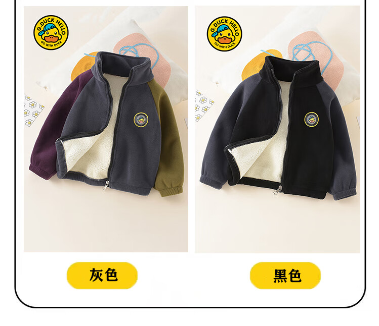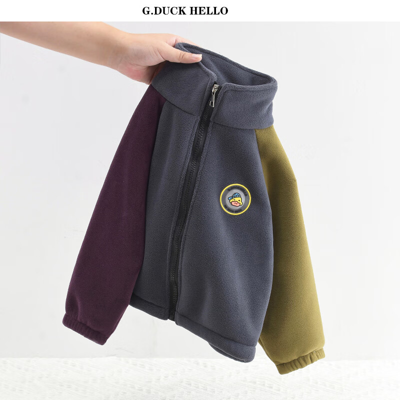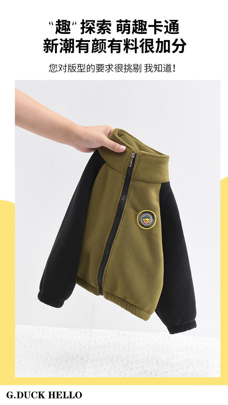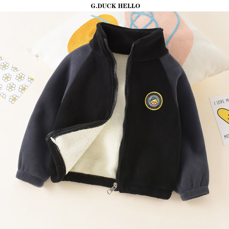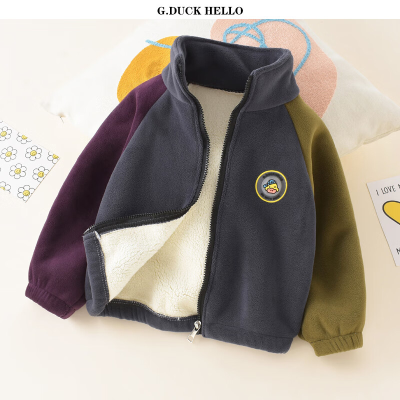 G.DUCKKIDS Little Yellow Duck Boys' Jacket Autumn and Winter Australian Velvet Children's Clothing 2024 New Baby Plus Velvet Thickened Polar Fleece Gray Little Yellow Duck Upgraded Thickened Australian Velvet Jacket 120 (XL) Recommended height is about 110cm