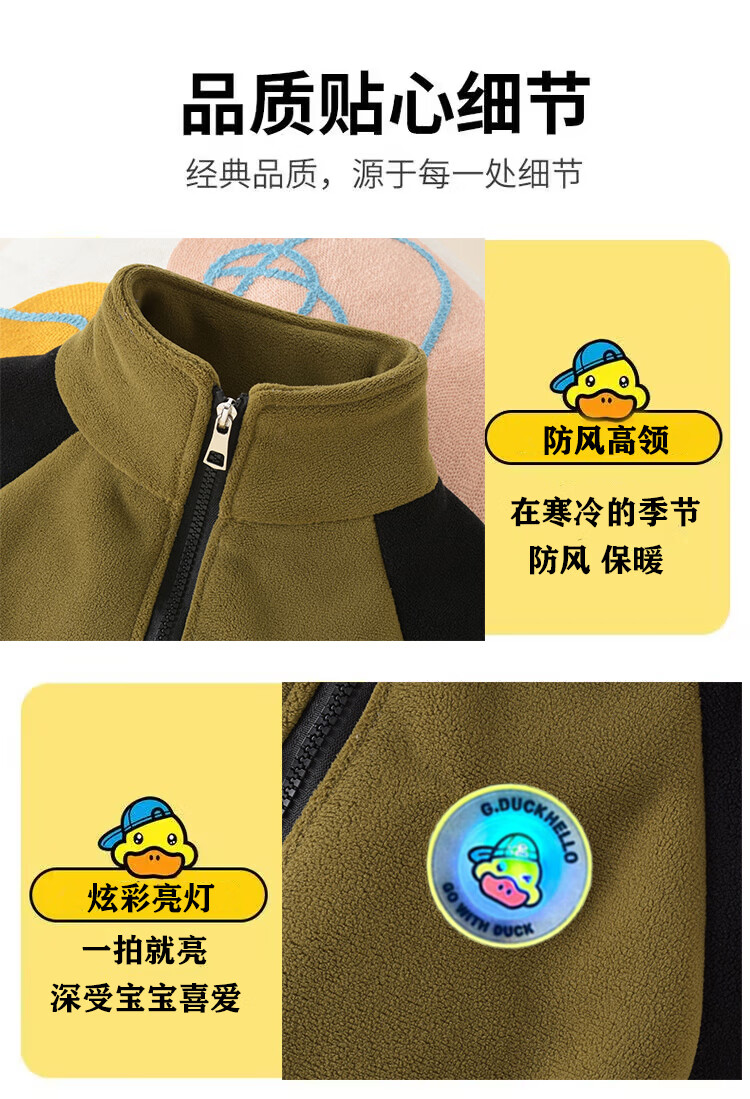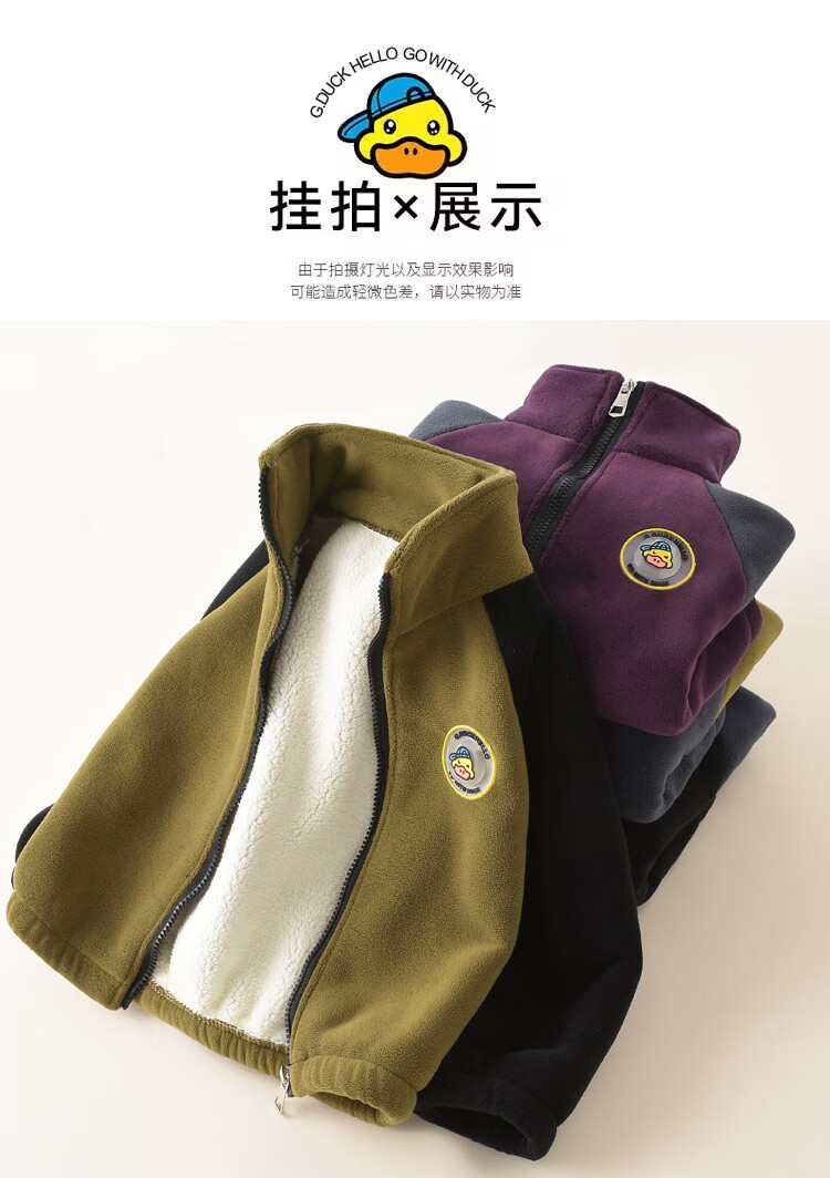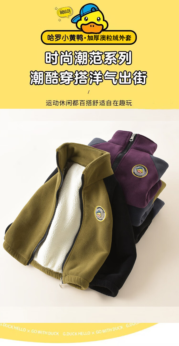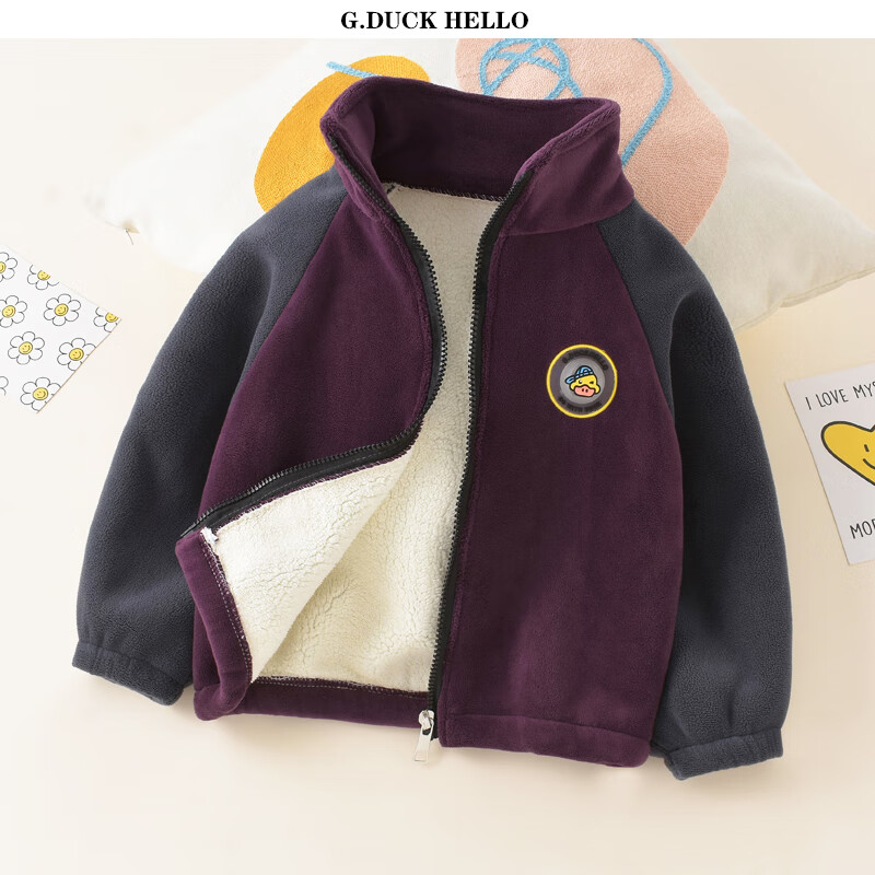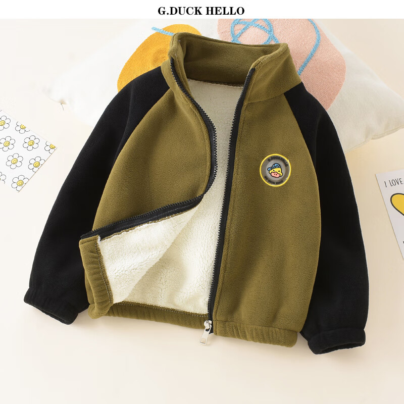 G.DUCKKIDS Little Yellow Duck Boys' Jacket Autumn and Winter Australian Velvet Children's Clothing 2024 New Baby Plus Velvet Thickened Polar Fleece Gray Little Yellow Duck Upgraded Thickened Australian Velvet Jacket 120 (XL) Recommended height is about 110cm