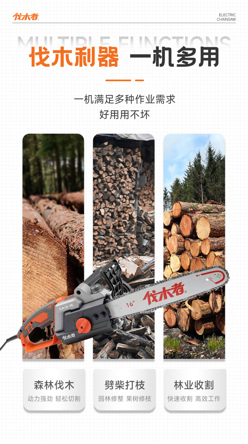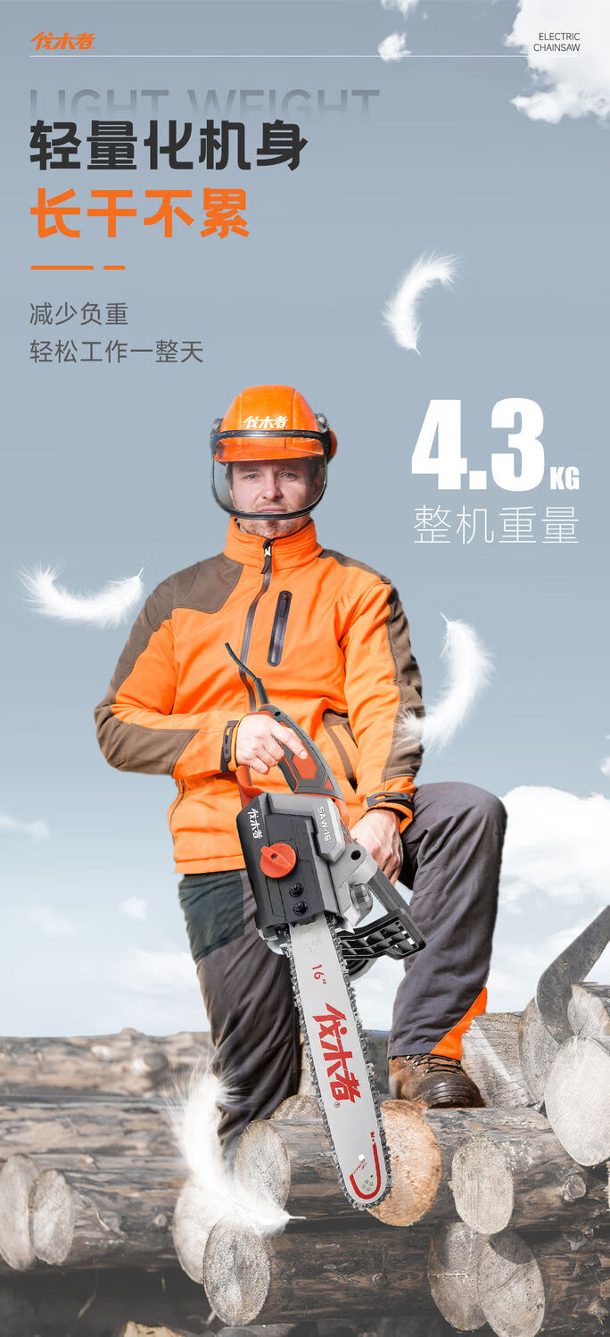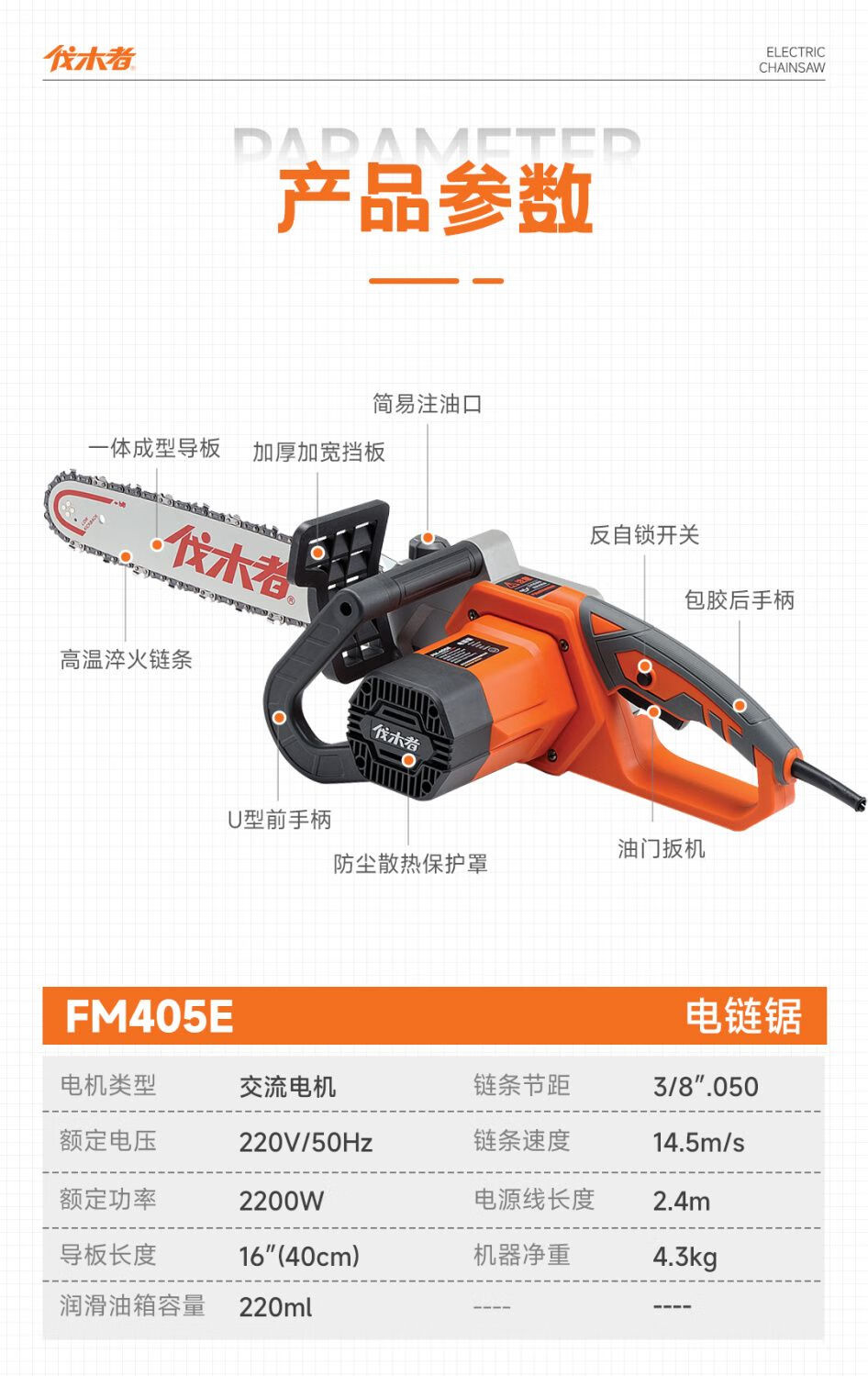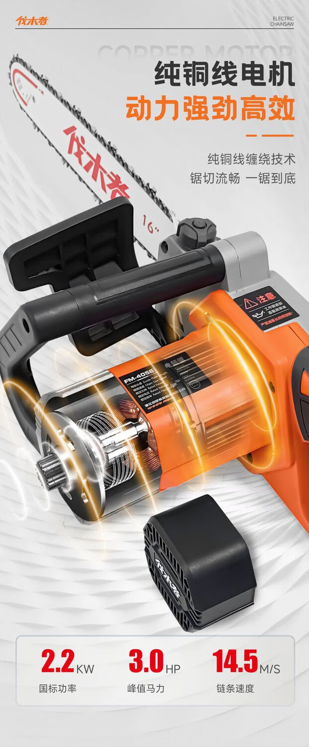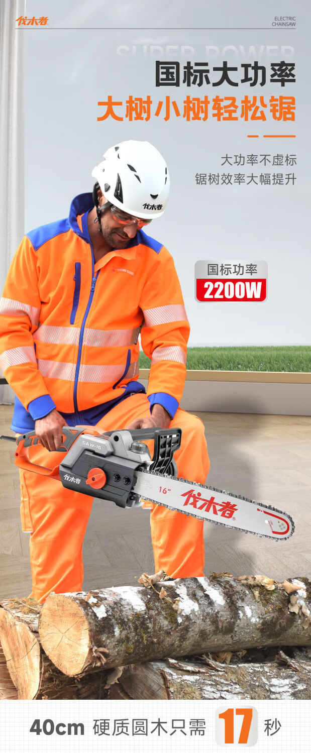 Logger WOOD MAN Backbone Logger Electric Chain Saw Household Firewood Chainsaw High Power Plug-in Logger Saw New Electric Chain Saw MATT Chain 2+ Original Guide Plate 2 16-inch Logger 405 Electric Chain Saw-2200W
