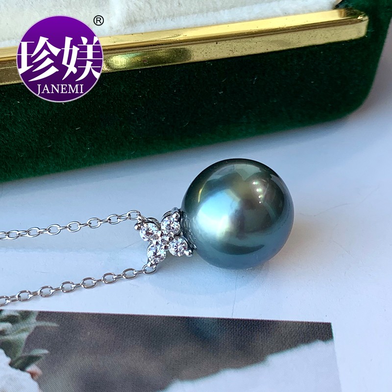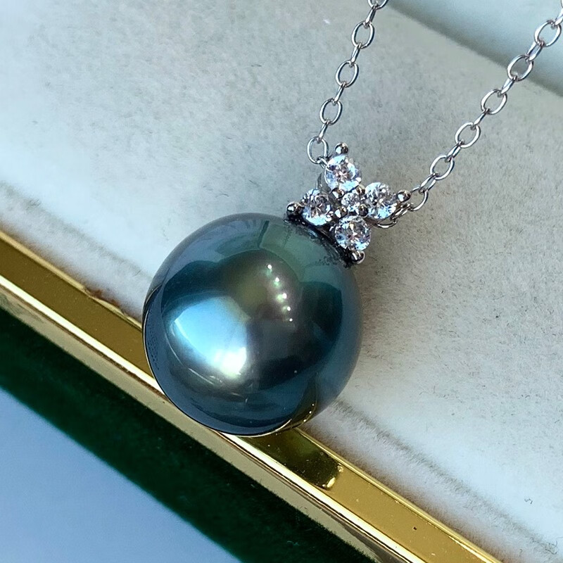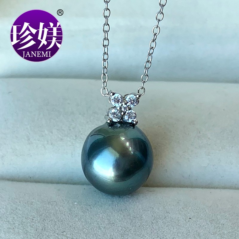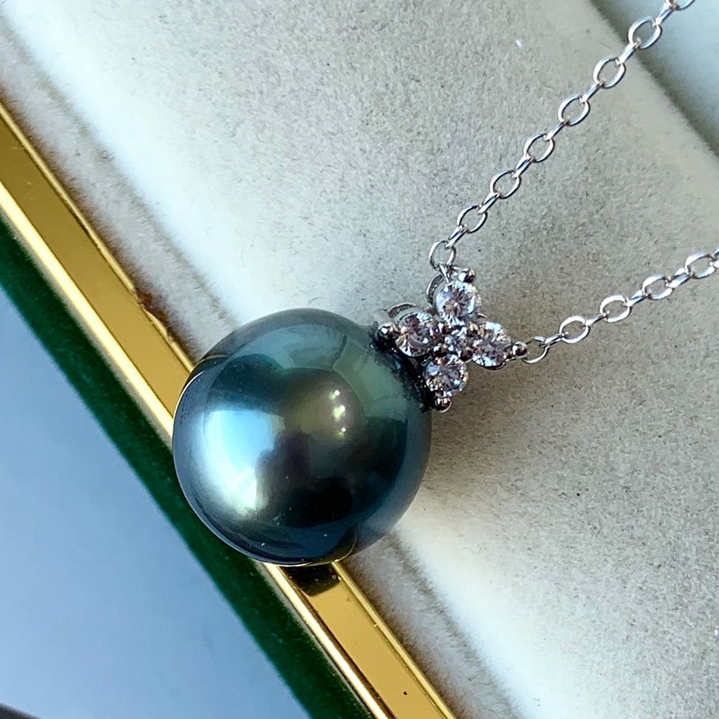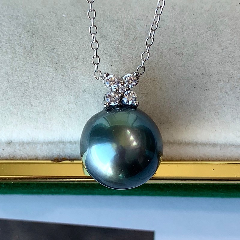 Guran Zhenyu Jewelry 10-11mm Perfect Round Tahitian Black Pearl Pendant Slightly Flawed Seawater Pearl Pendant S925 Silver
