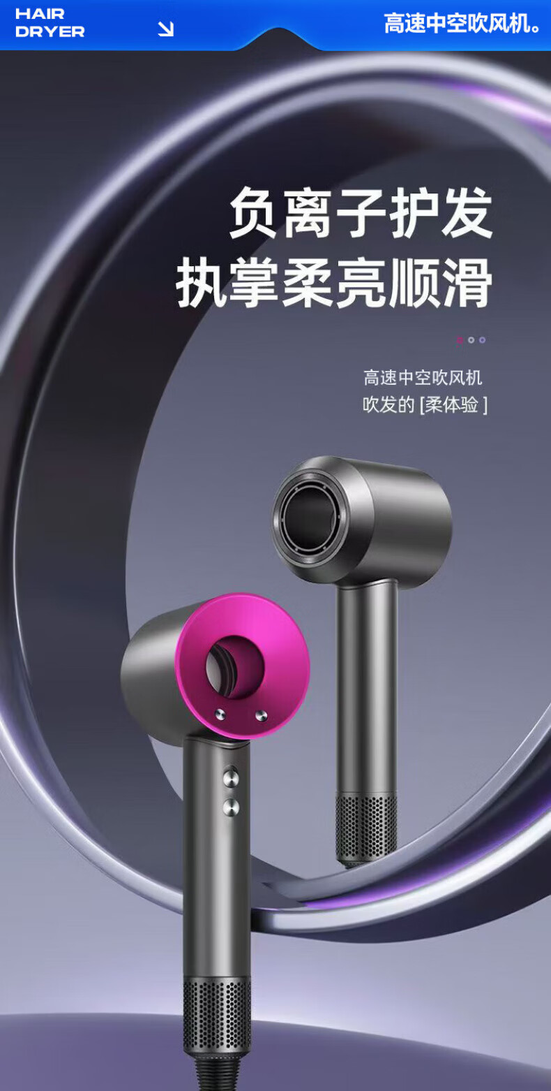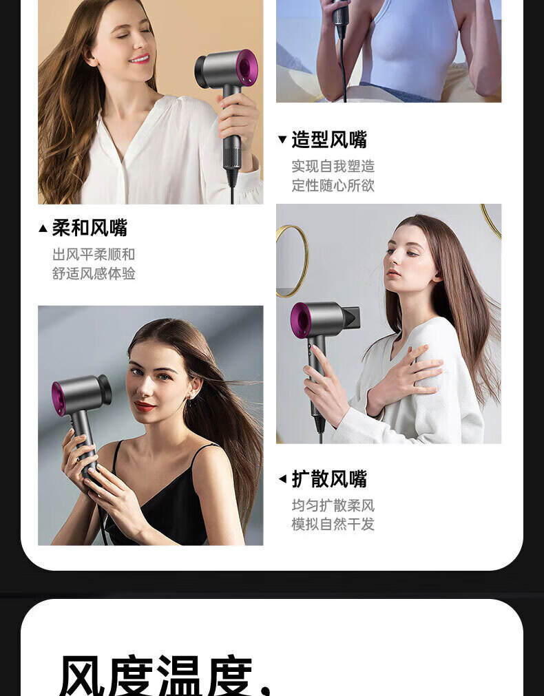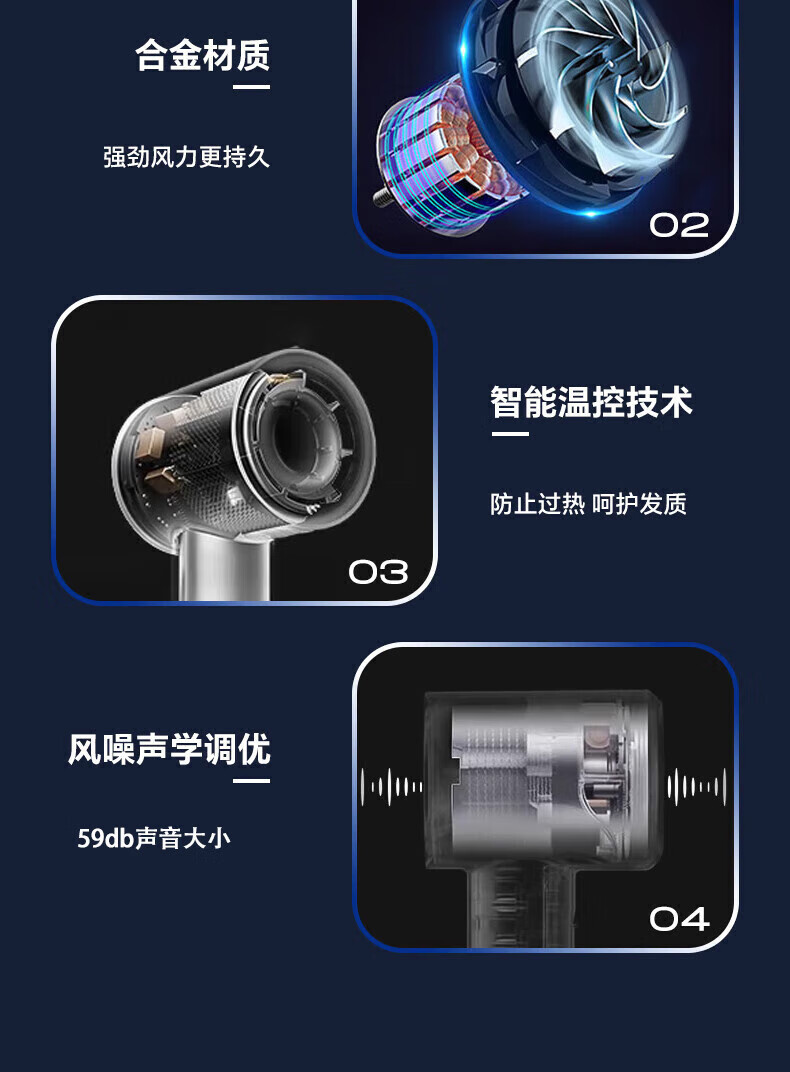 DIKTT German hair dryer, household mute negative ions, high power, no damage to hair, high-speed, quick-drying, leafless hair dryer, hair care, dormitory portable, business trip, baby, pet, lady only, digital display moonlight white, high-speed dry hair care - intelligent digital display 1.8m+ gift box
