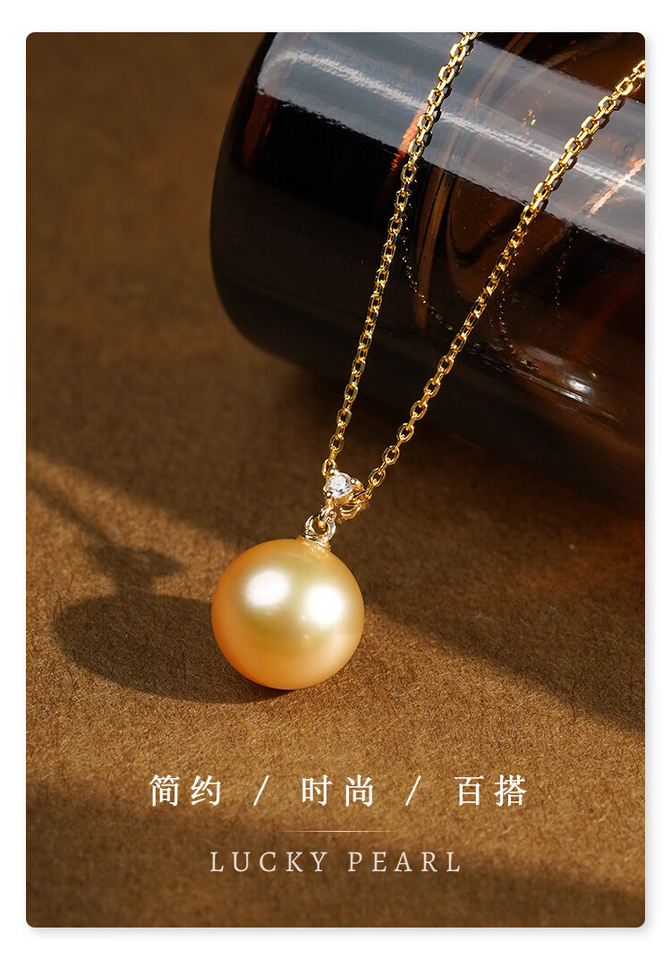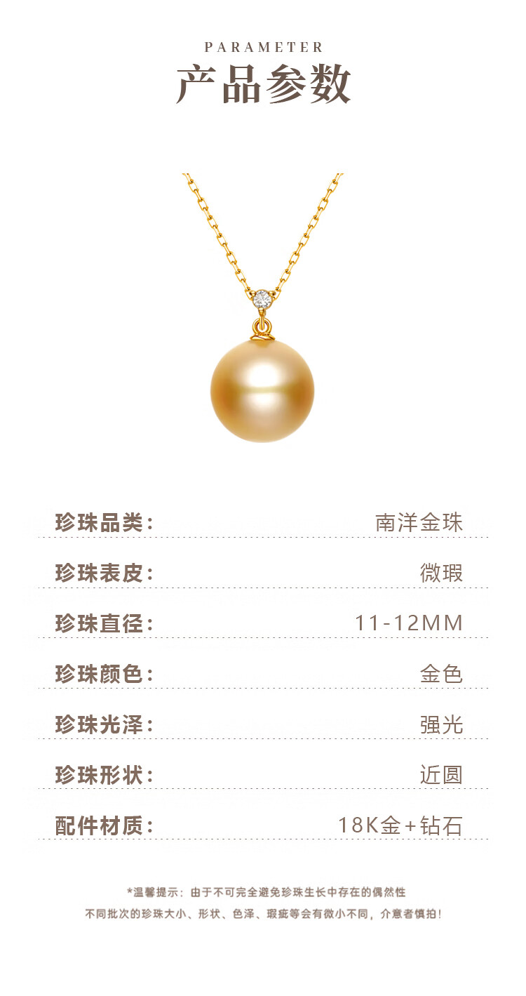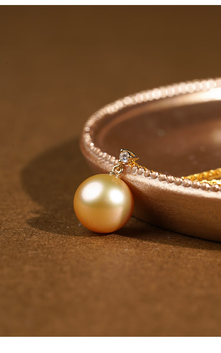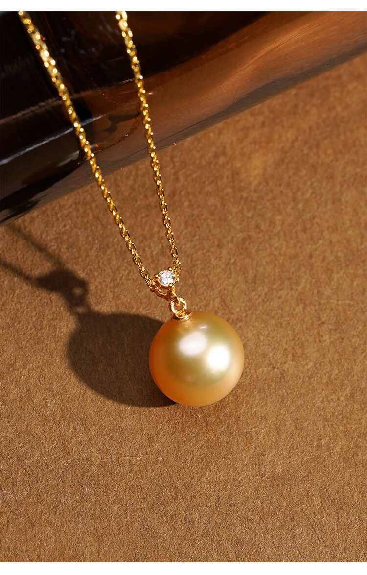 Guran Nanyang Gold Pearl Pendant 11-12mm Seawater Pearl 18K Gold Sparkling Diamond Necklace Birthday Gift for Girlfriend