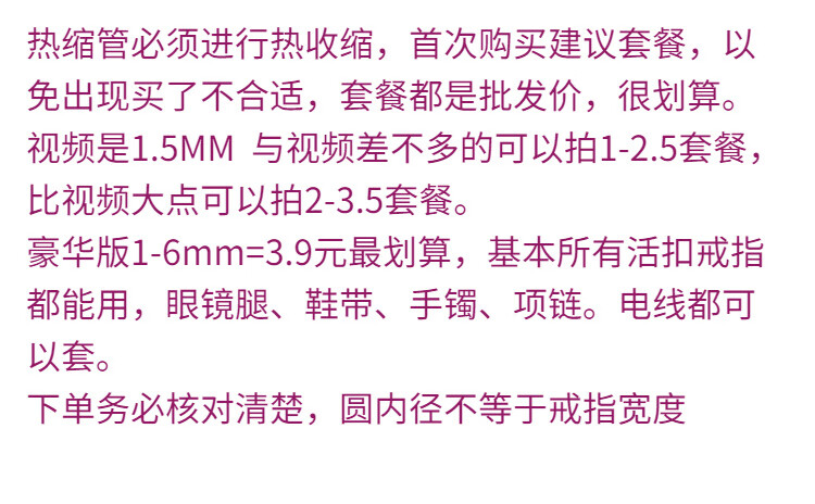 Special casing for Jiemo live ring, transparent rubber tube to fix open ring, heat shrinkable tube, shrink protective cover, gold and silver processing, women's ring category, five models, 20 cm each