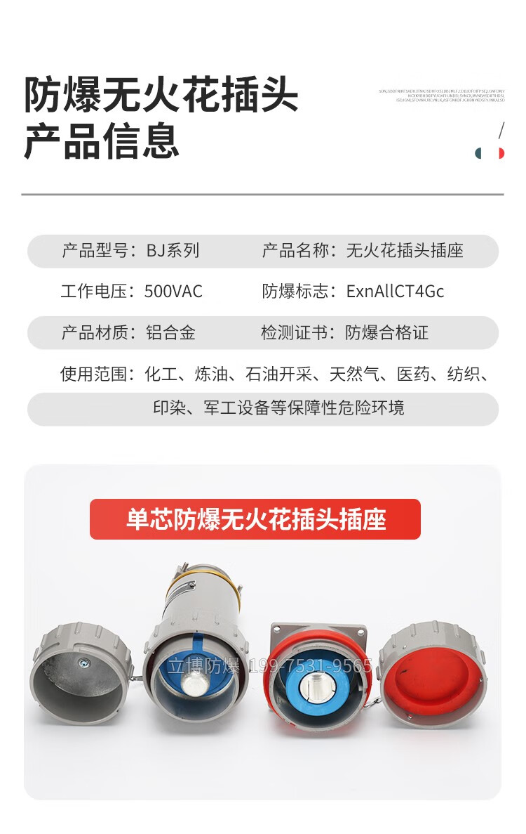 High current single-core non-sparking explosion-proof connector aviation industry plug socket plug-in fixed fixed GZ with ferrule set of male + female 800A