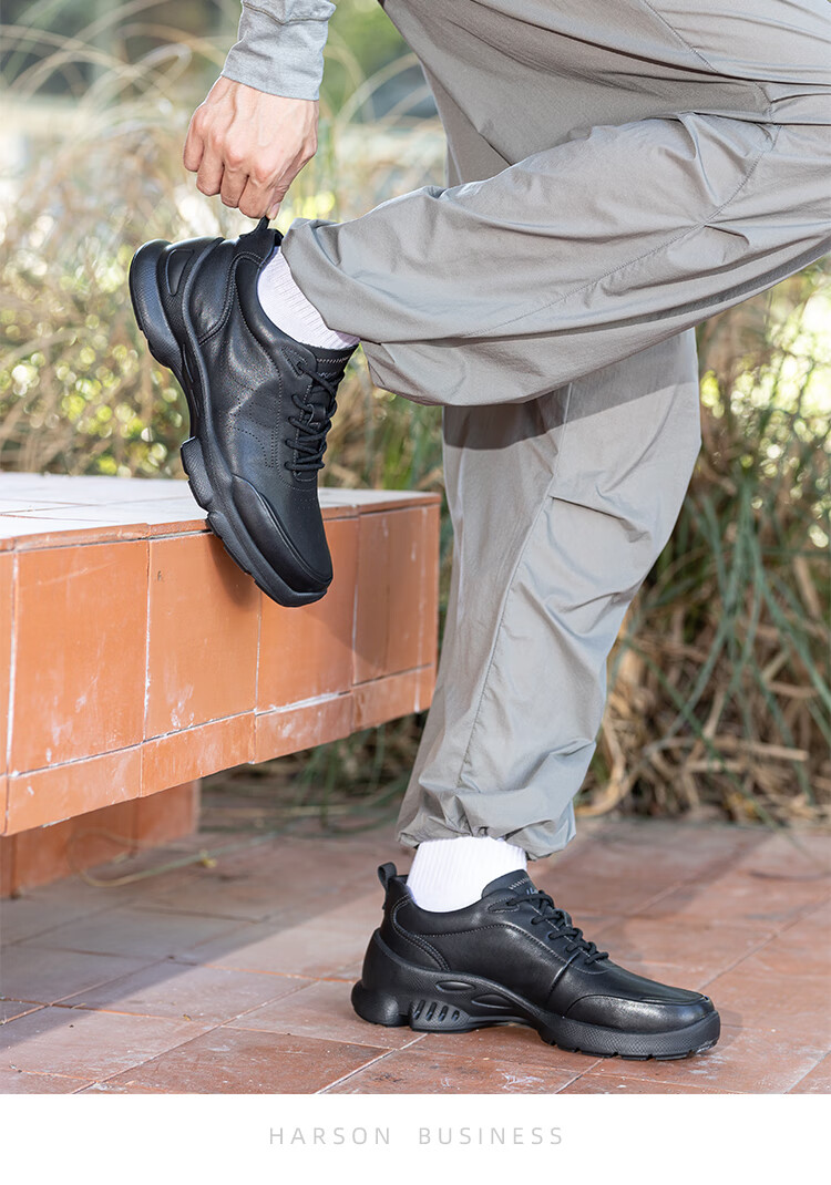 Harson first-layer cowhide men's shoes, high-end casual shoes, autumn commuting casual sports leather shoes, business thick-soled official large-size shoes, black 45