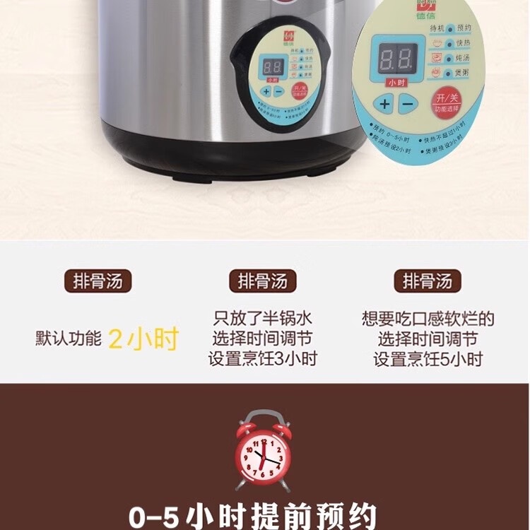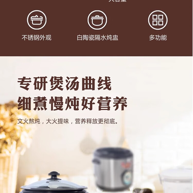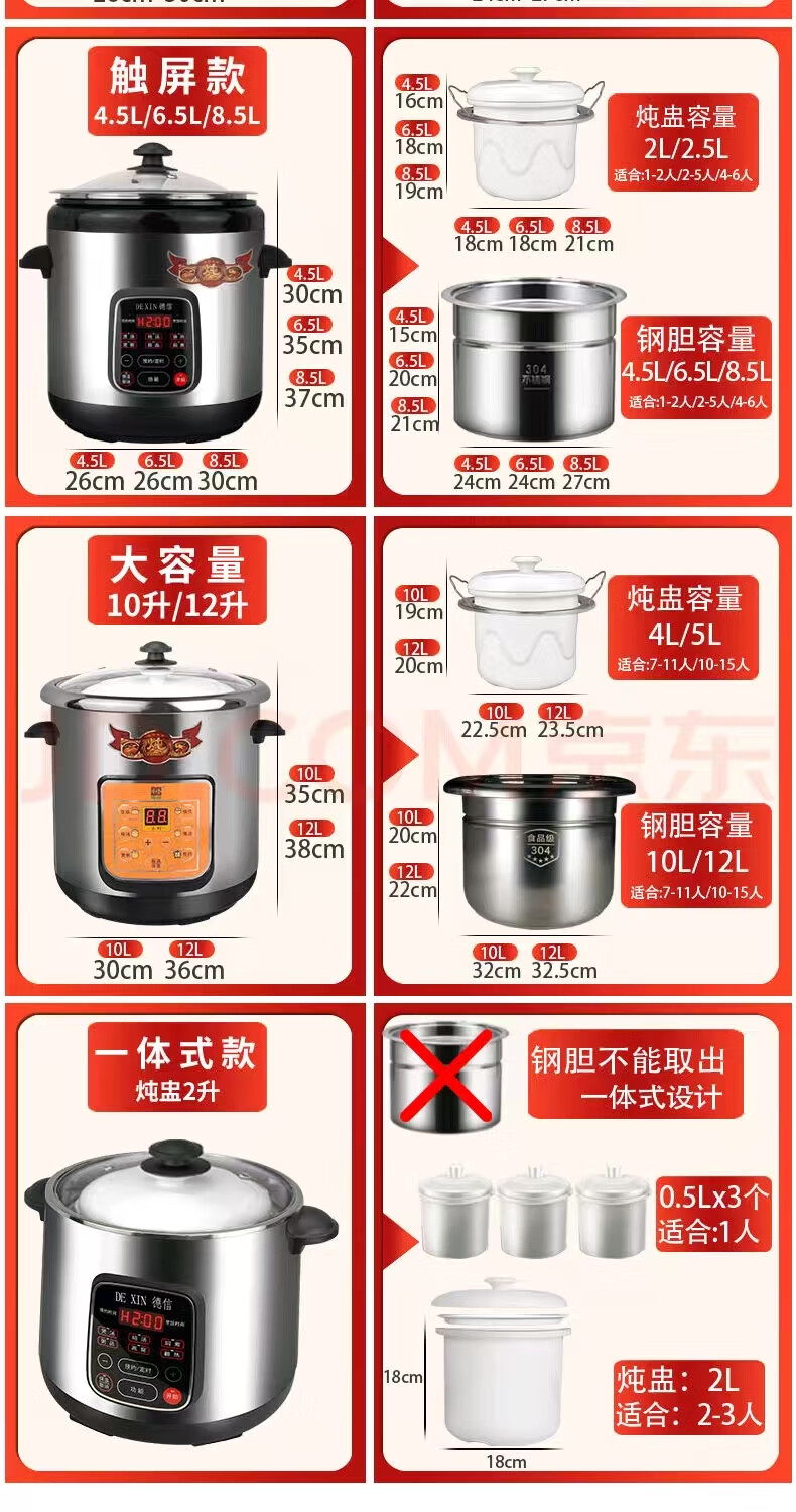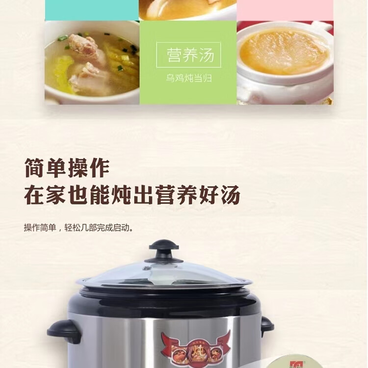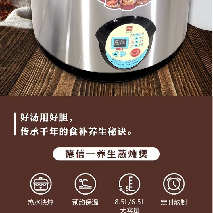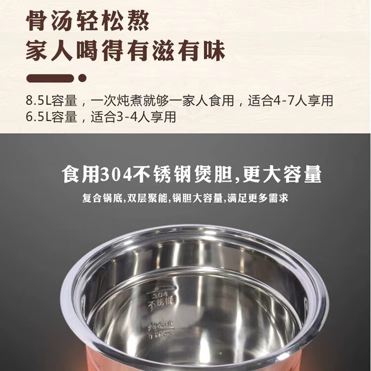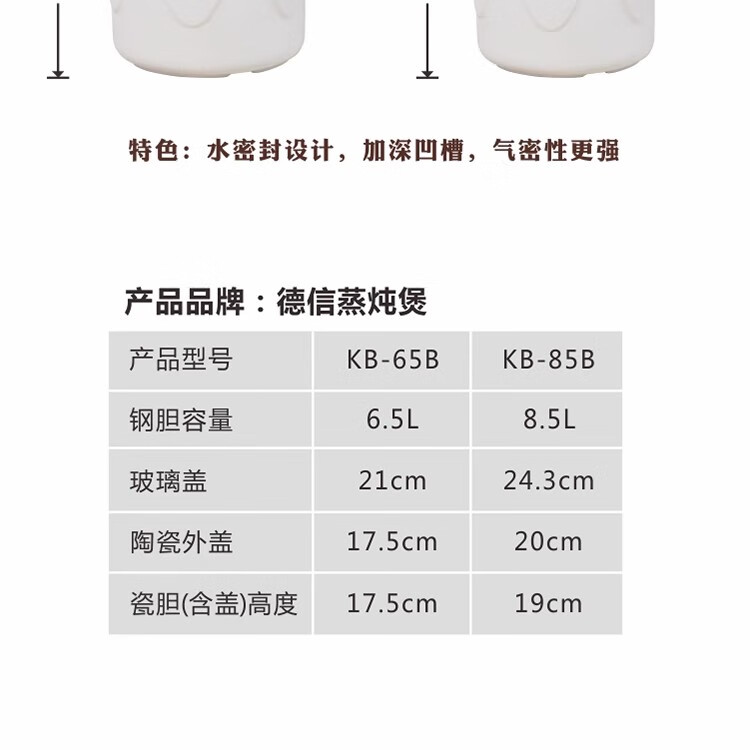 Triangle brand Dexin KB-65B 304 stainless steel water-proof electric stew pot, electric stew pot, porridge pot, electric soup pot, double pot 6.5L CBC65C 6.5L suitable for 3-5 people