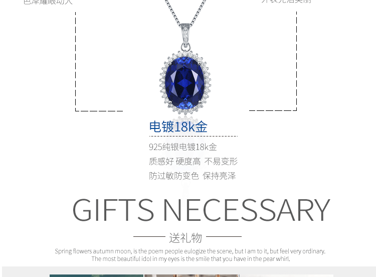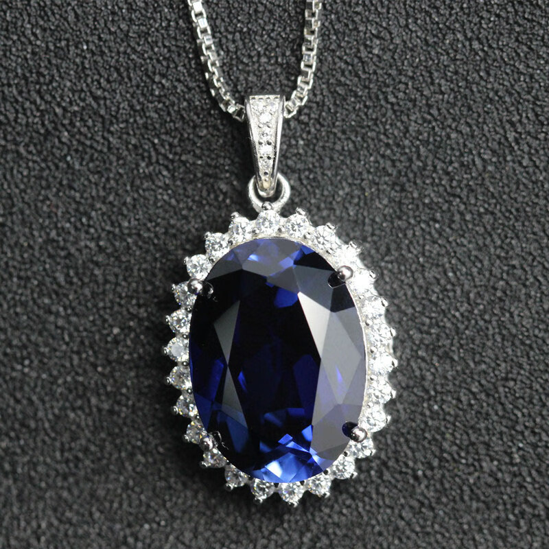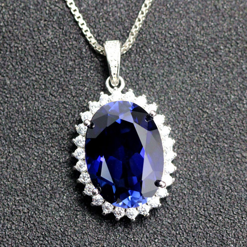 Princess Guran oval tanzanite sapphire necklace pendant for children clavicle sterling silver versatile colorful gems that do not fade white gold (main stone 8X10mm) without chain