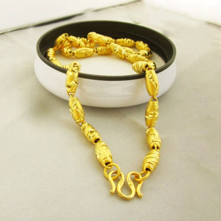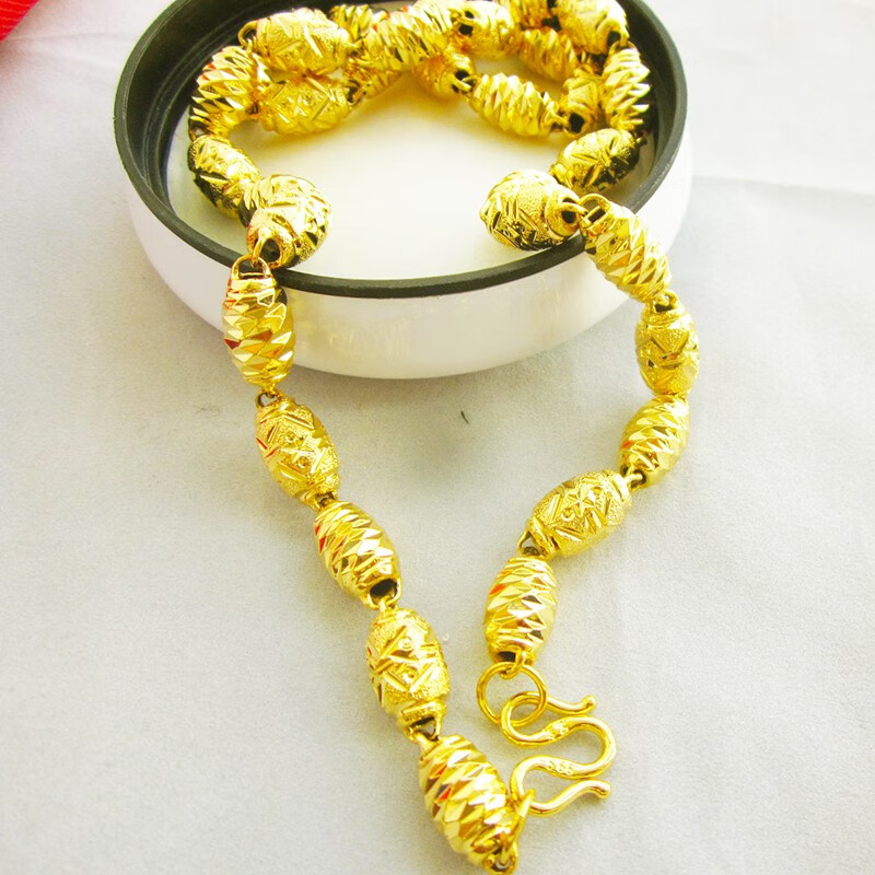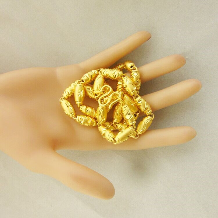 Cherry edge Vietnamese sand gold necklace men's hollow thick 24K simulated gold-plated 999 olive beads non-fading large gold chain 6 mm thick 60 cm 57 grams