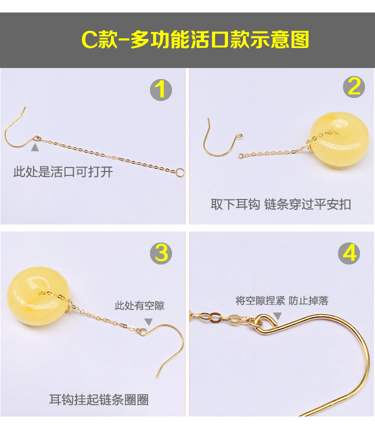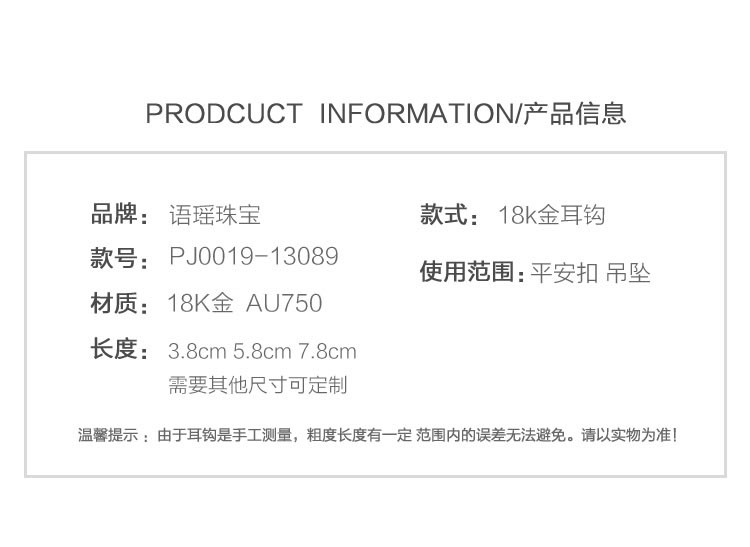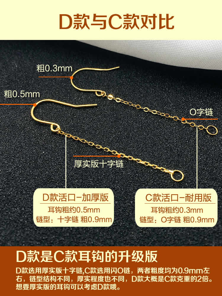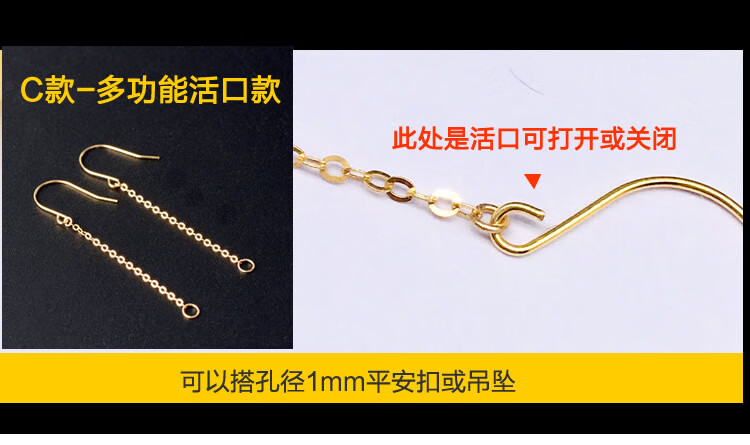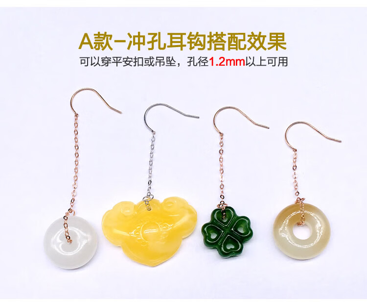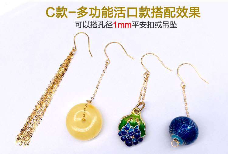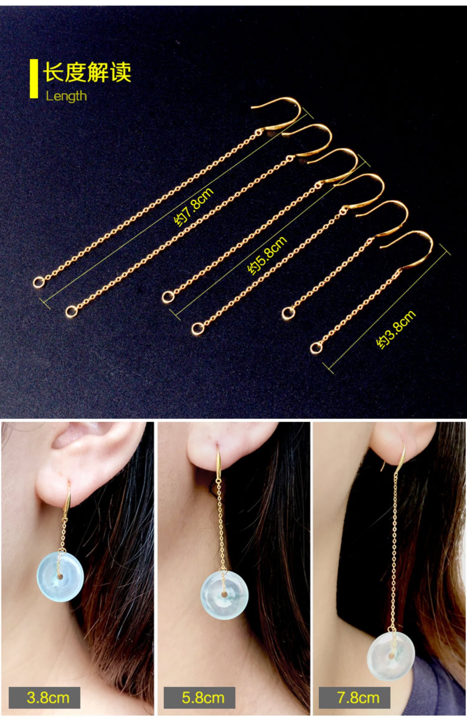 Guran 18k gold universal ear hook small safe buckle long jade earrings jade empty support diy accessories color gold homemade earrings C type 3.8 cm - durable version - please note the color