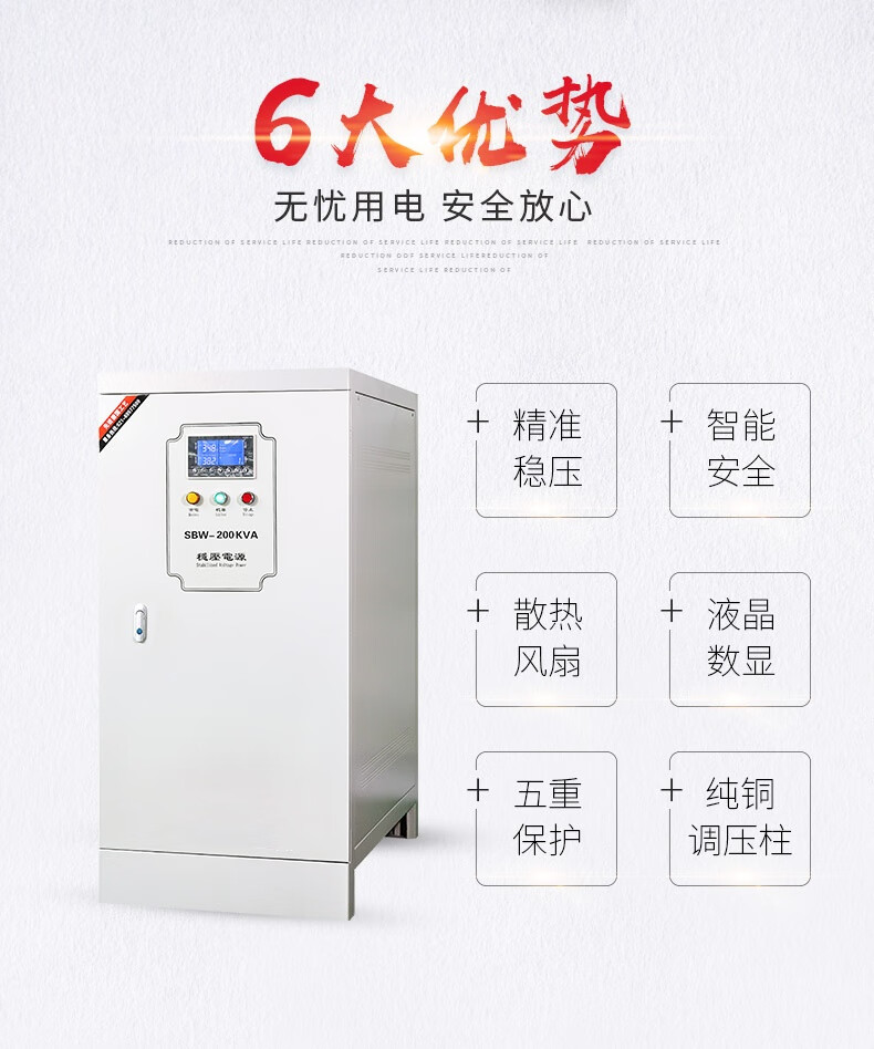 Aoshituo three-phase fully automatic compensated power voltage stabilizer industrial-grade copper column voltage regulator SBW50kVA100kVA300kVA SBW-30KVA/30KW three-phase 380V