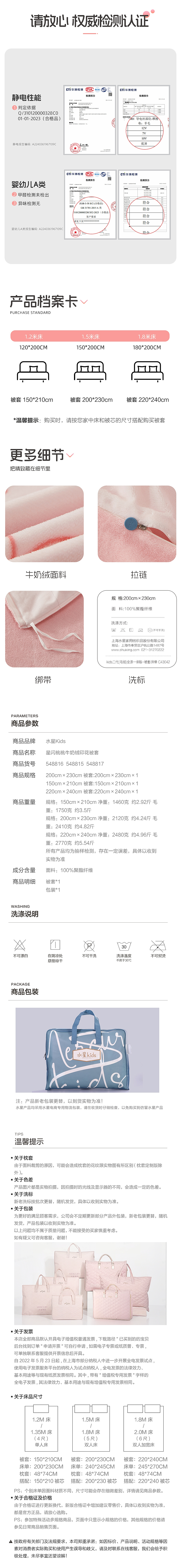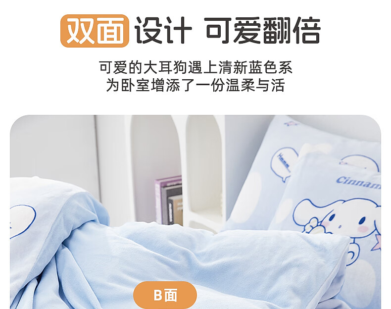Mercury Children's Double-sided Milk Velvet Children's Quilt Cover Student Dormitory Quilt Cover Single Piece Infant Class A Single and Double Bedding Star Flash Peach Milk Velvet Printed Quilt Cover 150cm*210cm