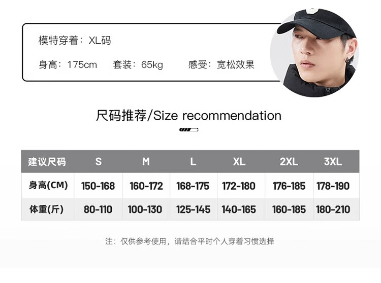 China (cm) 165 / 88-90 170 / 96-98 175 / 108-110 180 / 118-122 185 / 126-130