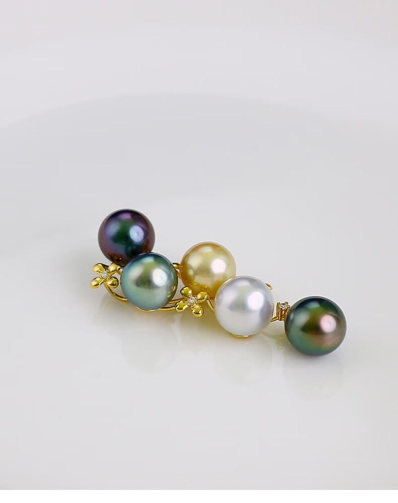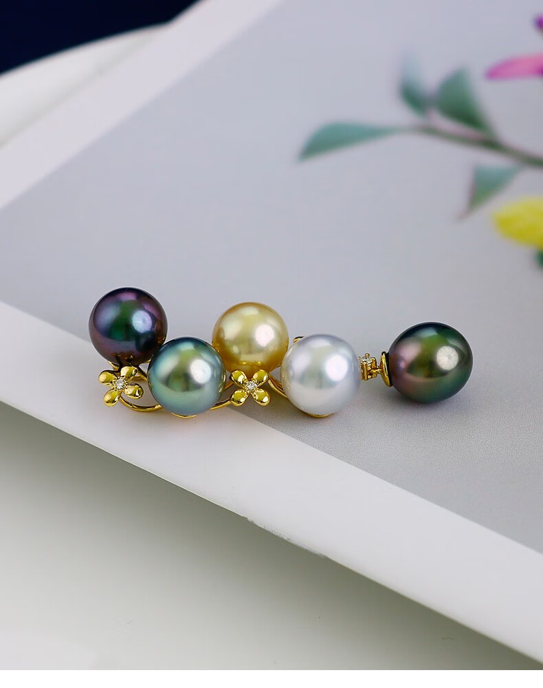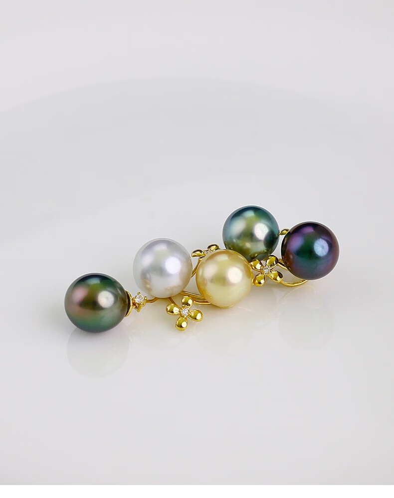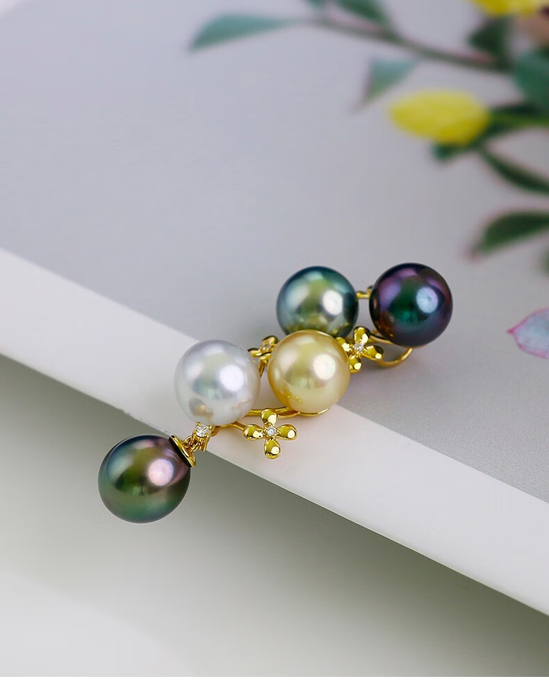 Chishe Pearl 18K Gold Diamond Tahitian Black Pearl Colorful Australian White South Sea Gold Pearl Mixed Color Saltwater Pearl Pendant