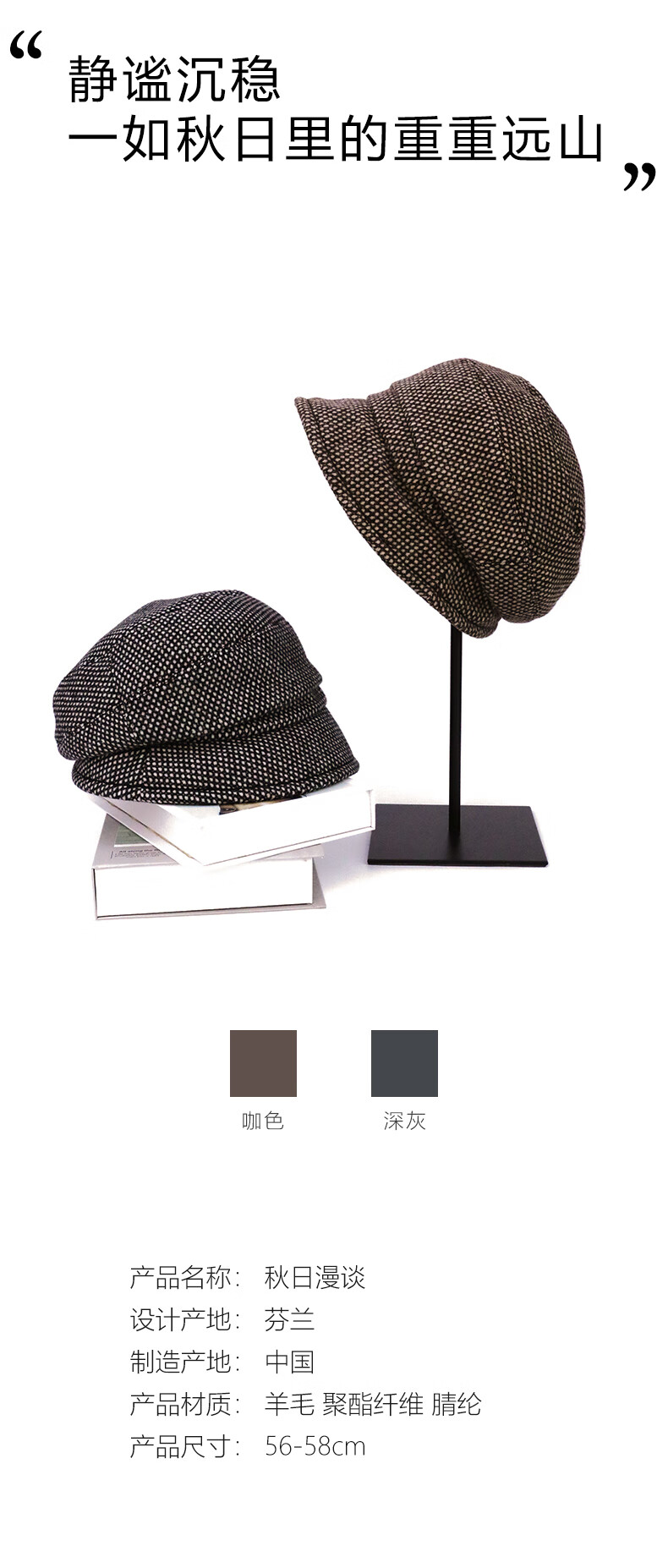 Maria Gucci (MARJA KURKI) warm wool hat for women to give to relatives and friends in winter, simple beret, fashionable casual hat, dark gray