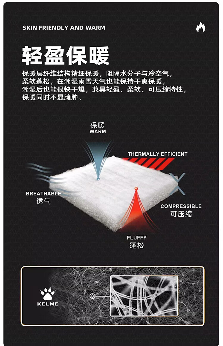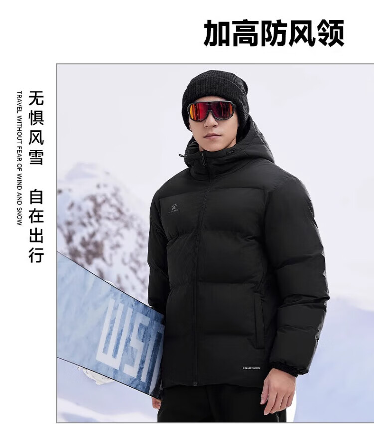 KELME Sports Hooded Cotton Jacket 2025 Winter New Heat Storage Warm Cotton Jacket Thickened Fashionable Bread Jacket Agate Black Graphene Heat Storage 2XL