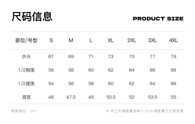 Size (cm) 42 44 46 48 50