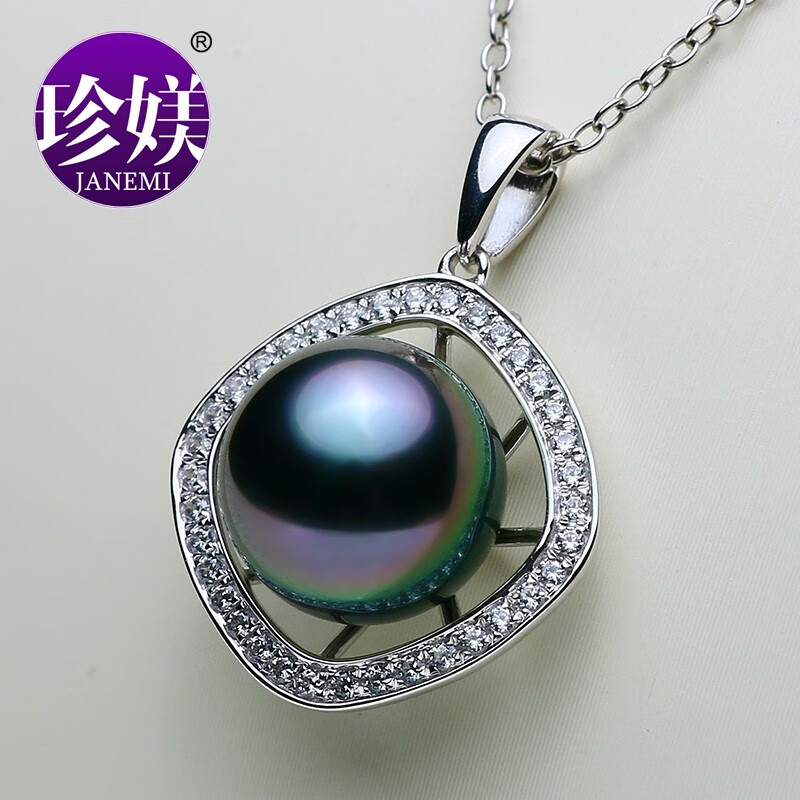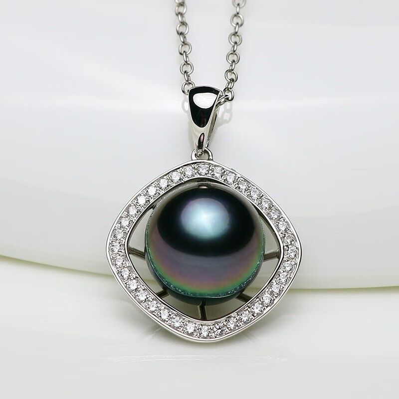 Mu Qinzhenyu 18K gold Tahitian black pearl pendant 9.9mm malachite green transparent purple seawater pearl necklace pair