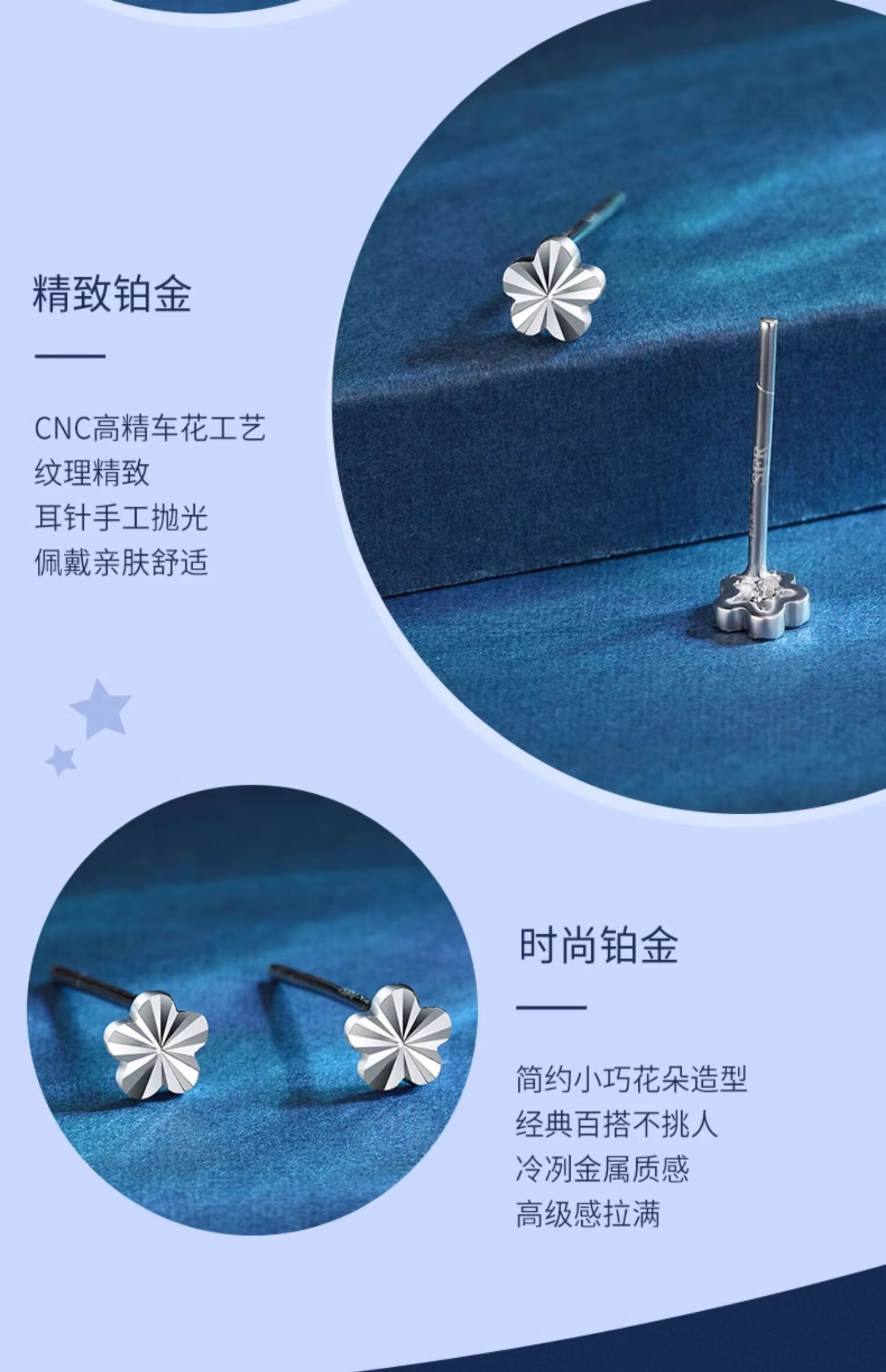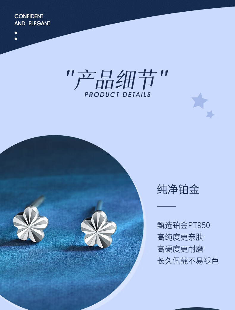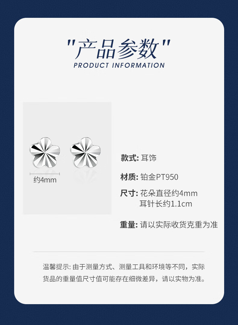 Falling Flowers and Crying Spring Platinum Earrings for Women pt950 Platinum Small Flower Earrings Fashionable Simple Versatile Flower Earrings for Your Girlfriend Platinum Earrings (One Pair)