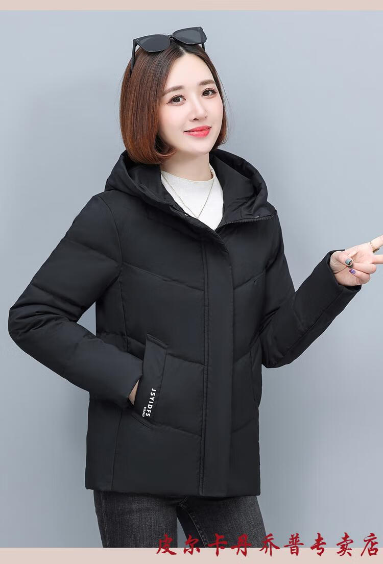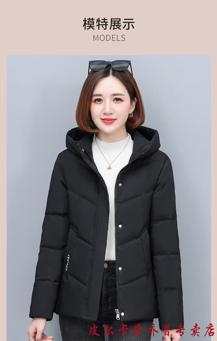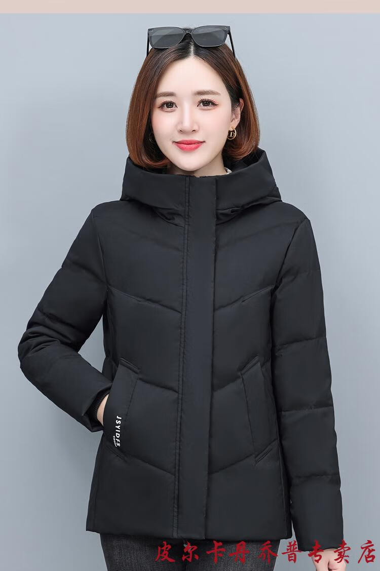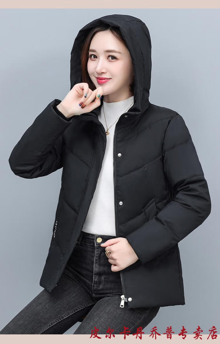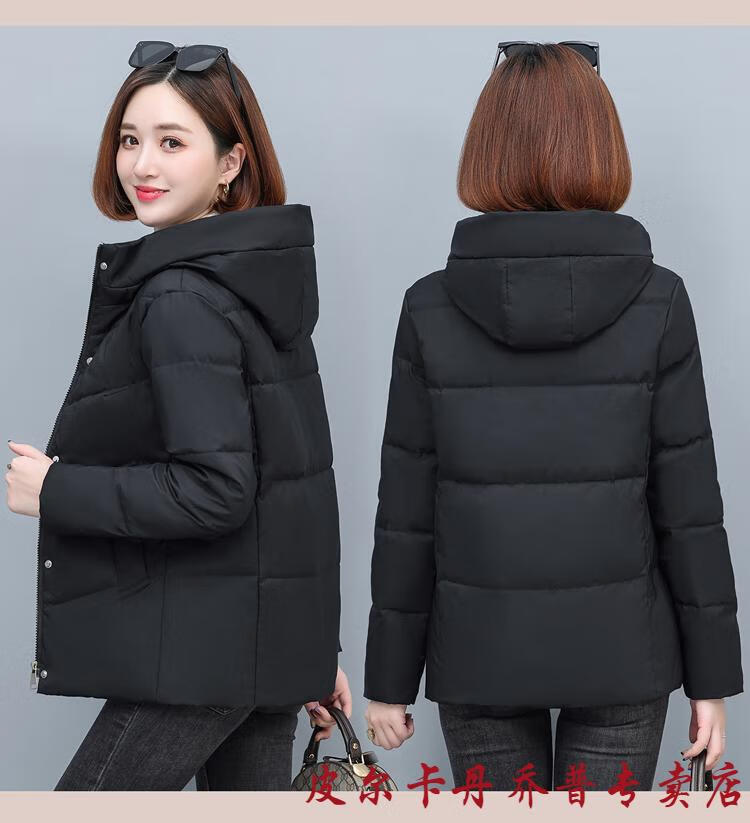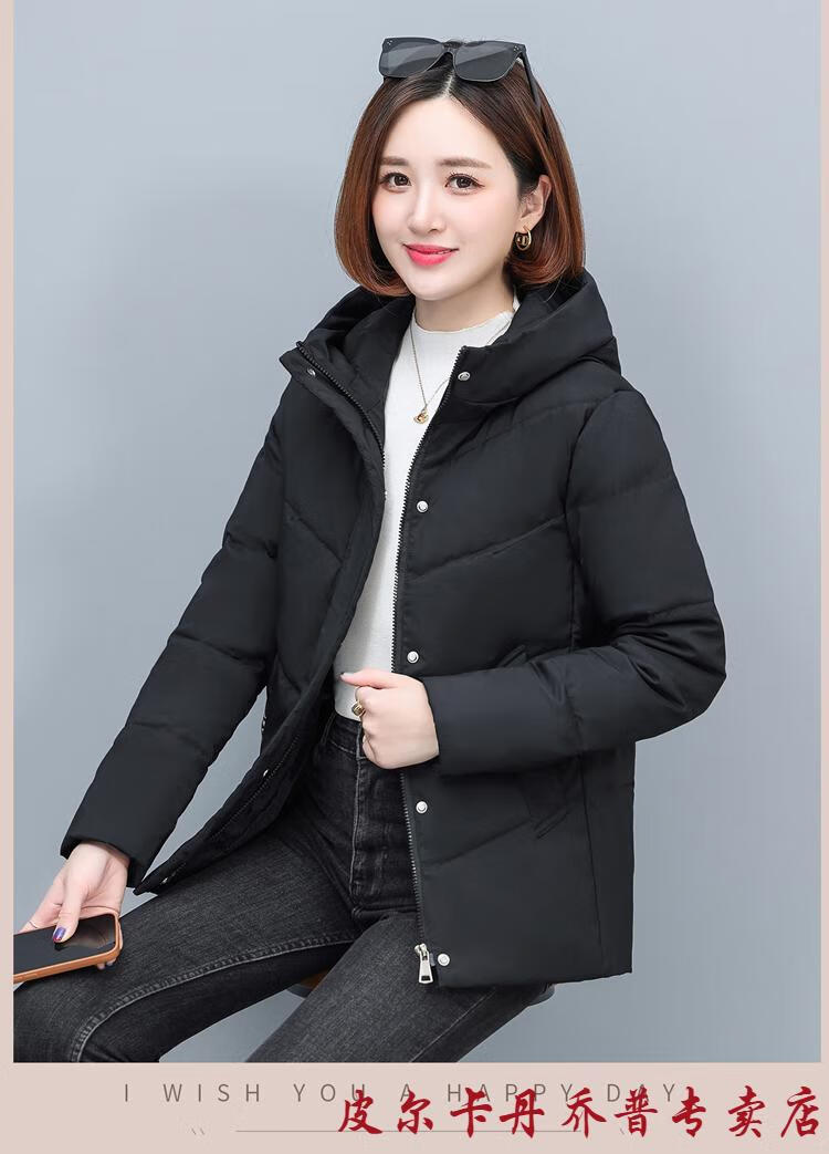 Pierre Cardin down jacket women's hooded 2026 winter new style high-end 90 white duck down short warm and fashionable mom wear black XL recommended 115-125 Jin Jin equals 0.5 kg