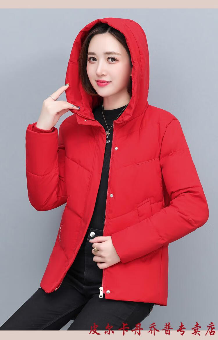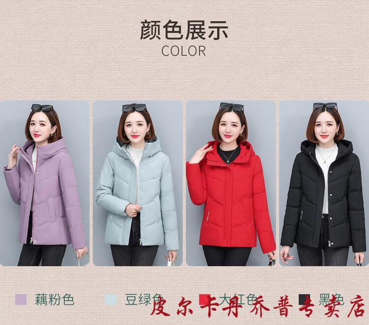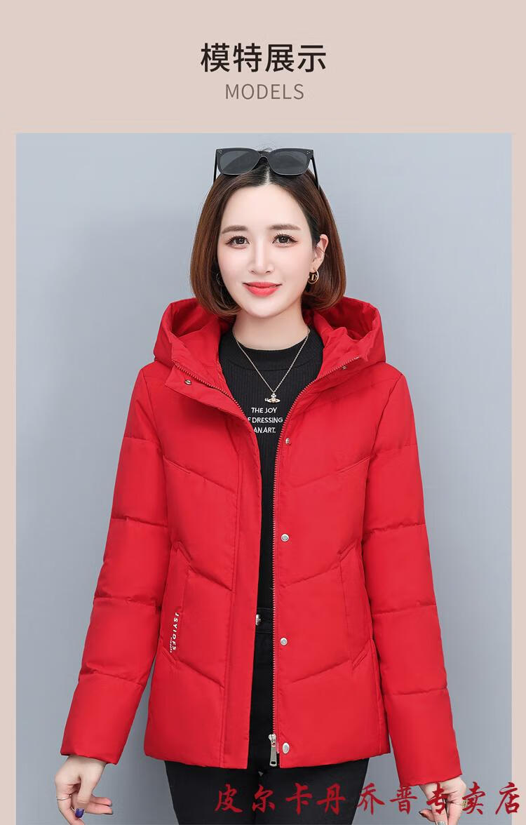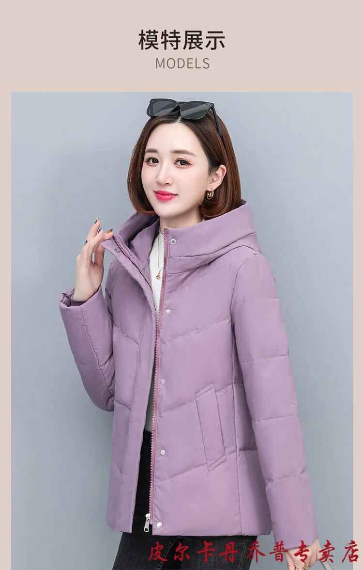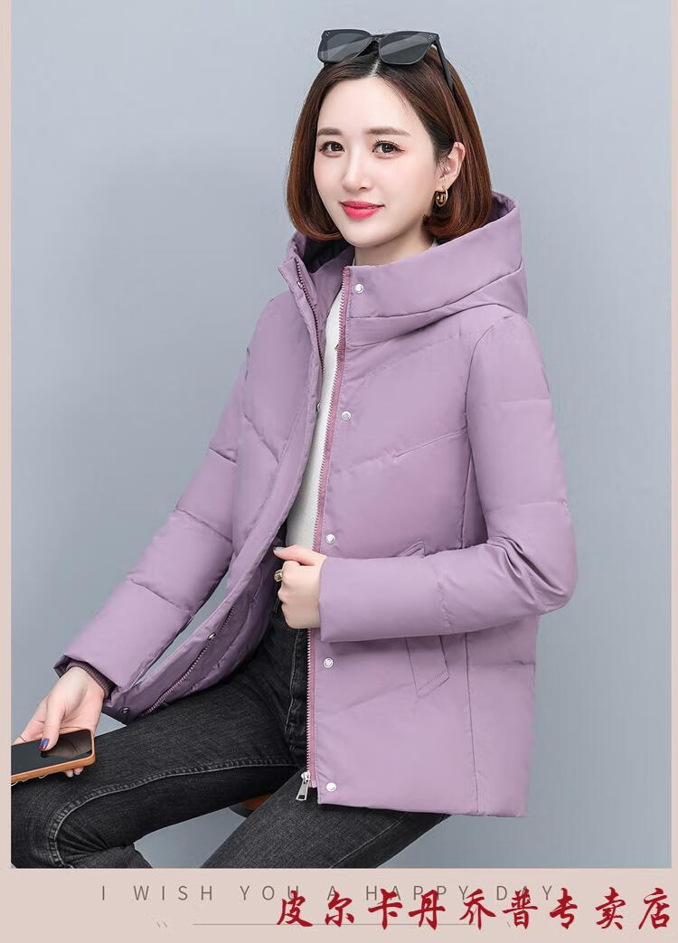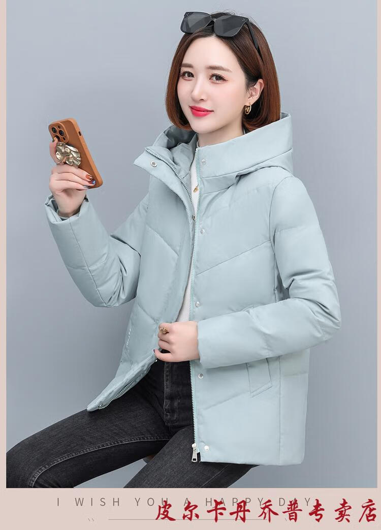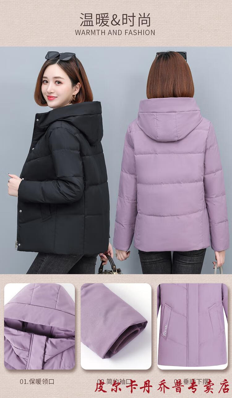Pierre Cardin down jacket women's hooded 2026 winter new style high-end 90 white duck down short warm and fashionable mom wear black XL recommended 115-125 Jin Jin equals 0.5 kg