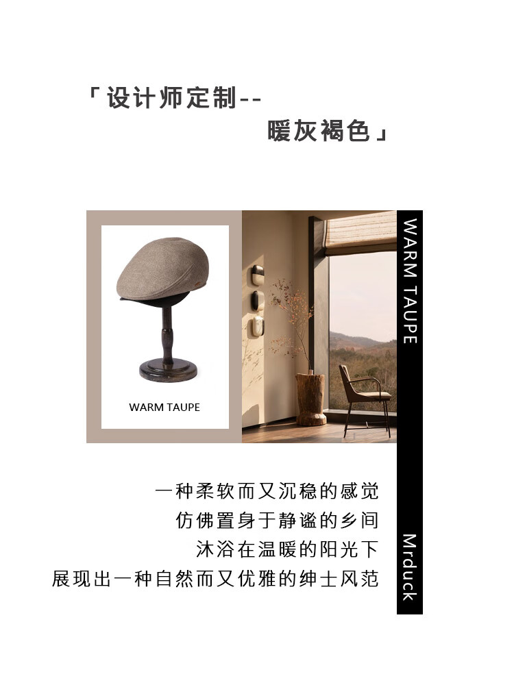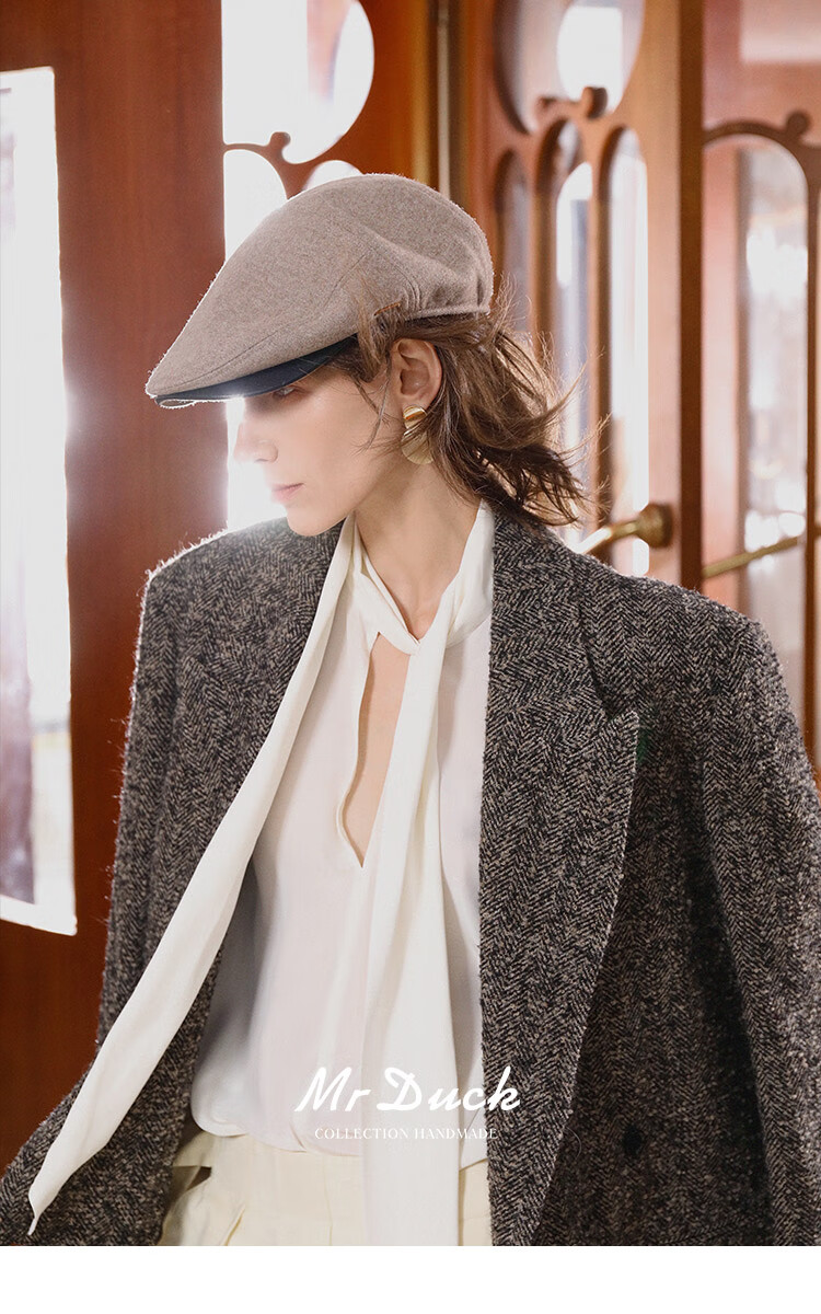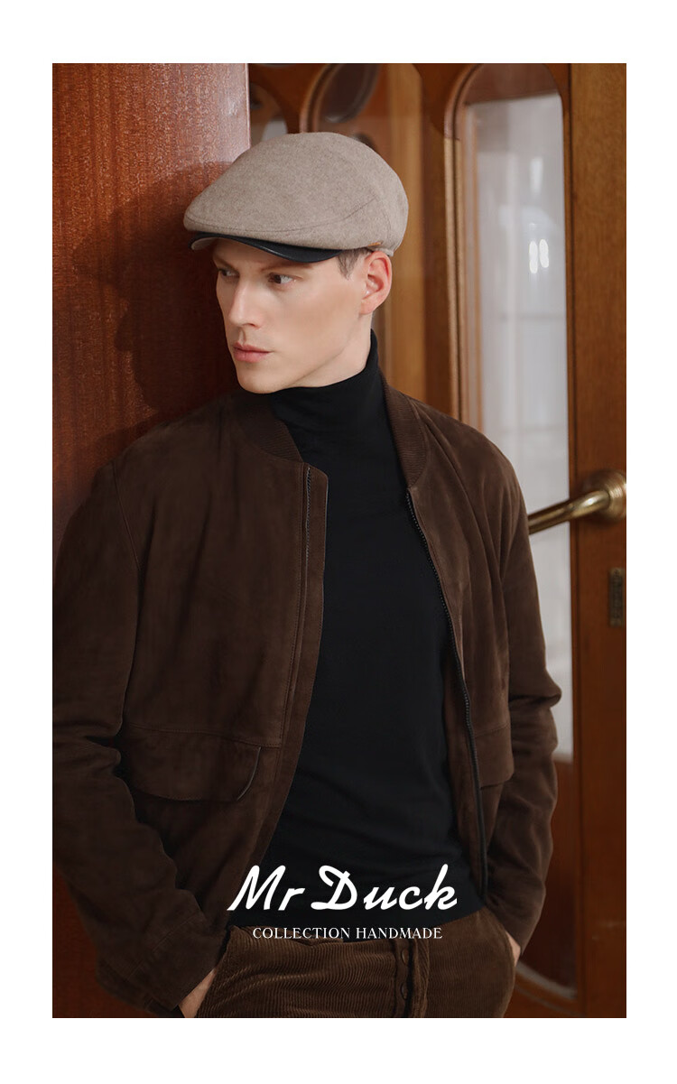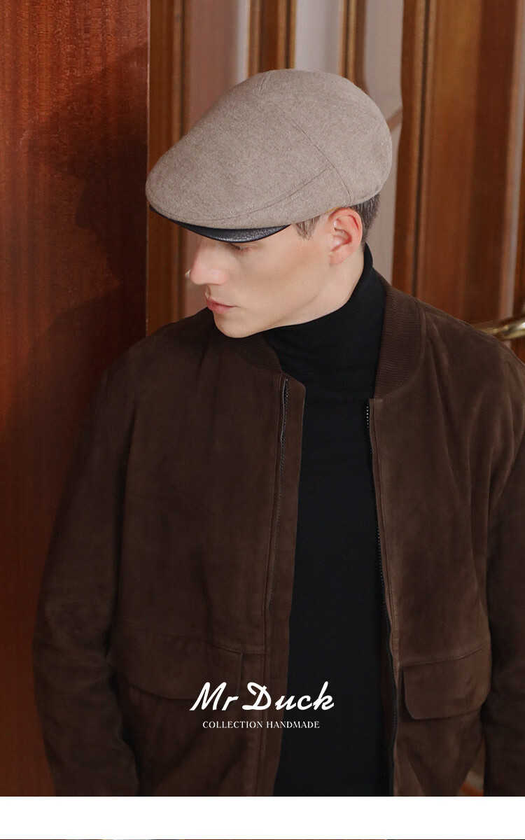 Mr DUCK limited edition British Marling&Evans lambskin cap men's winter high-end forward hat warm taupe (100% merino lambswool)-MW461101 L (58-59cm)