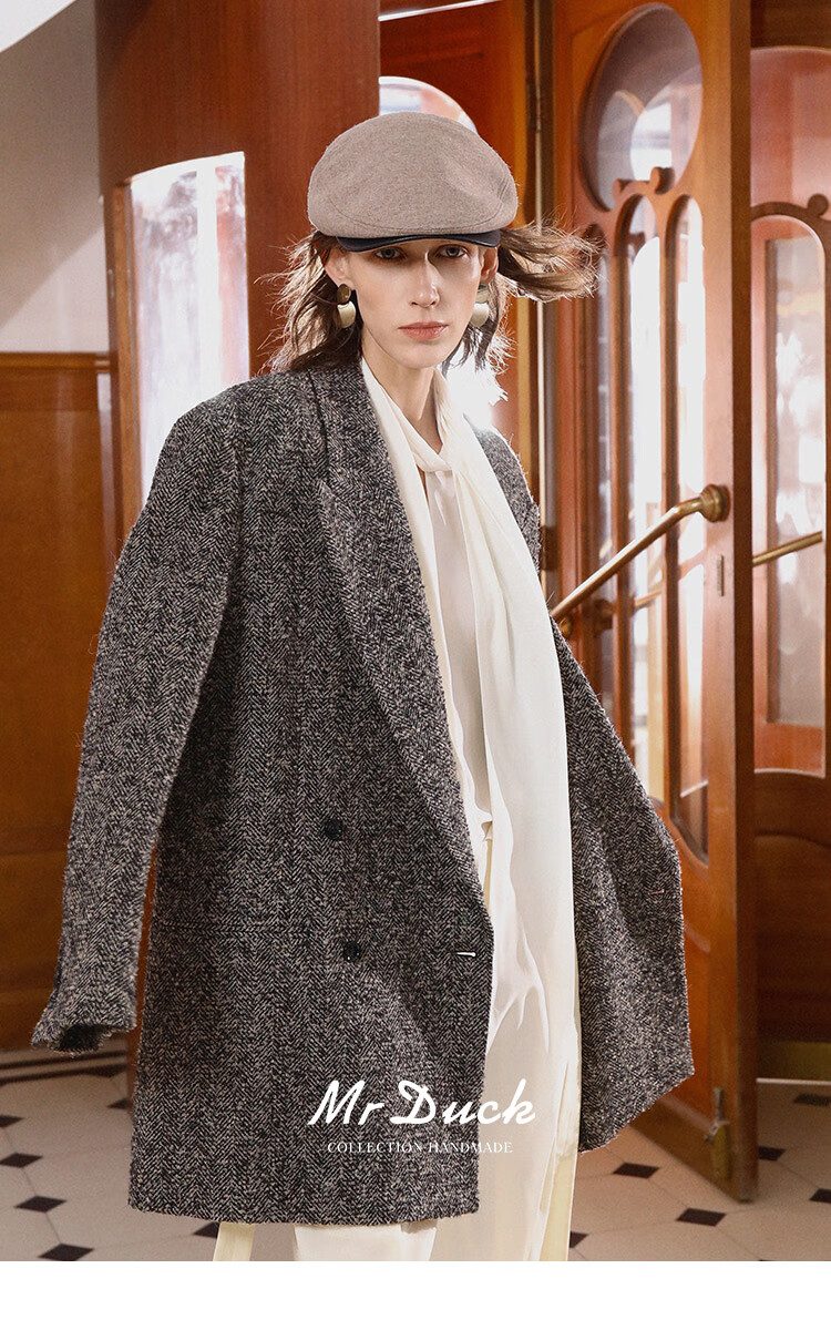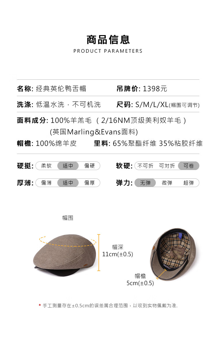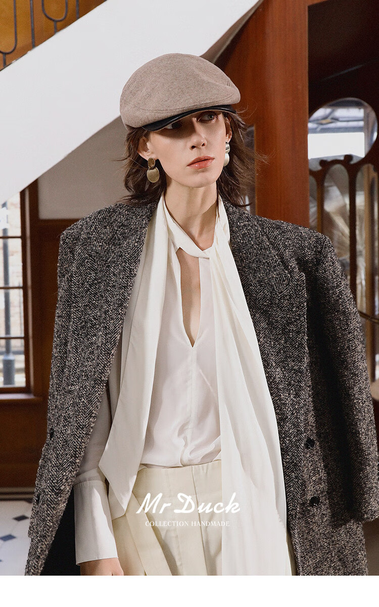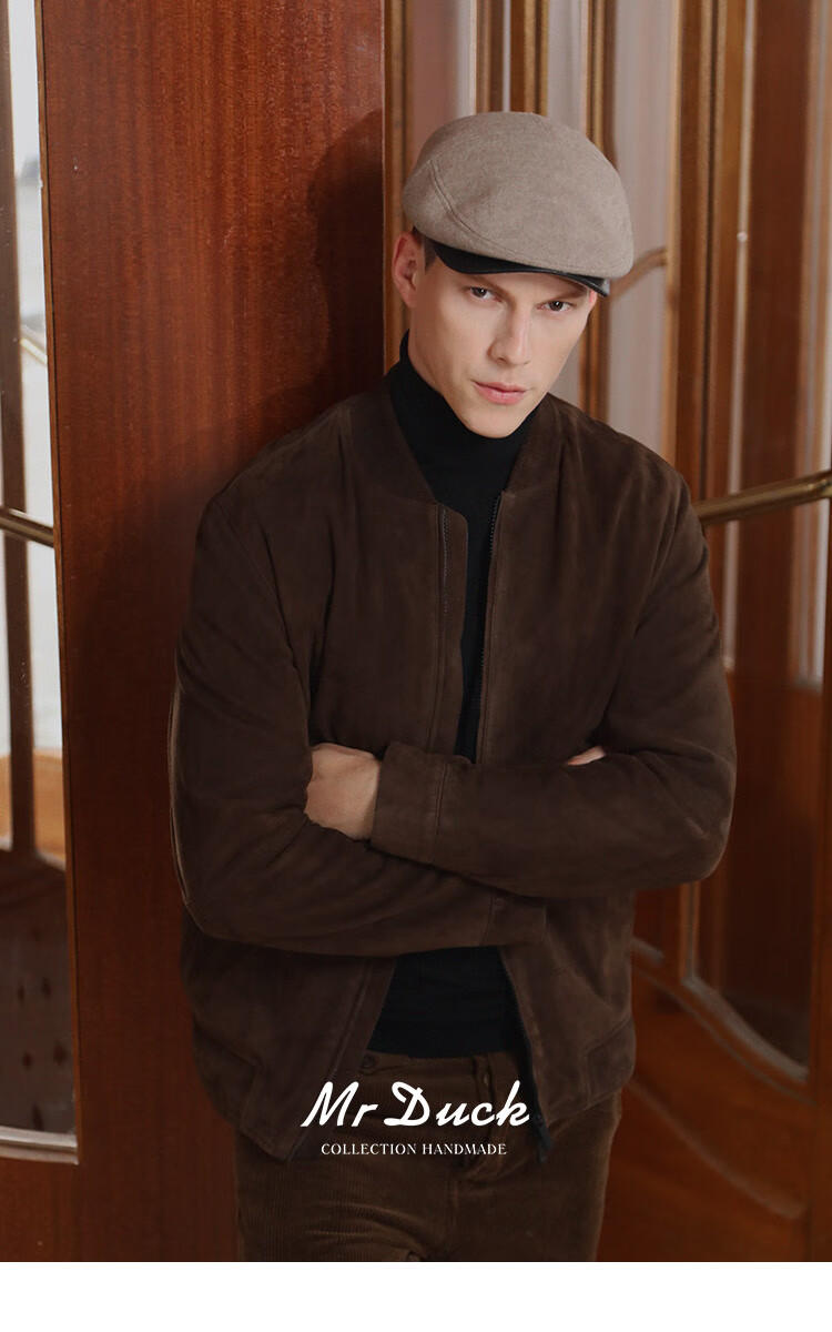 Mr DUCK limited edition British Marling&Evans lambskin cap men's winter high-end forward hat warm taupe (100% merino lambswool)-MW461101 L (58-59cm)
