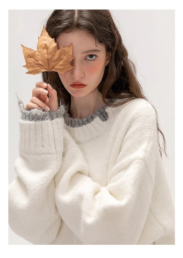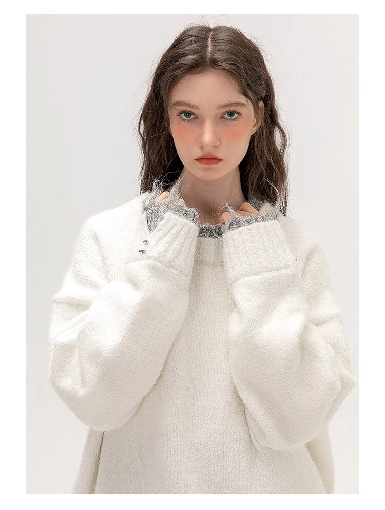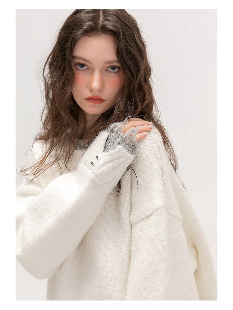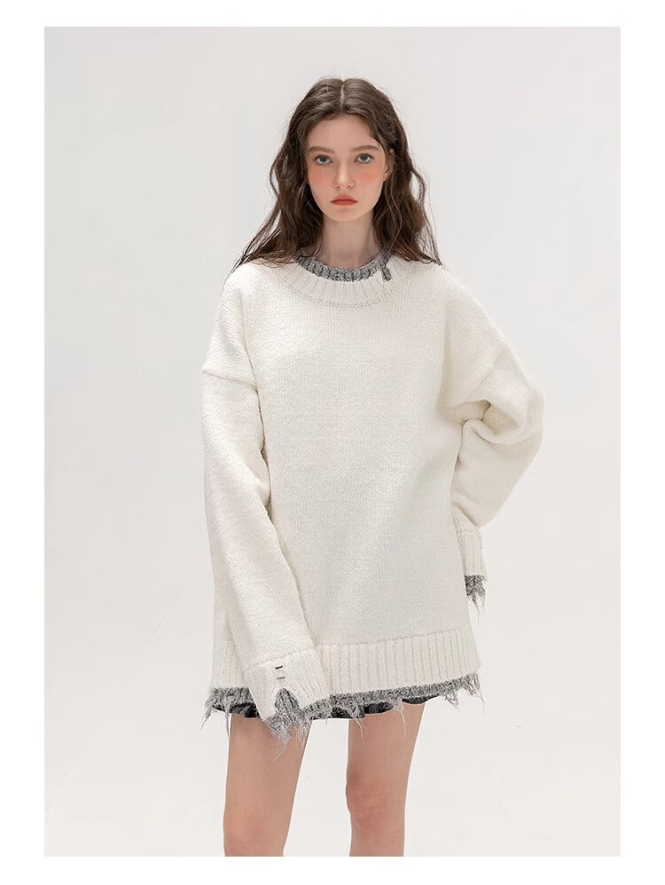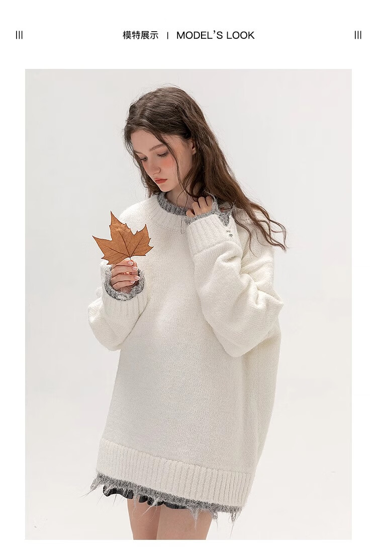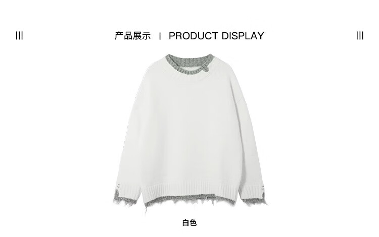 POUM men's clothing joint spring and autumn inner sweater men's loose clothes trendy brand design splicing couple sweater men's jacket JCF-883 white M