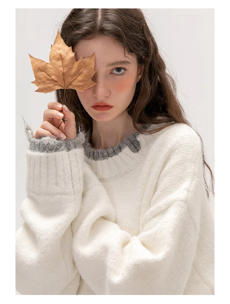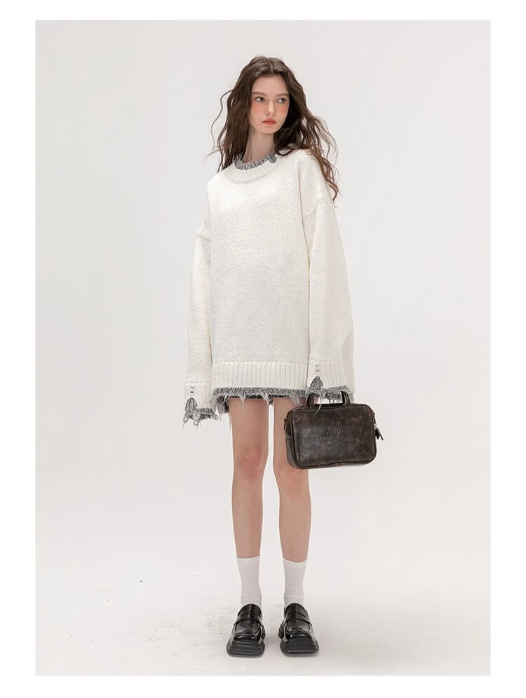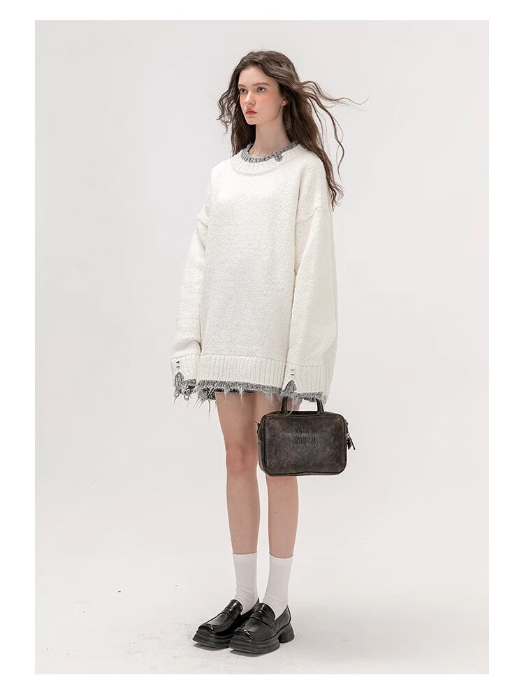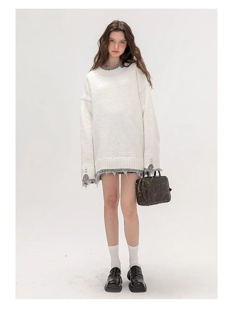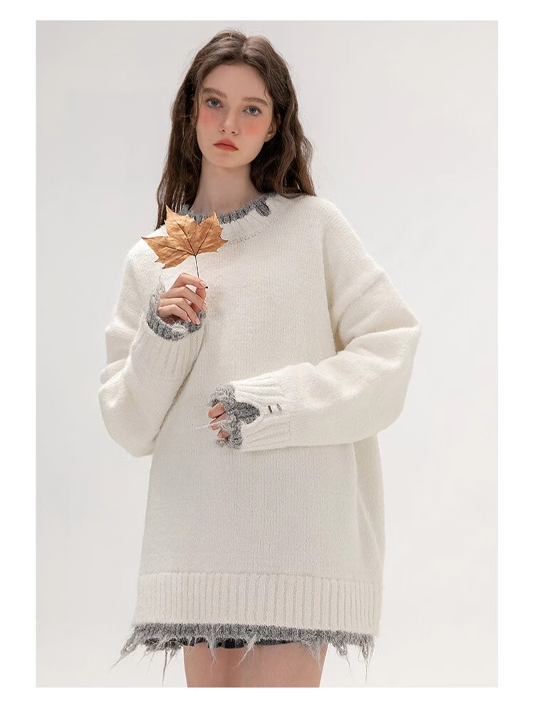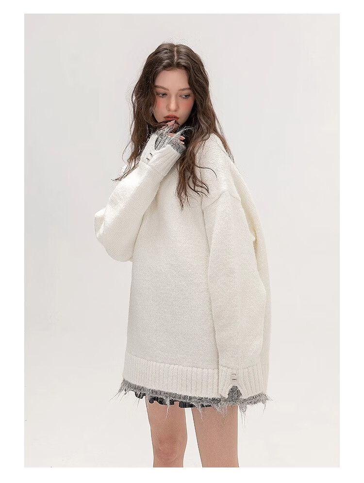 POUM men's clothing joint spring and autumn inner sweater men's loose clothes trendy brand design splicing couple sweater men's jacket JCF-883 white M