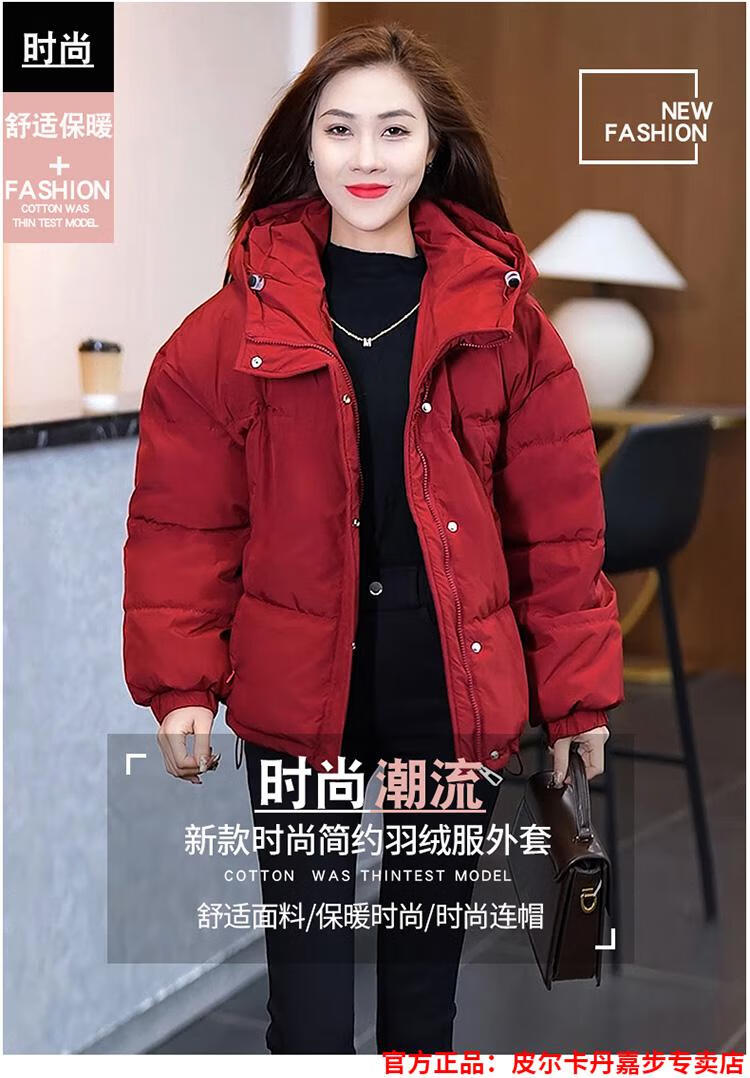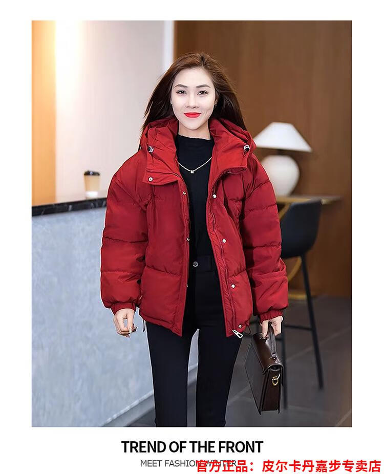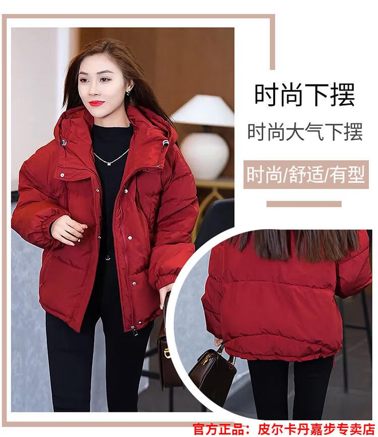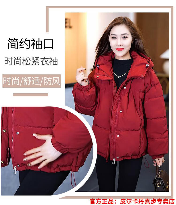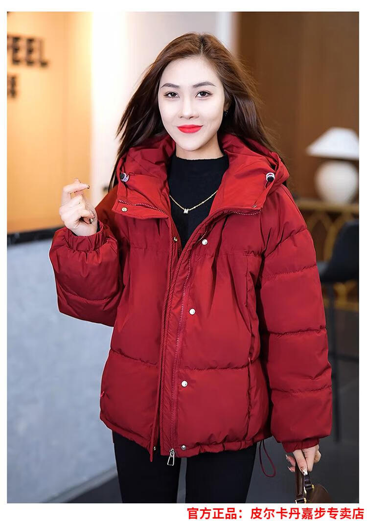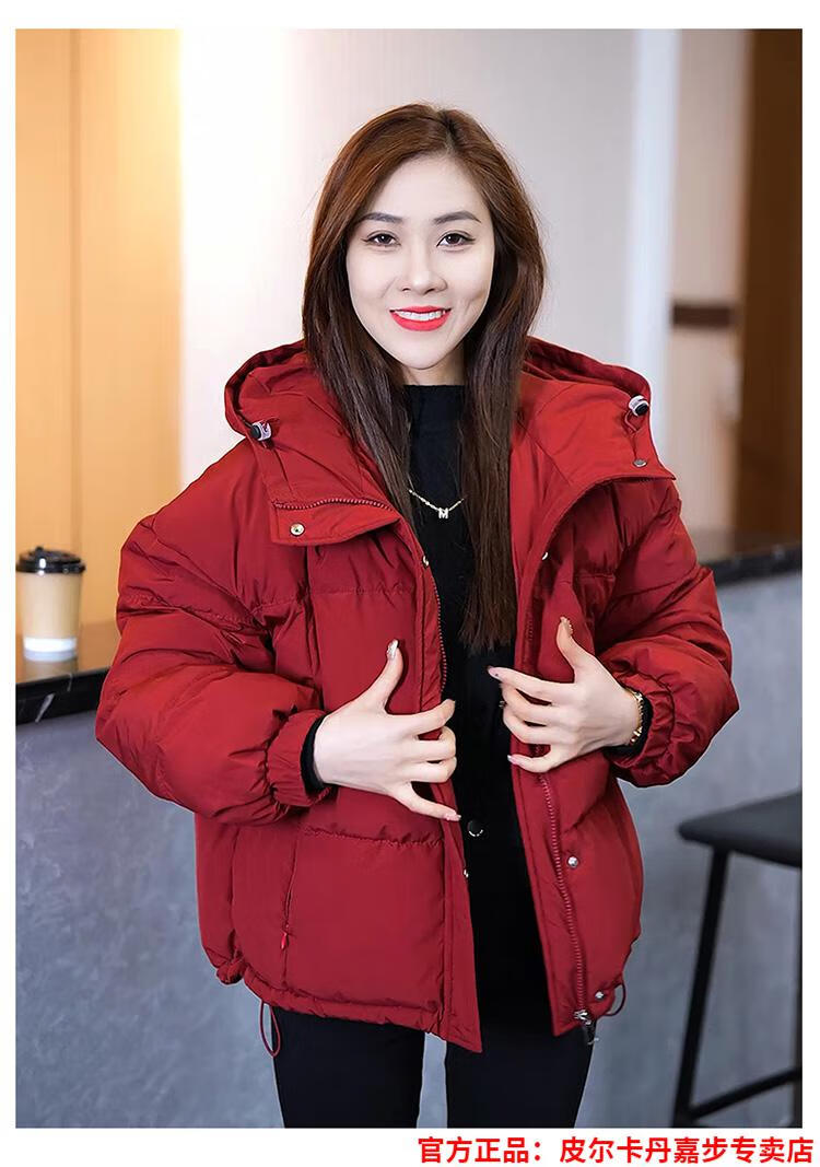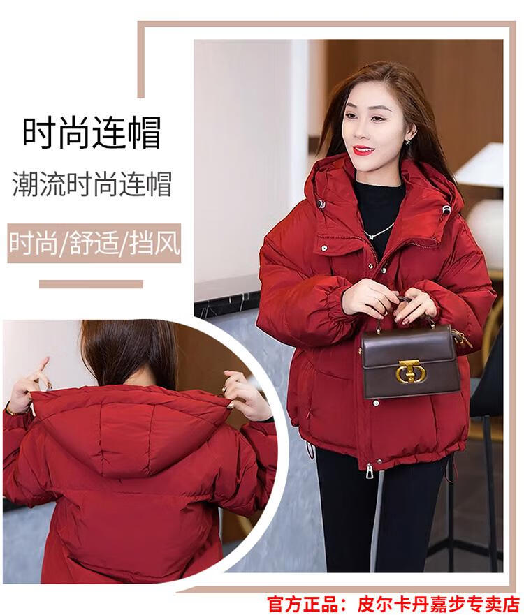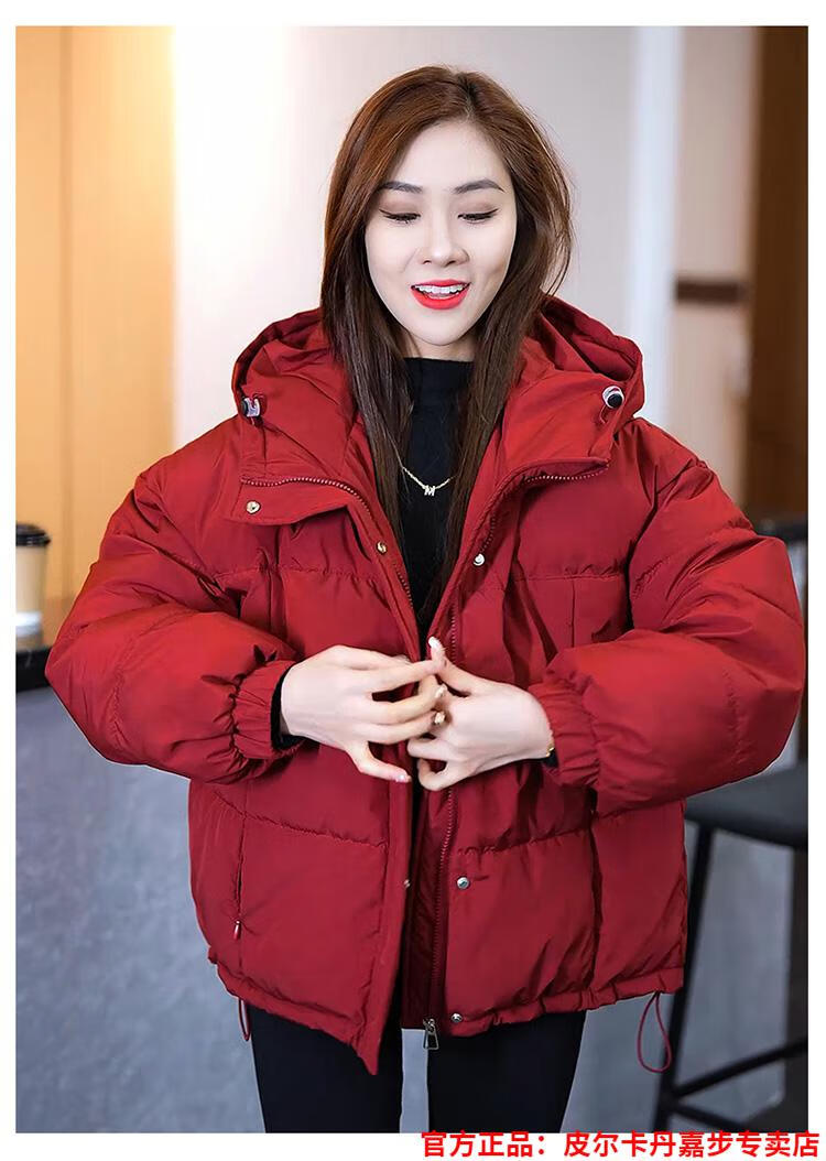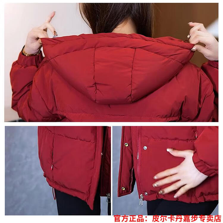 Pierre Cardin chaqueta corta con capucha para mujer 2026 invierno nueva moda suelta y estilo extranjero chaqueta cálida de plumón de pato blanco engrosada rojo L (110-120 Jin Jin equivale a 0,5 kg)