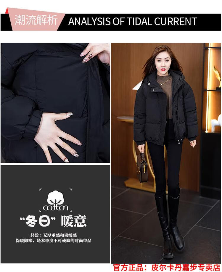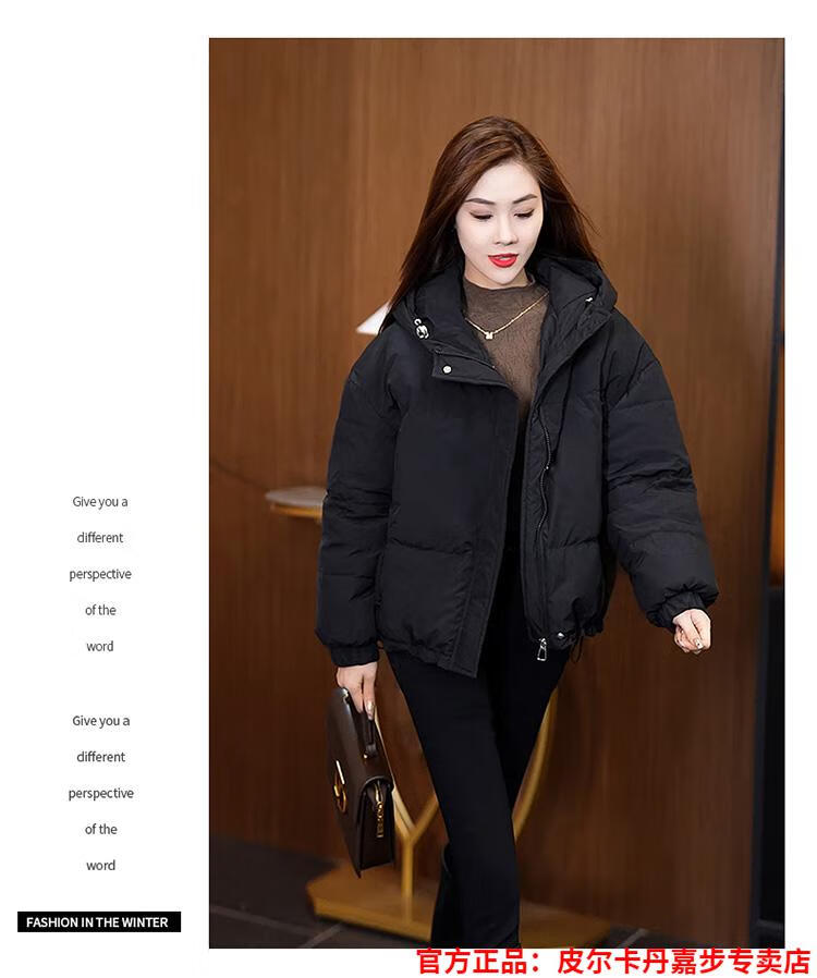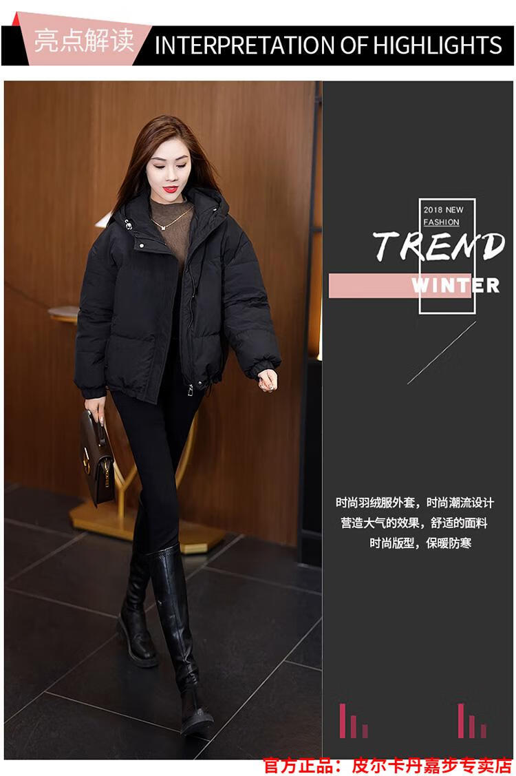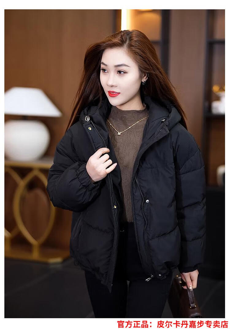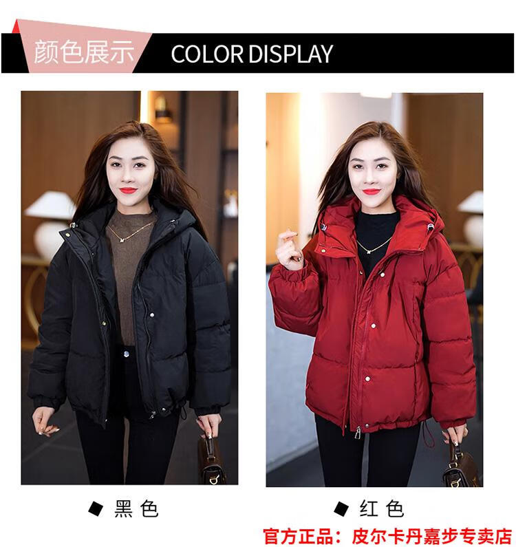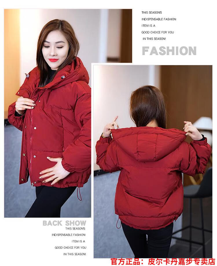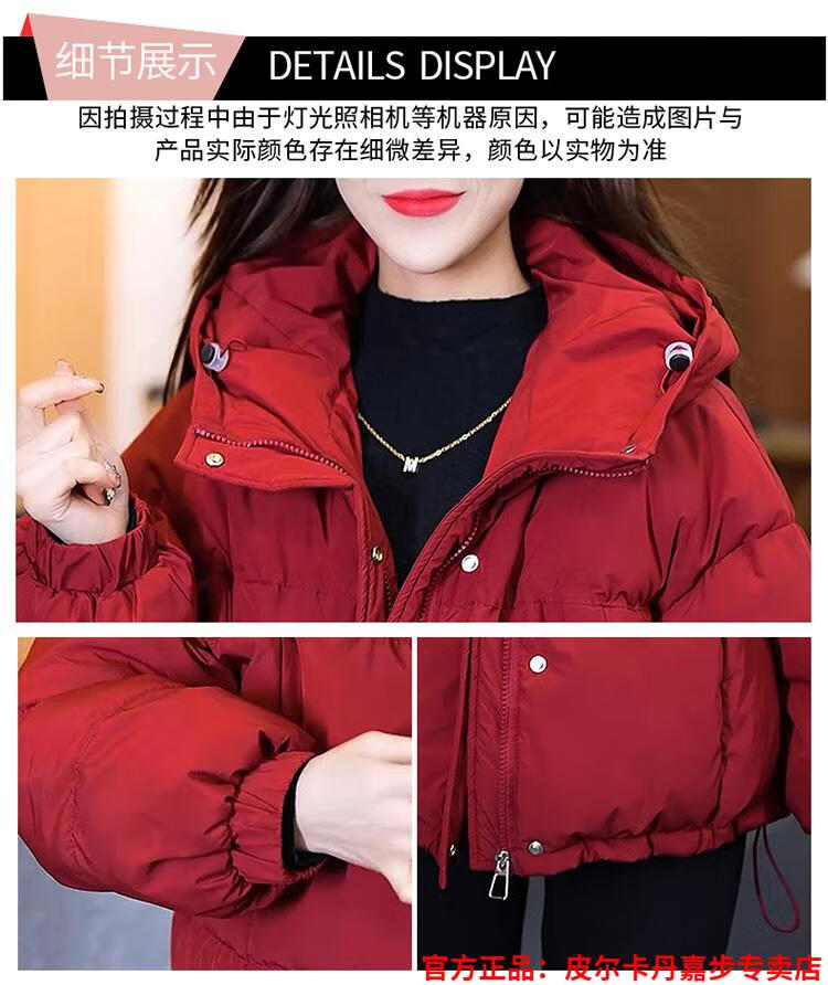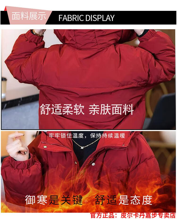 Pierre Cardin chaqueta corta con capucha para mujer 2026 invierno nueva moda suelta y estilo extranjero chaqueta cálida de plumón de pato blanco engrosada rojo L (110-120 Jin Jin equivale a 0,5 kg)