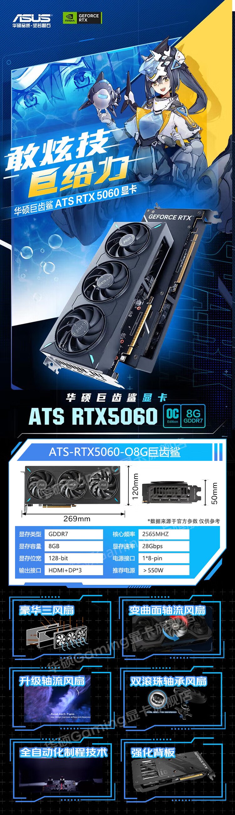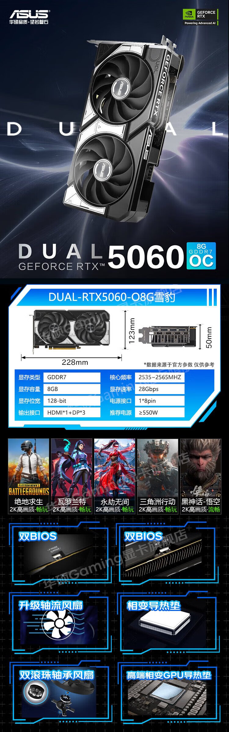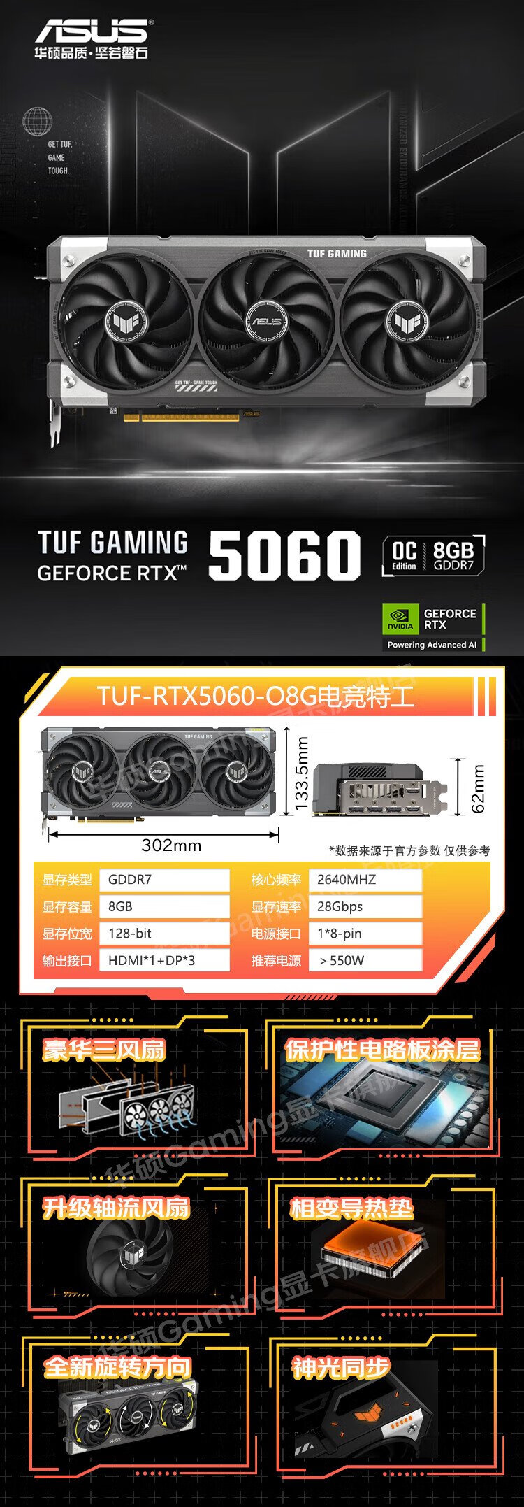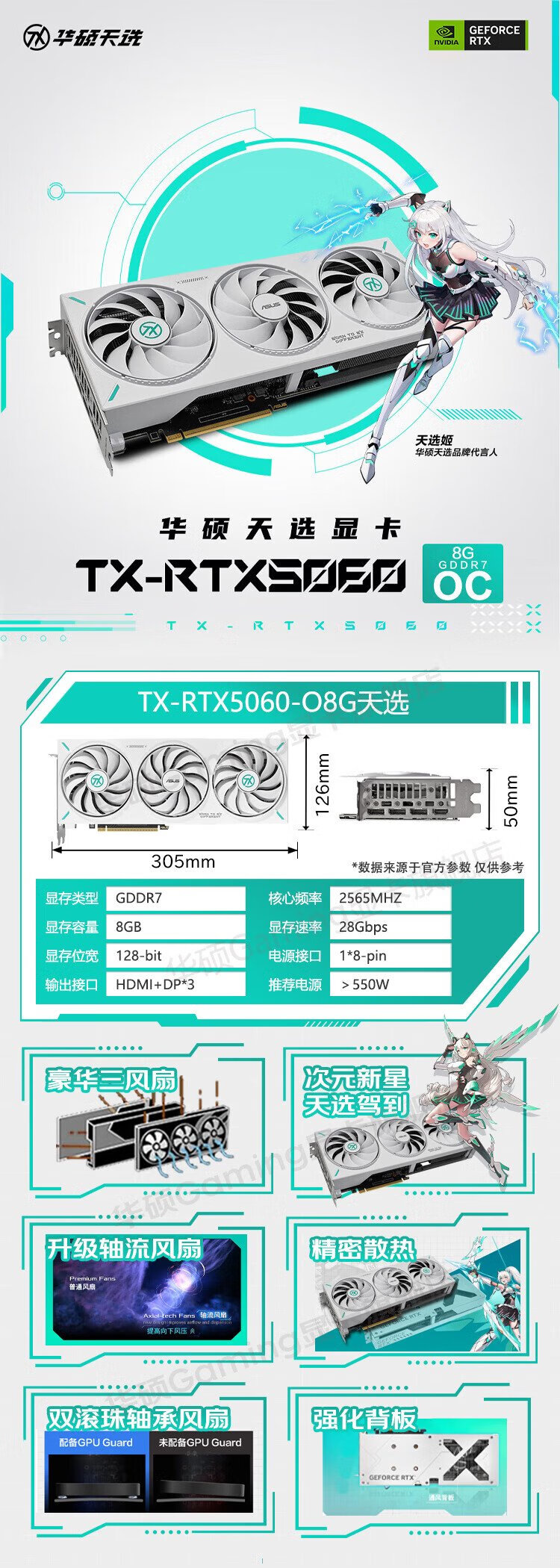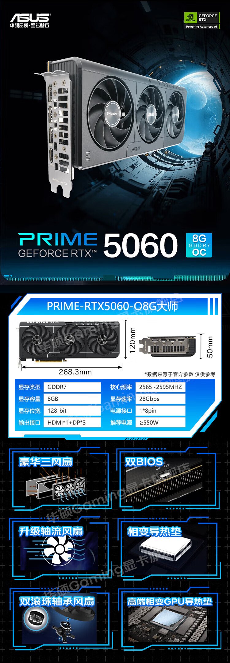 ASUS RTX5060 8G AI Computing Power Master/Megalodon/Tianxuan/Snow Leopard Live Rendering and Mapping E-Sports Game Computer Graphics Card PRIME-RTX5060-O8G Master Brand New Original Ready in Stock