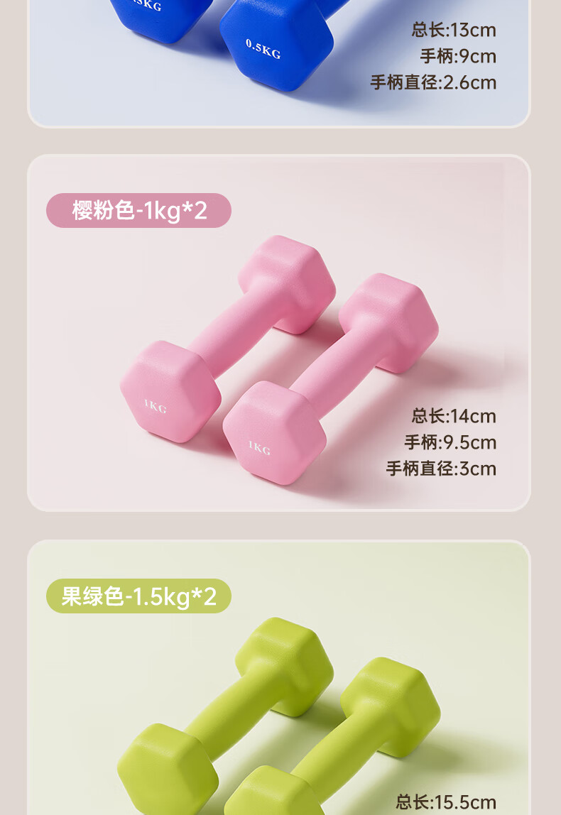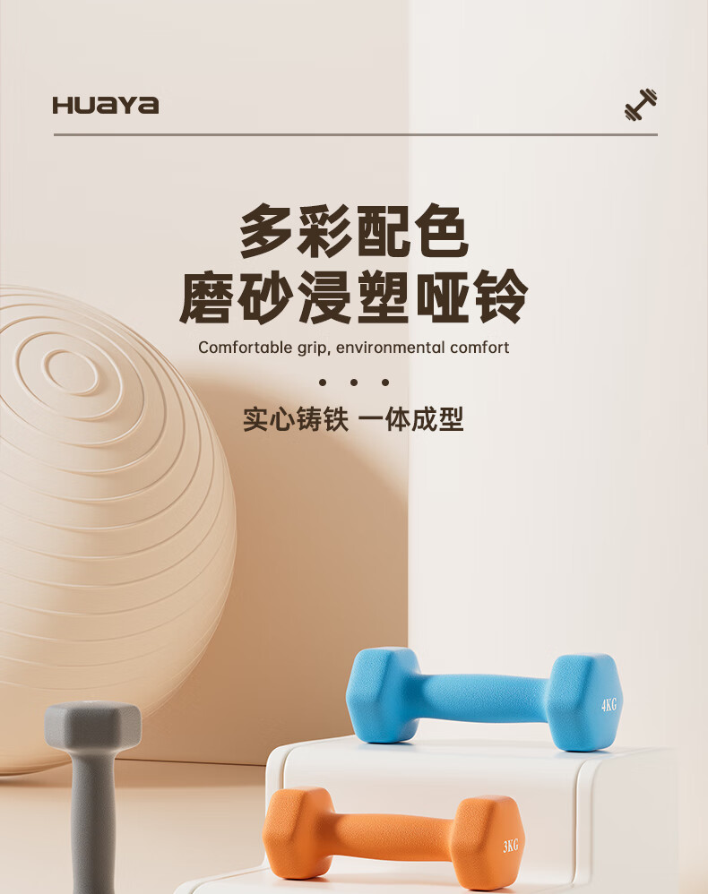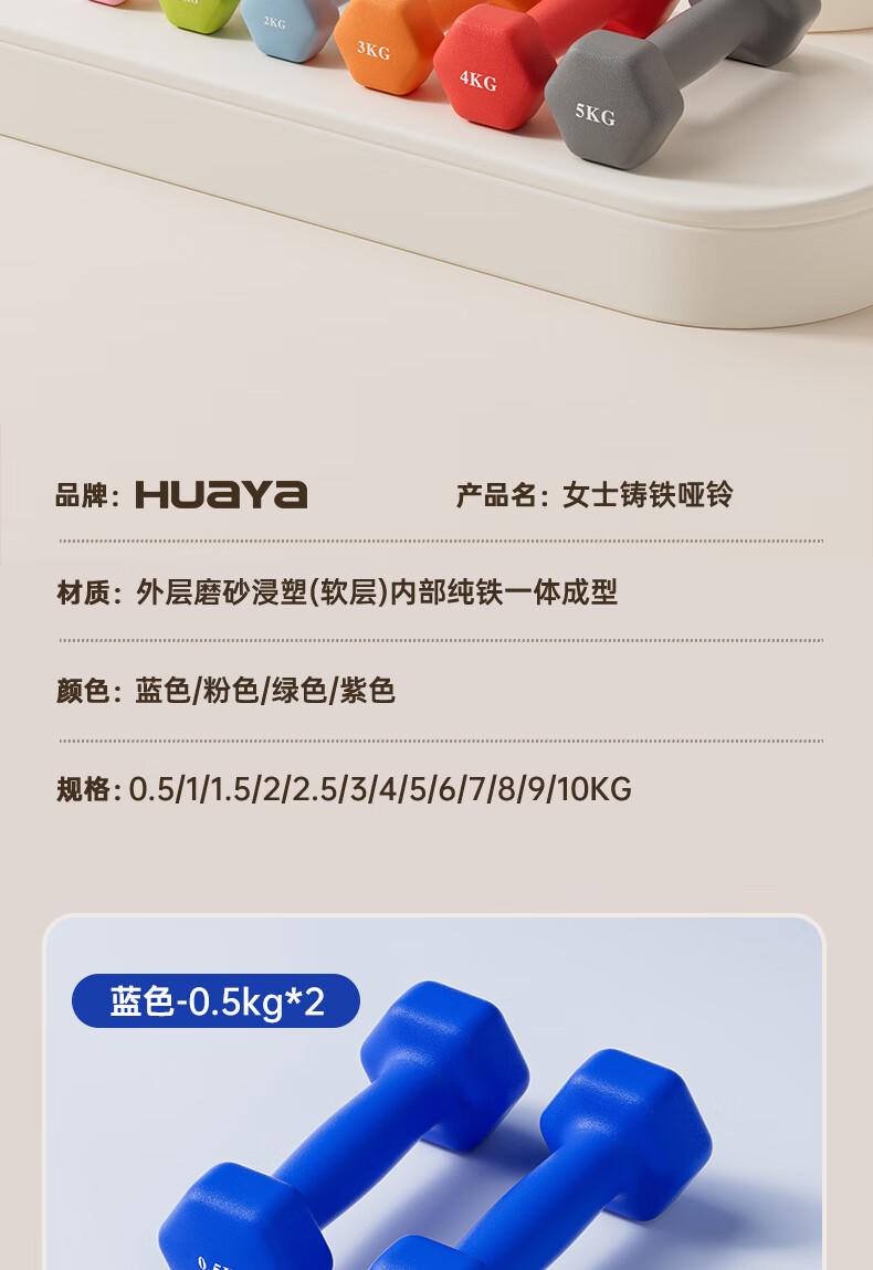Huaya (HUAYA) dipped dumbbells for men and women home fitness muscle shaping arm exercise equipment children's small dumbbells hexagonal handbells wrapped with iron 0.5kg*2 blue