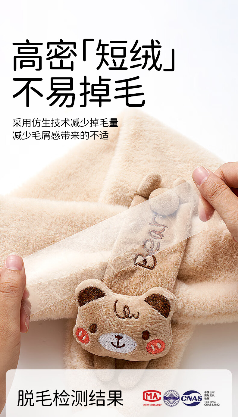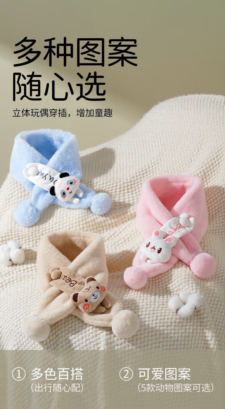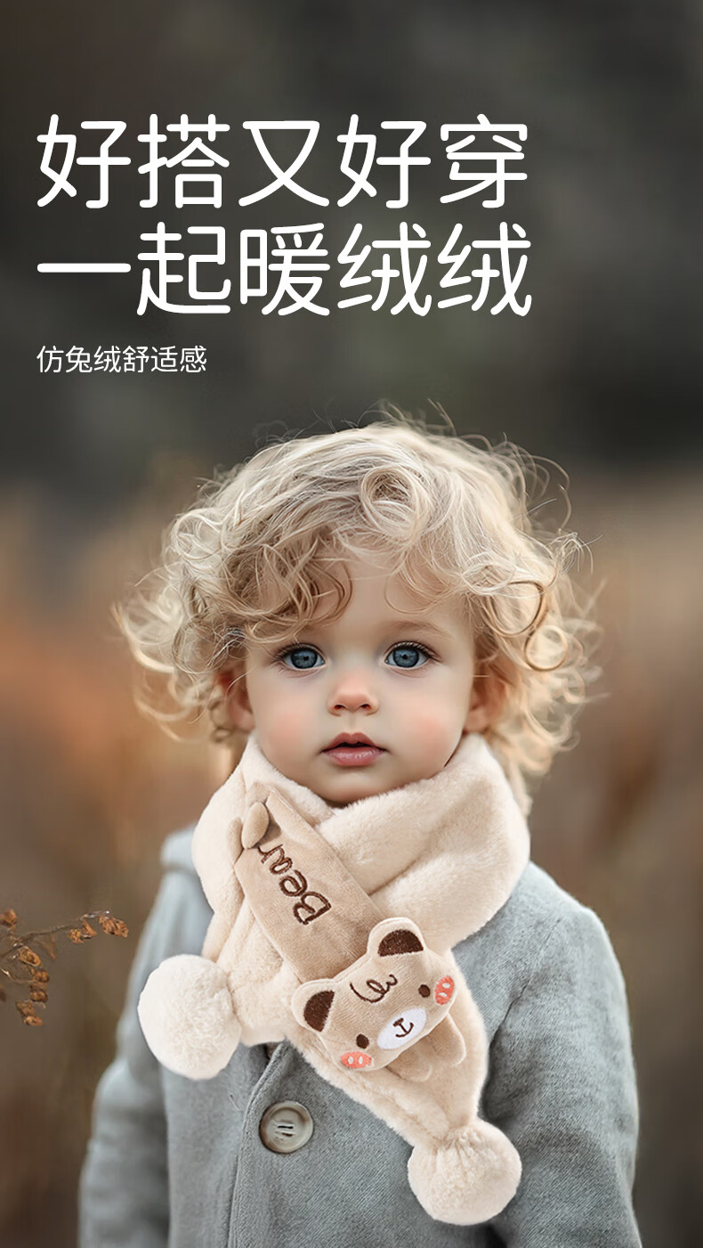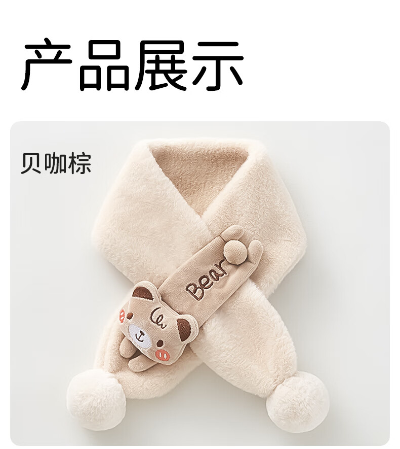 OUYUN children's scarf, cute baby scarf, spring and summer windproof plush neck cover for boys and girls, thickened and warm, Beka Brown, Class A quality, not easy to shed, 0-6 years old