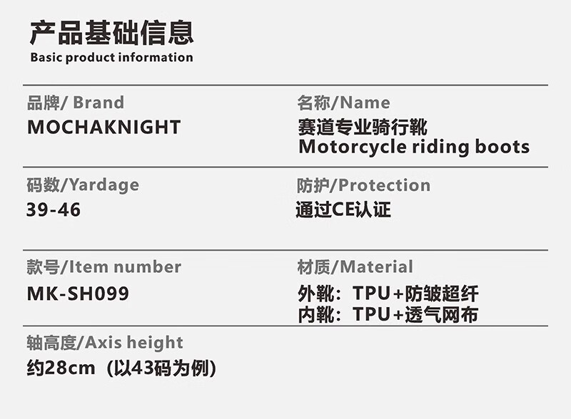 Pengcheng Mocha Knight MOCHAKNIGHT riding boots motorcycle motorcycle a-star riding boots long boots men's and women's track style all-season cycling shoes ivory white 44