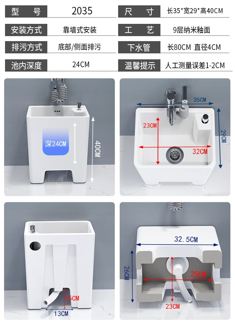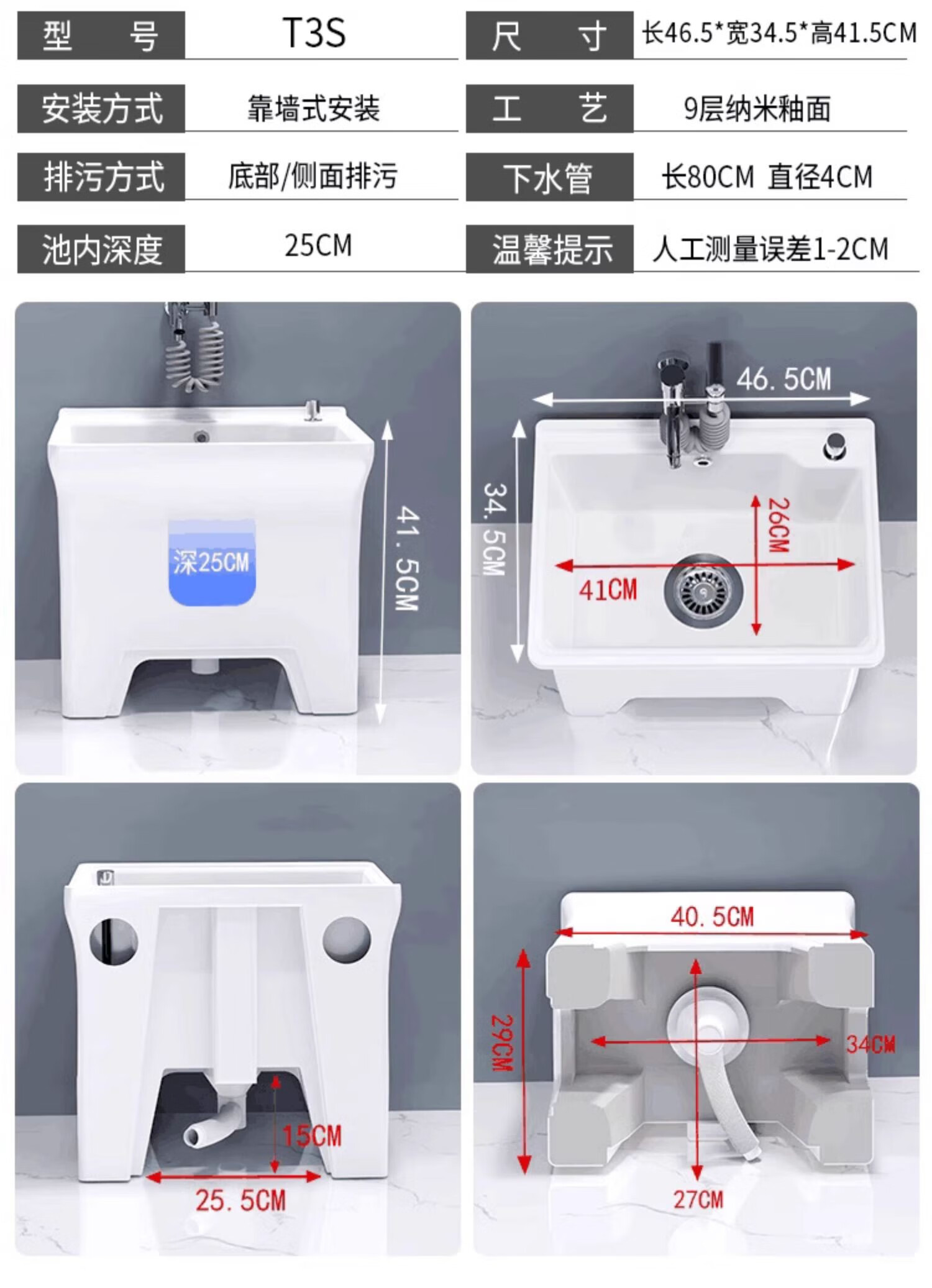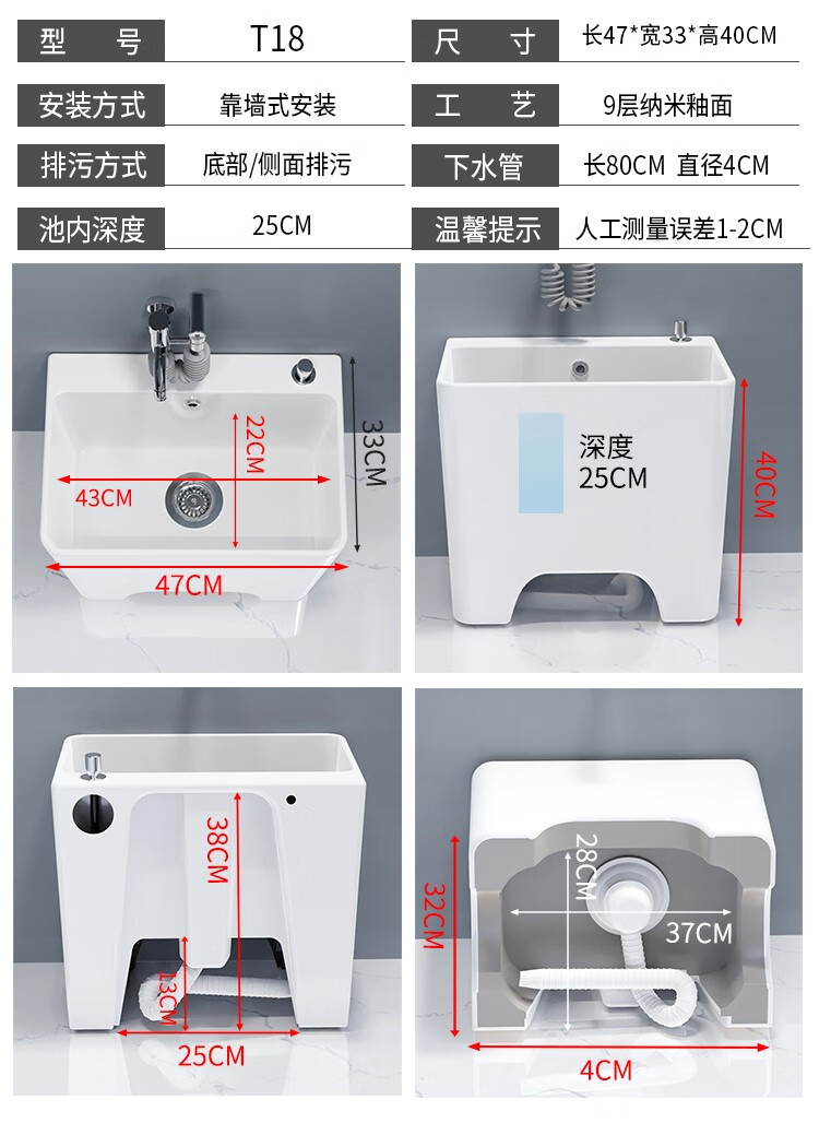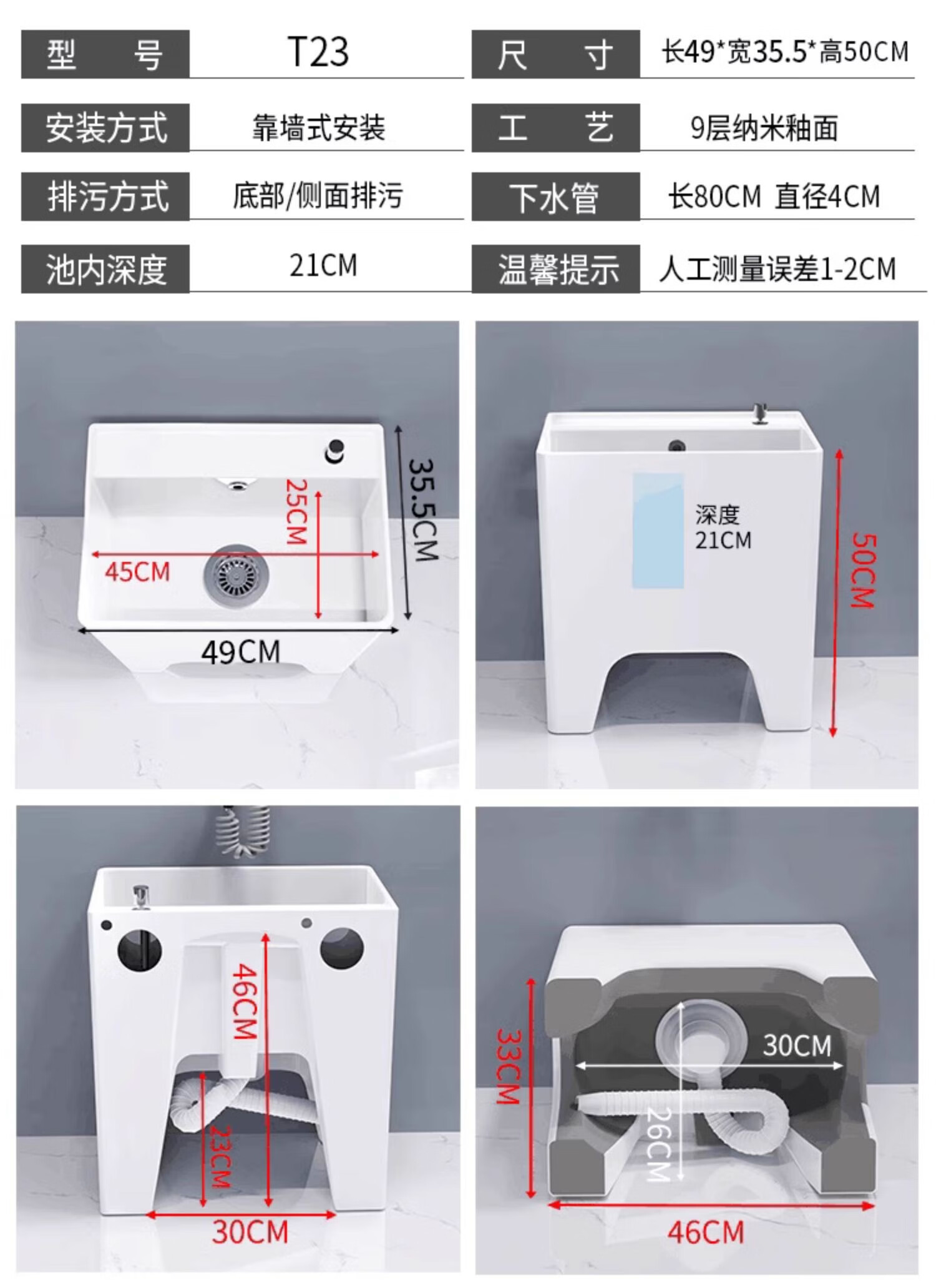 Anhua Sanitary Ware (annwa) Mengyue ceramic large floor washing mop pool tank household balcony outdoor high-foot bathroom commercial pier T18 (Taiwan controlled anti-blocking drain)