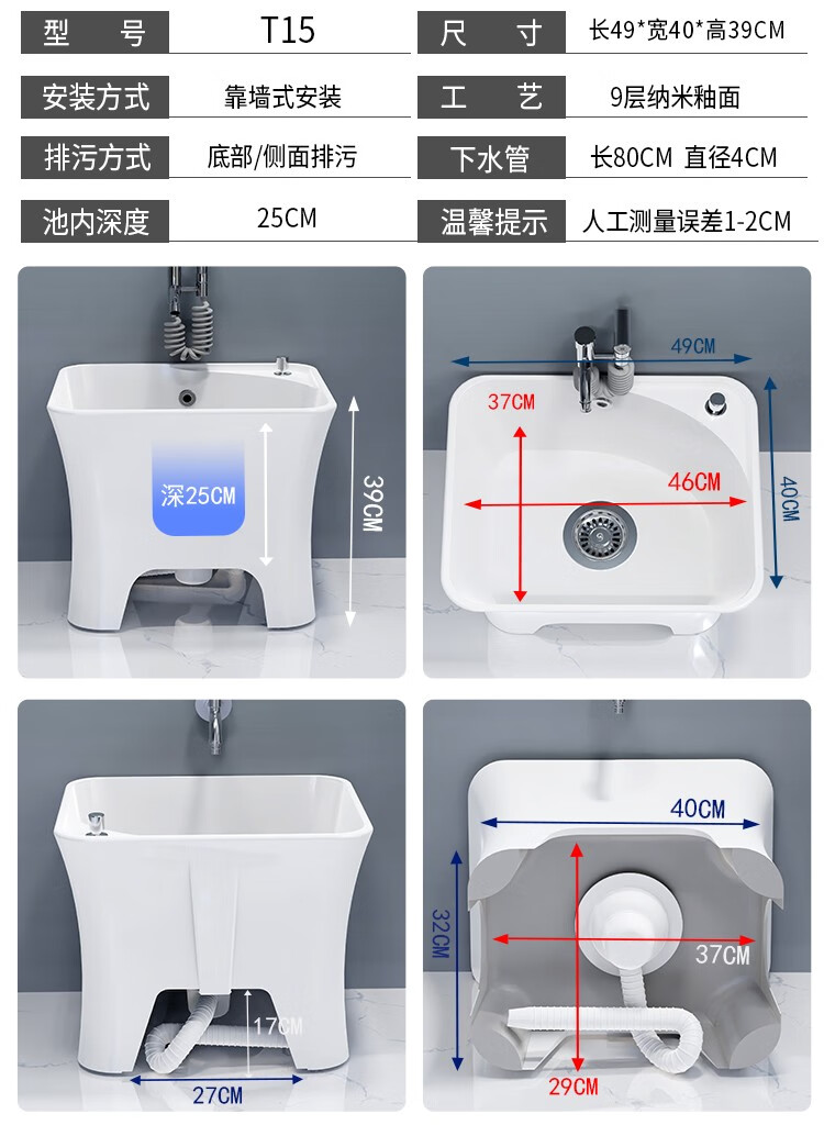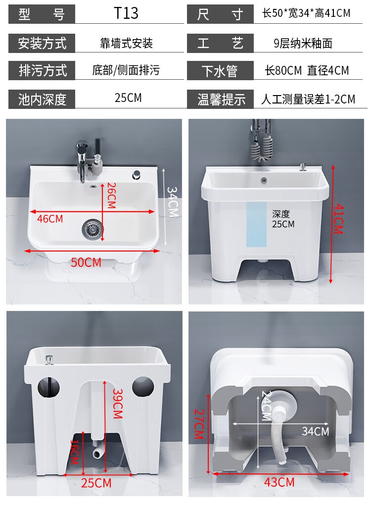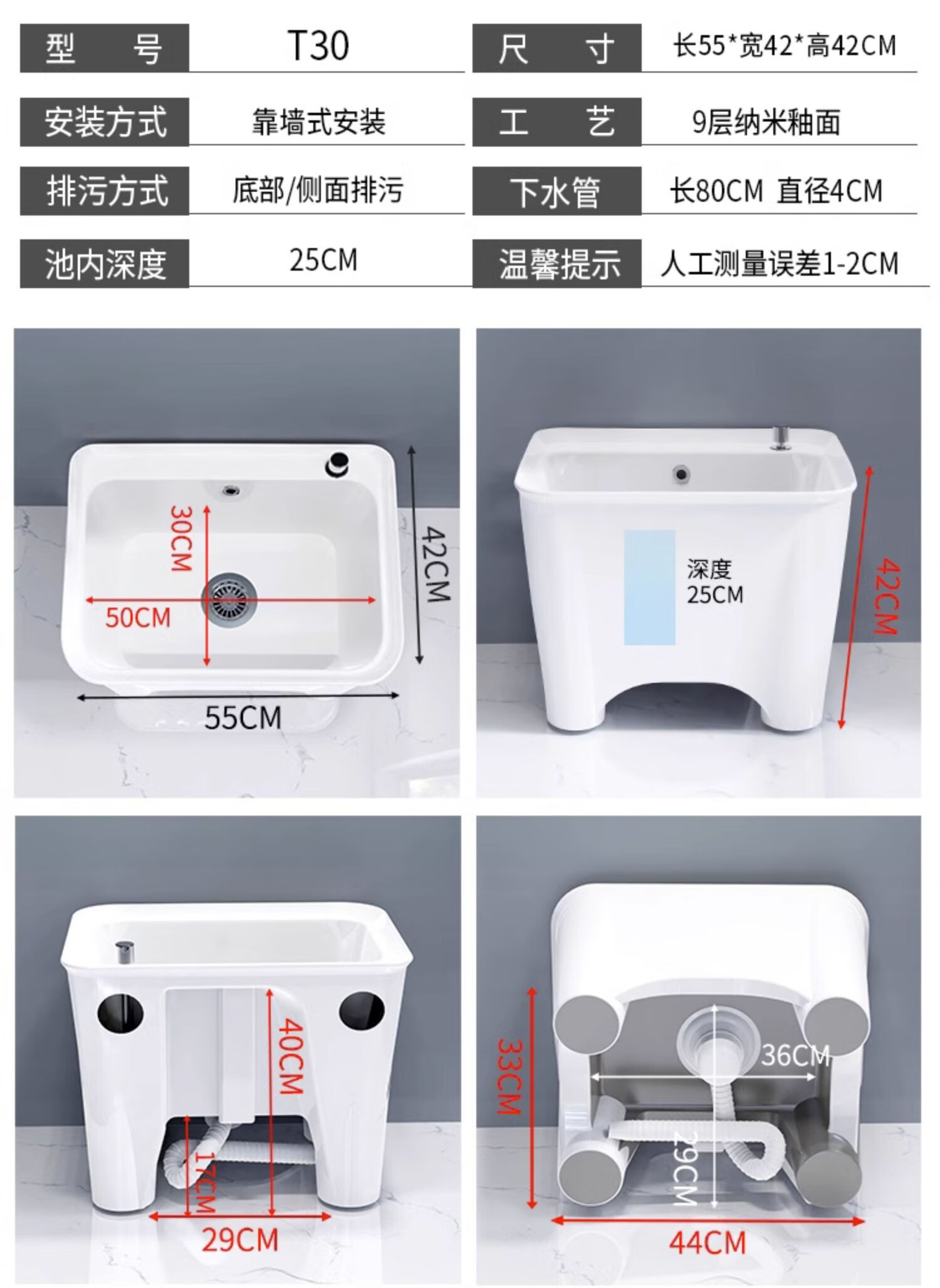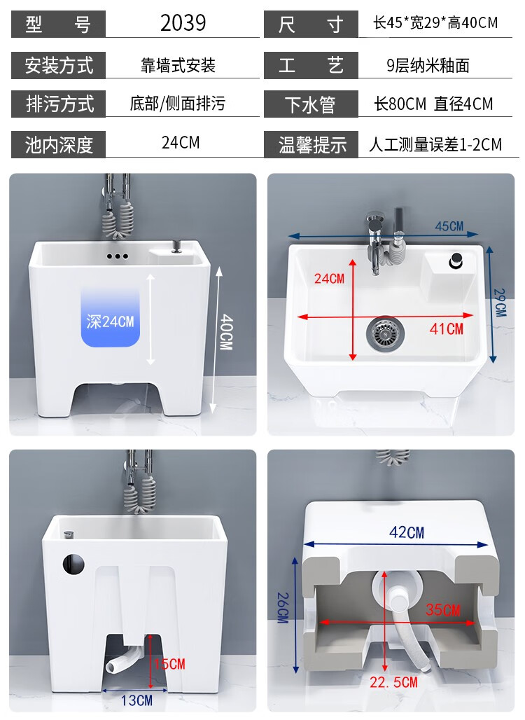 Anhua Sanitary Ware (annwa) Mengyue ceramic large floor washing mop pool tank household balcony outdoor high-foot bathroom commercial pier T18 (Taiwan controlled anti-blocking drain)