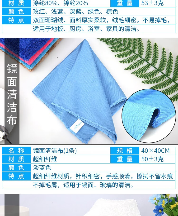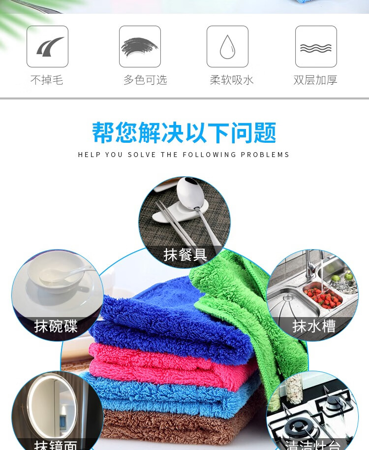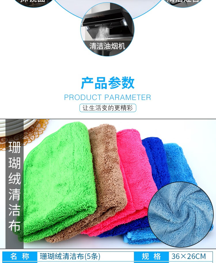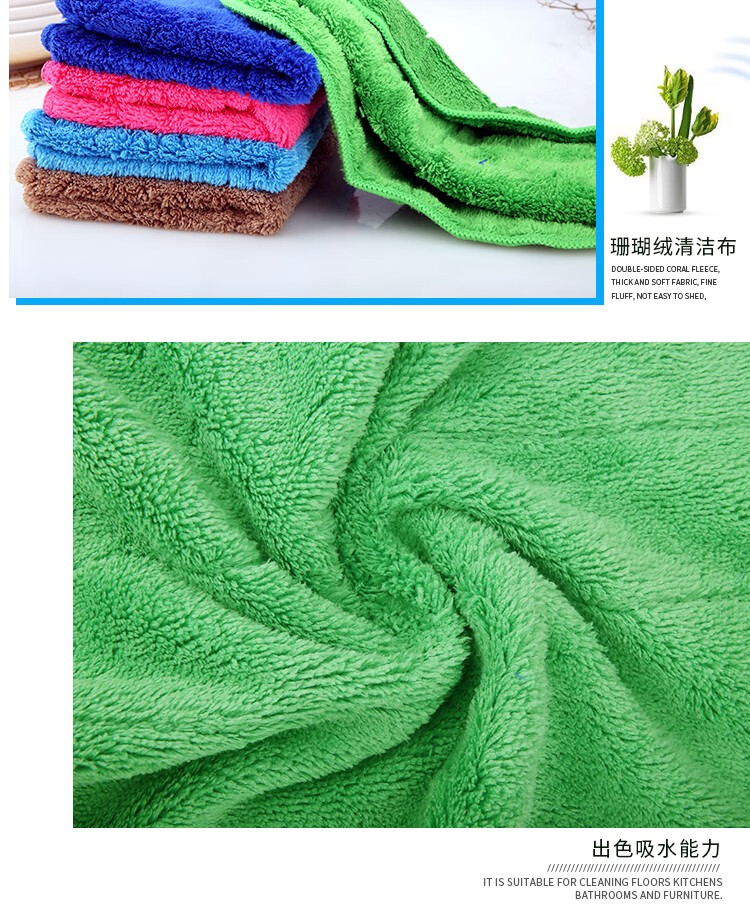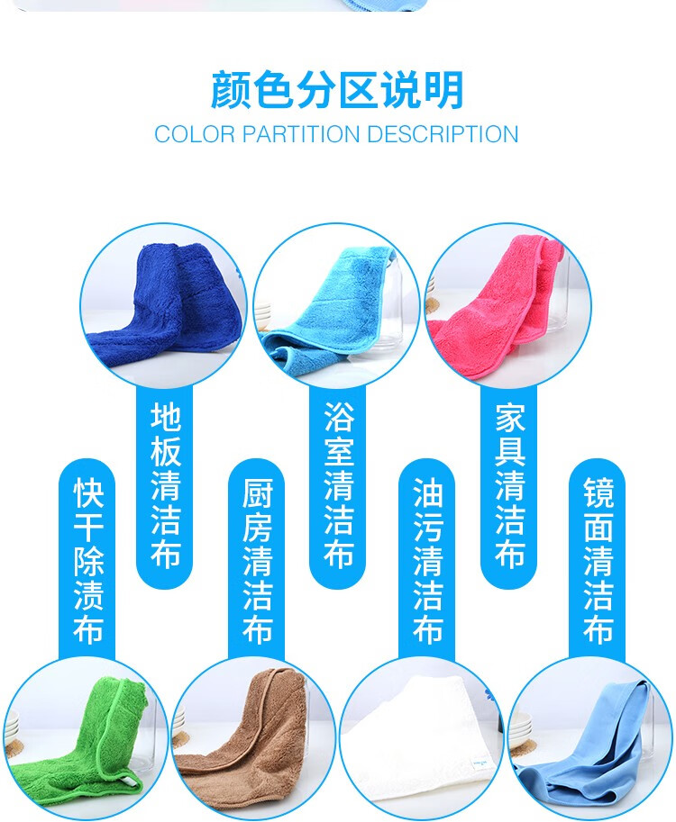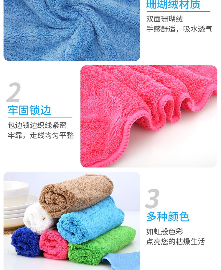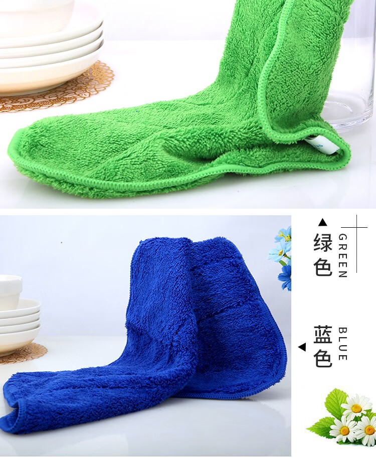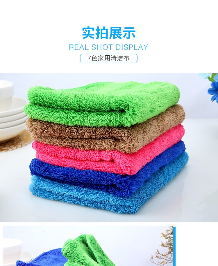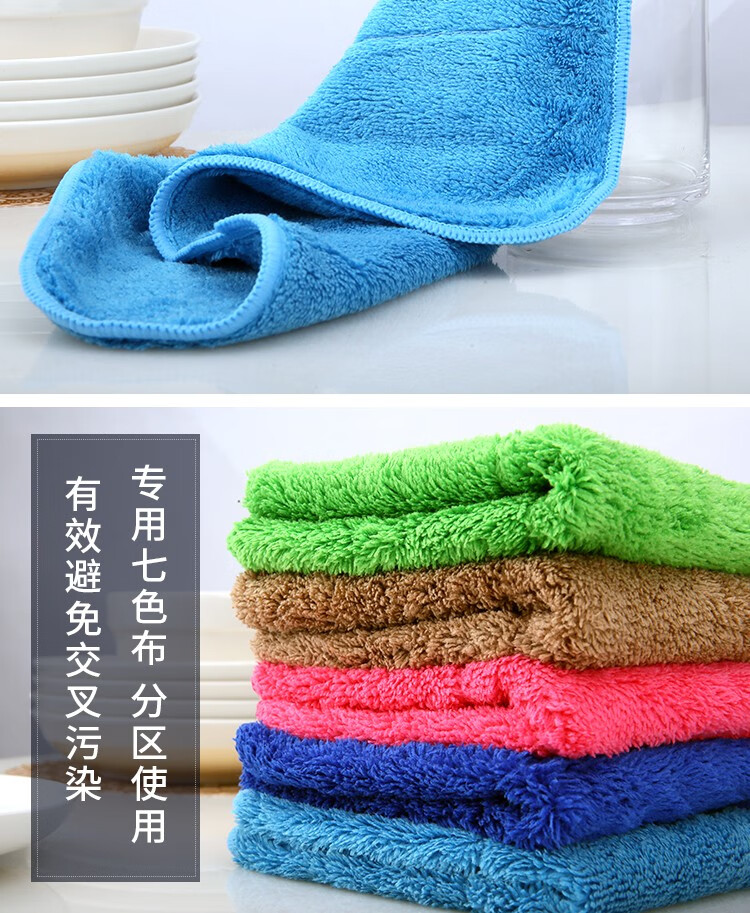 Renying seven-color cleaning rags for household cleaning, absorbent water, not easy to shed lint, thickened towels, glass bamboo fiber dishcloths, 5 dark blue coral velvet rags