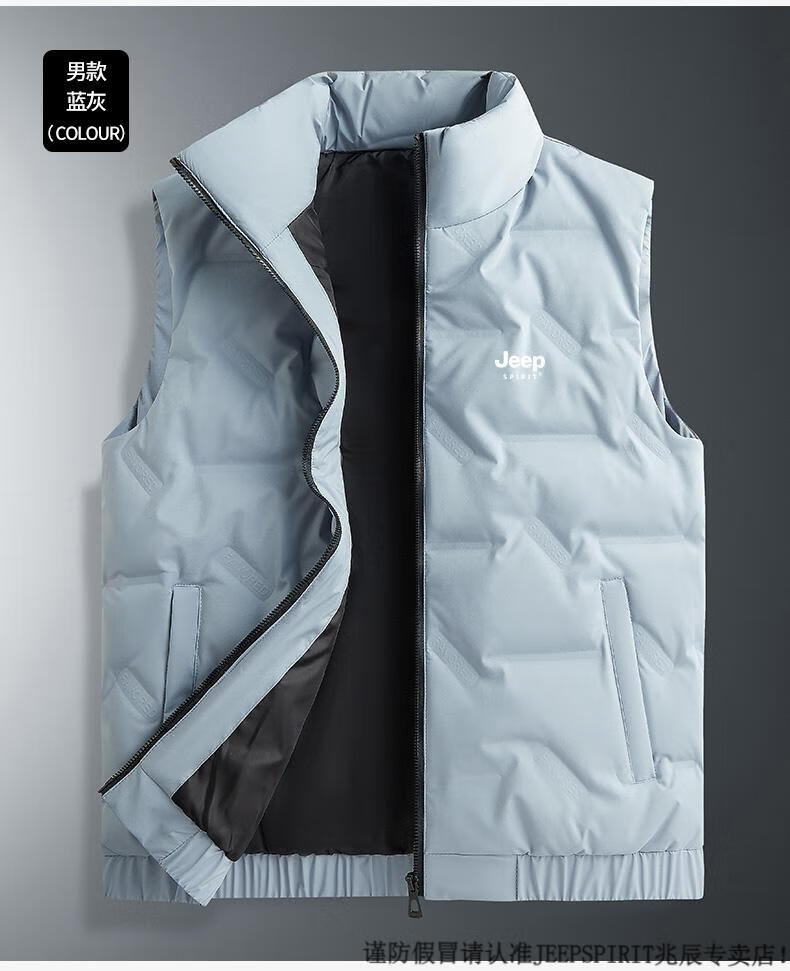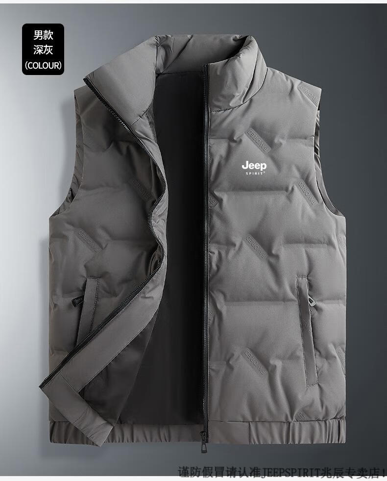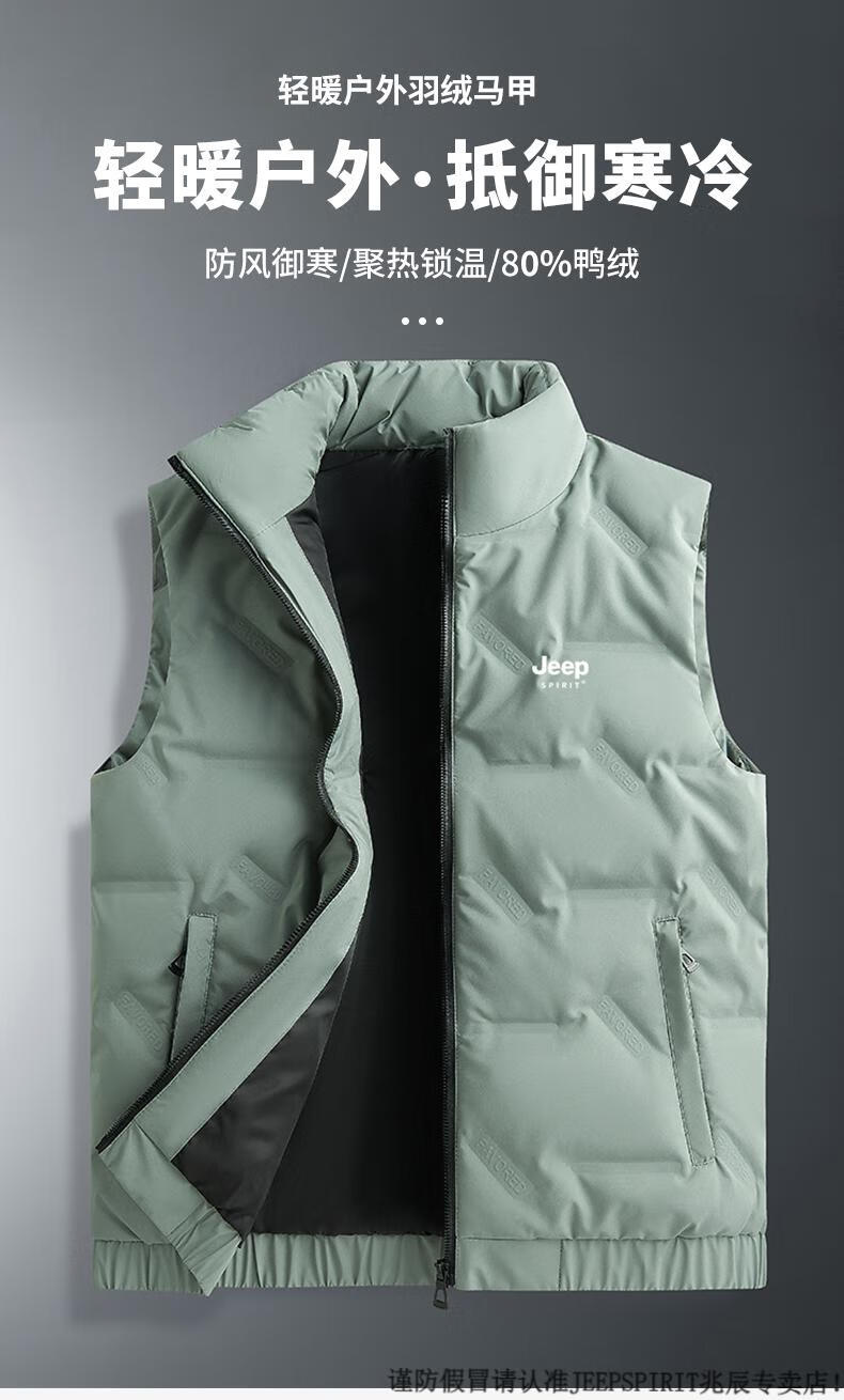 JEEP SPIRITJEEP Light Thin Down Vest Men's 2024 New Spring and Autumn Waistcoat Outer Wear Vest Men's Down Jacket Sleeveless Jacket Men's Style - Dark Gray 80 Duck Down 7XL