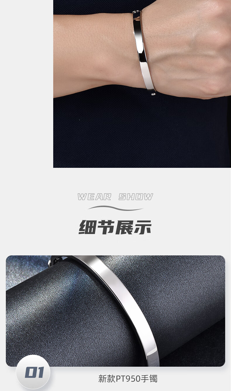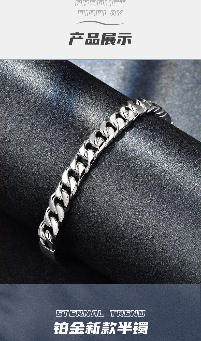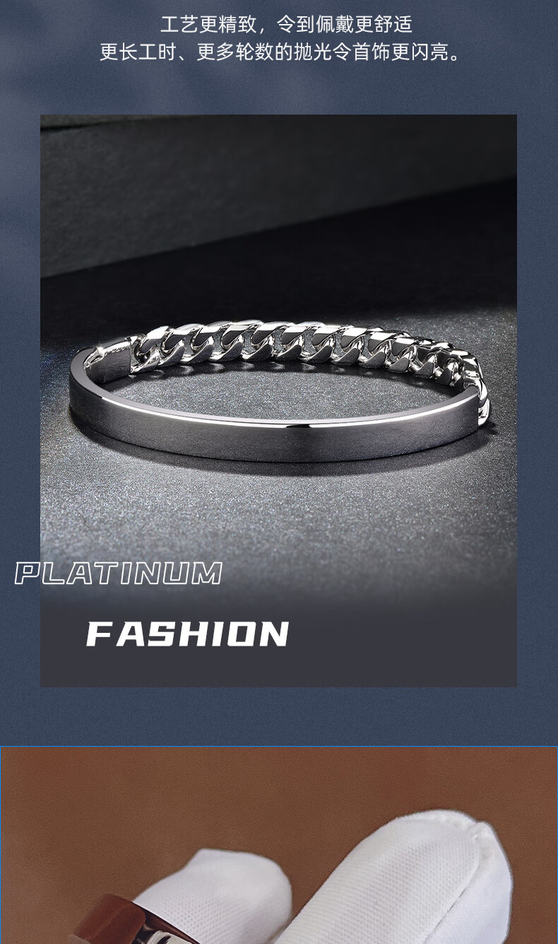 GsunG platinum bracelet men's new horsewhip bracelet half bracelet fashionable solid platinum bracelet men's and women's atmospheric glossy bracelet PT950 bracelet about 36 grams 58 rings pre-ordered