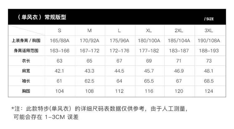 China (cm) 165 / 88-90 170 / 96-98 175 / 108-110 180 / 118-122 185 / 126-130