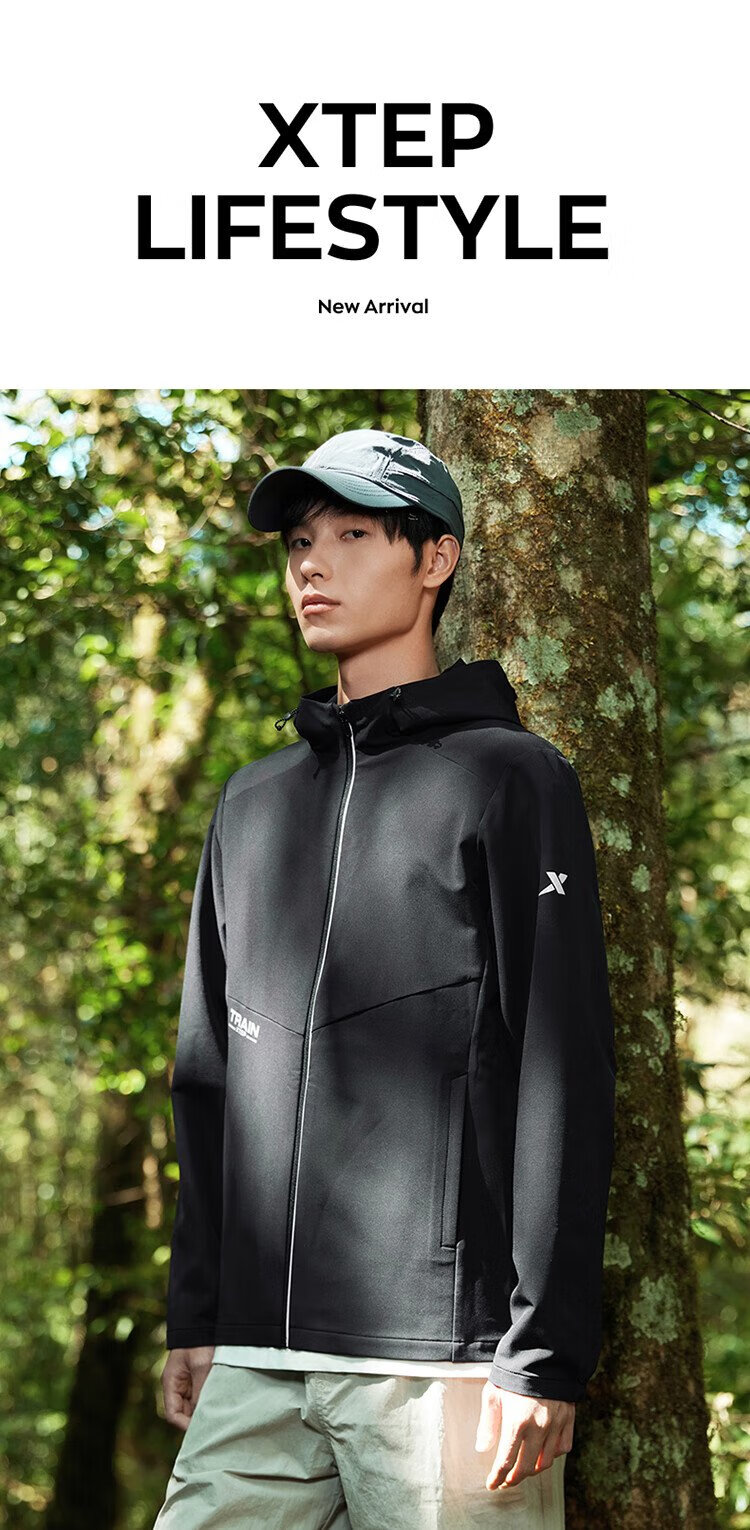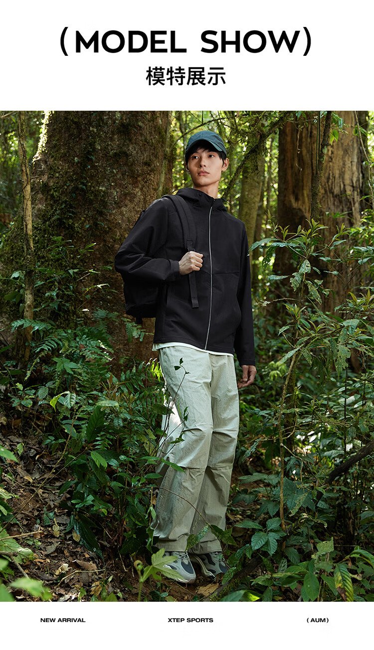 Xtep Water Repellent Jacket Men's Autumn New Hooded Training Jacket Windbreaker Outdoor Sports Top Oak Yellow-Splicing Color L