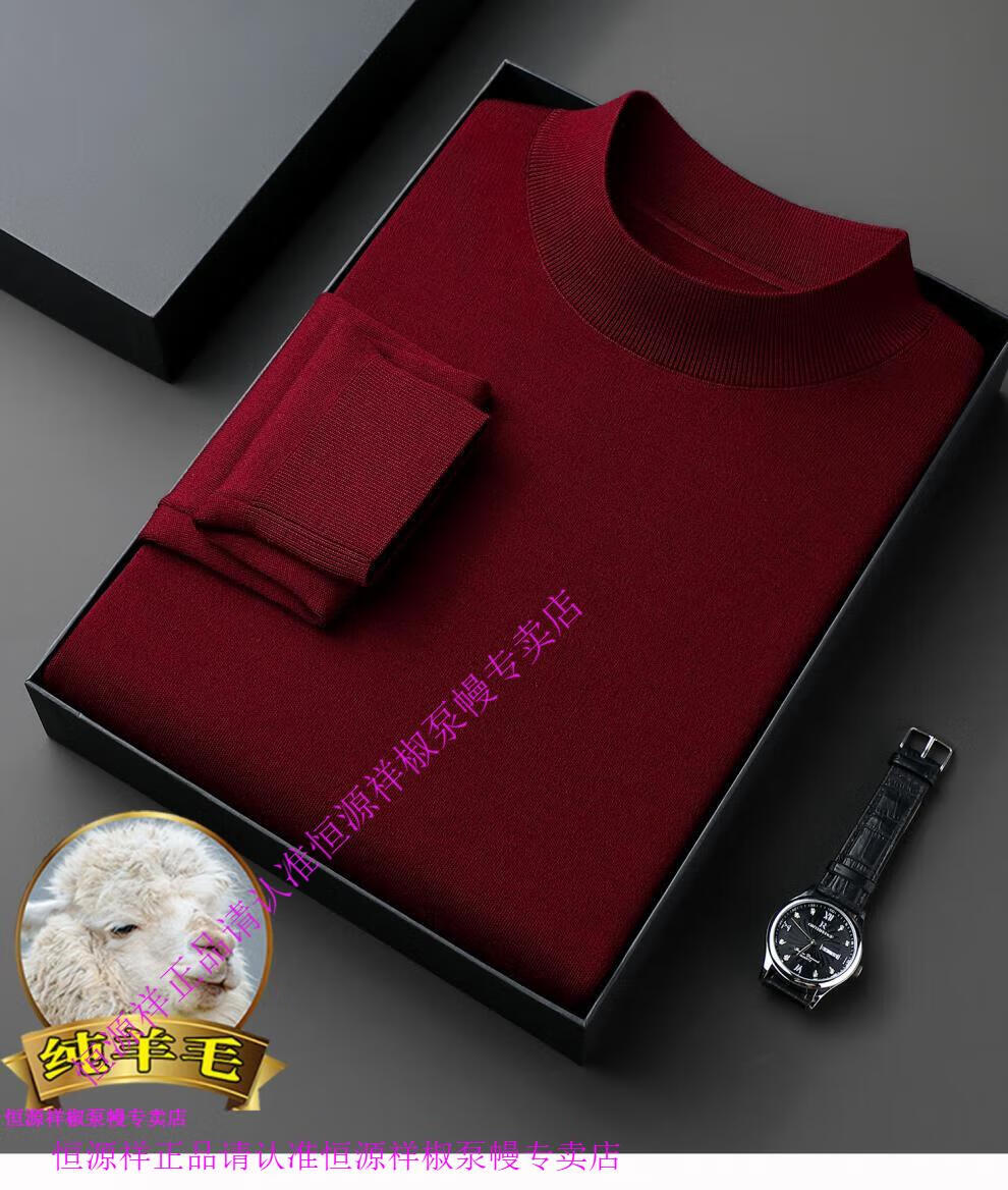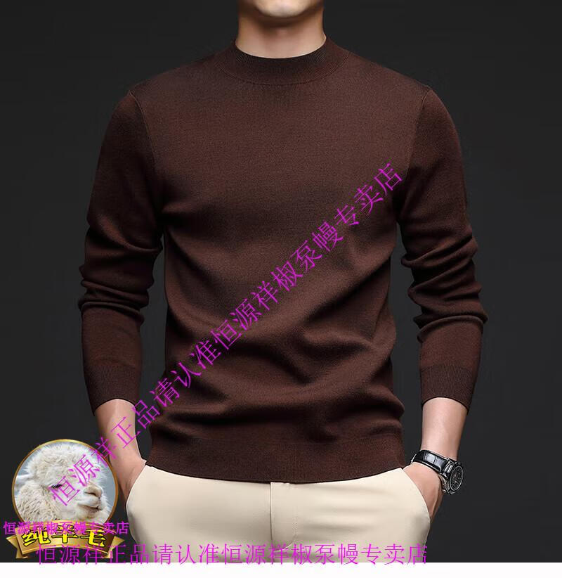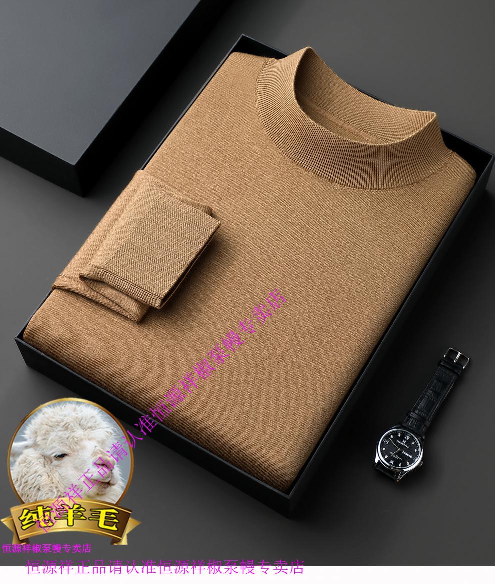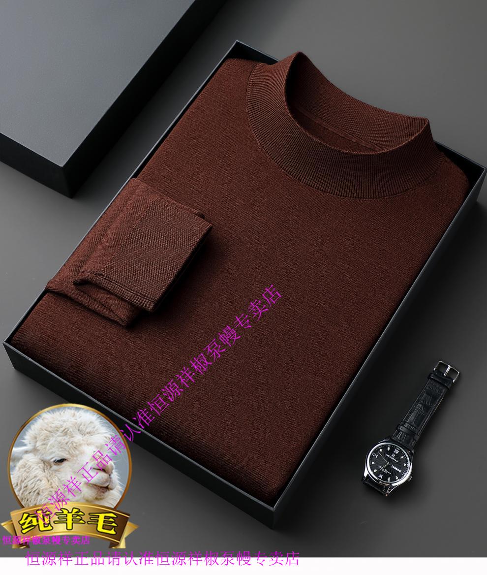 Hengyuanxiang Worsted 100% Pure Wool Sweater Men's Winter New Half Turtleneck Sweater Middle-aged Men's Warm Clothes Bottoming Sweater Light Brown Pure Wool XL 175 130 to 145Jin Jin is equal to 0.5 kg