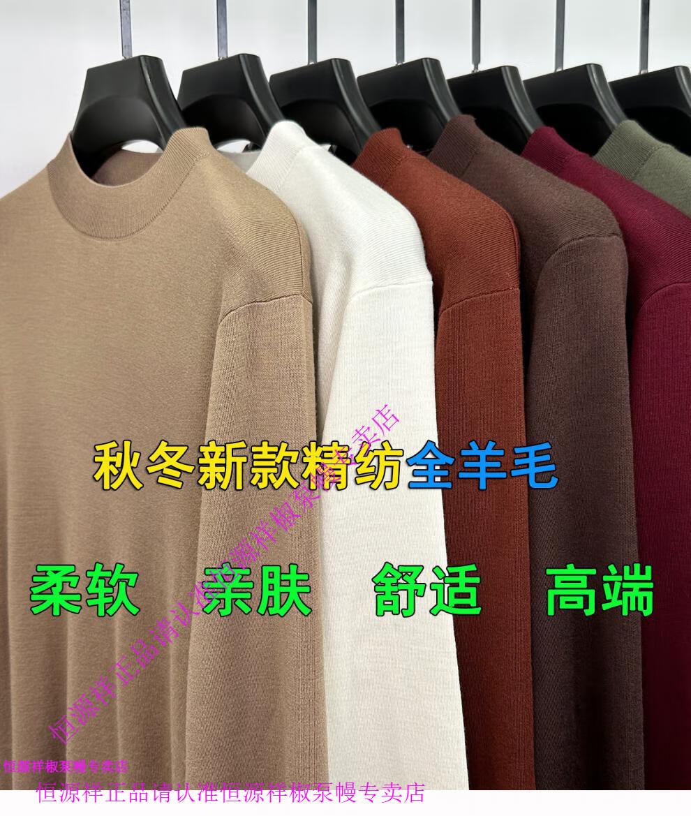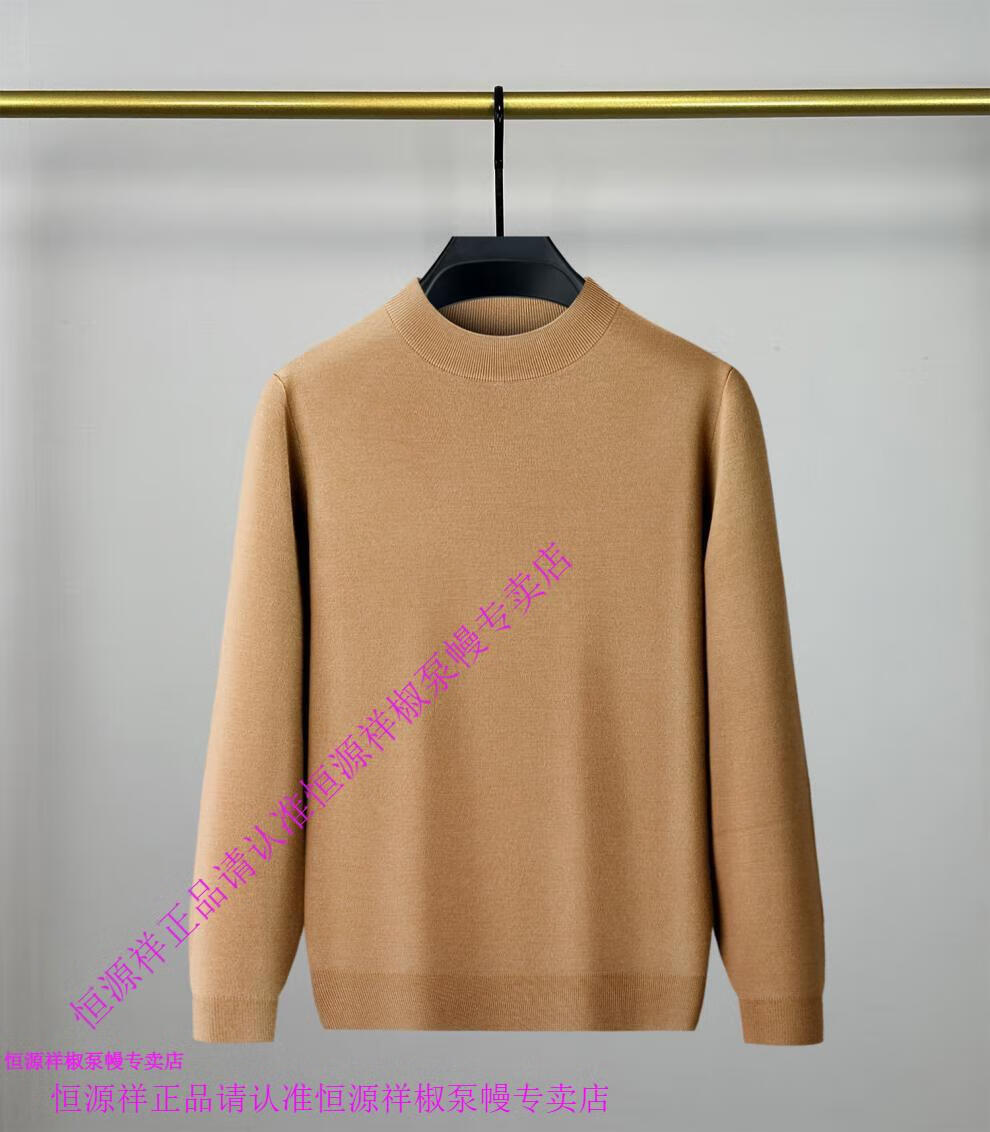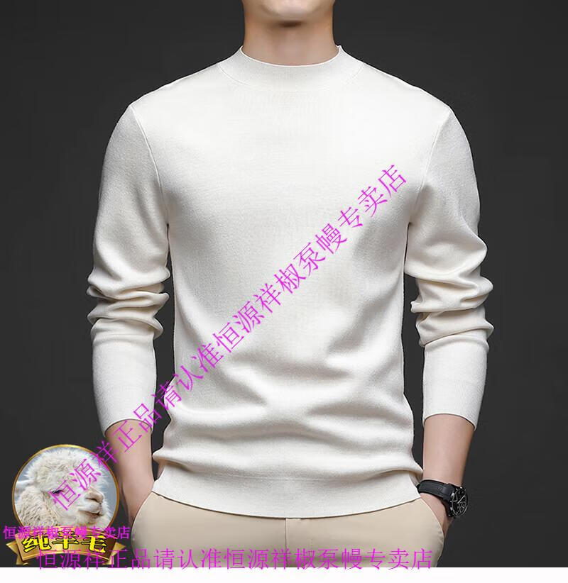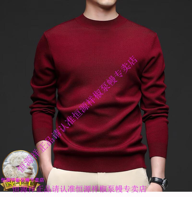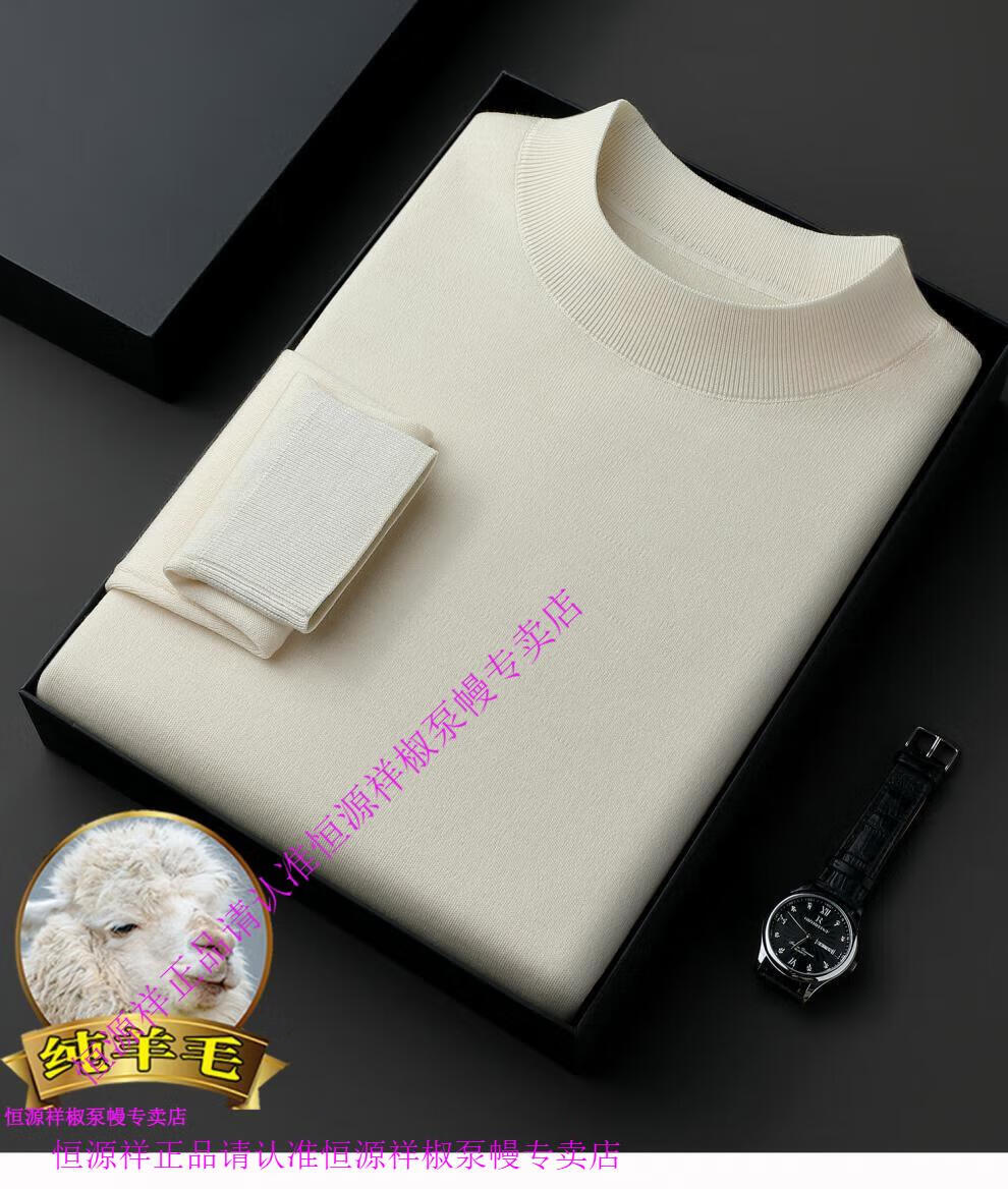 Hengyuanxiang Worsted 100% Pure Wool Sweater Men's Winter New Half Turtleneck Sweater Middle-aged Men's Warm Clothes Bottoming Sweater Light Brown Pure Wool XL 175 130 to 145Jin Jin is equal to 0.5 kg