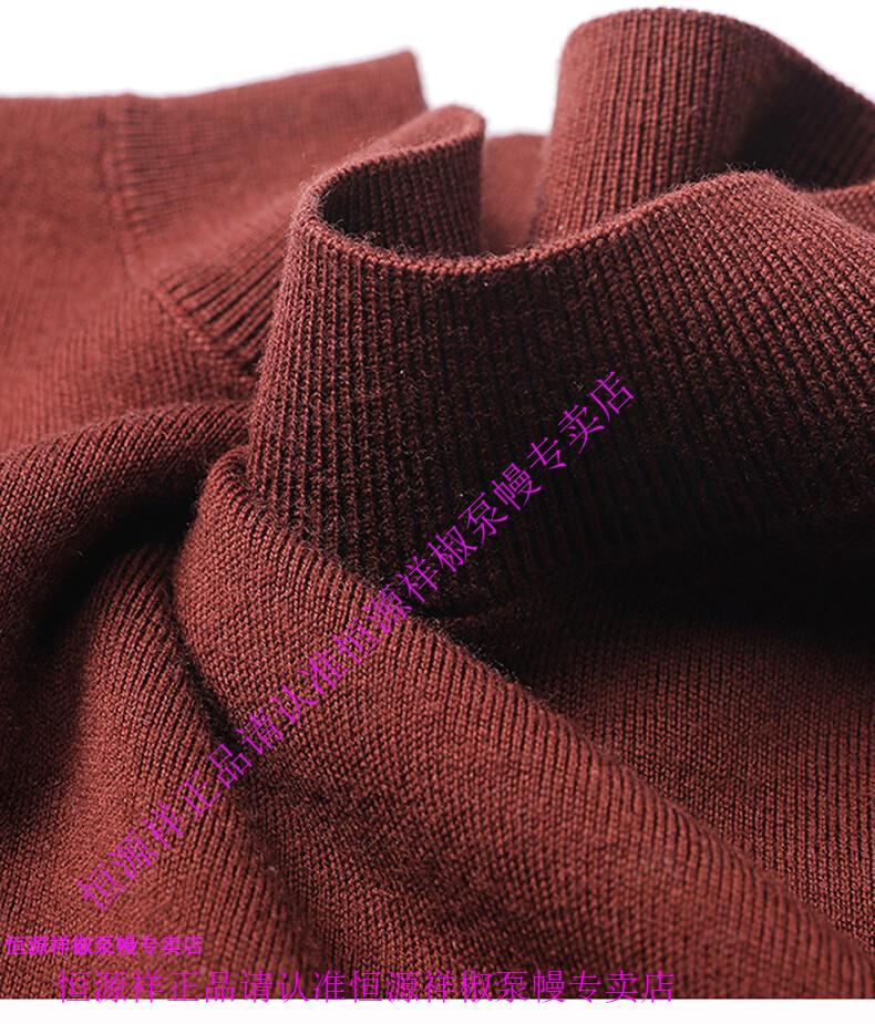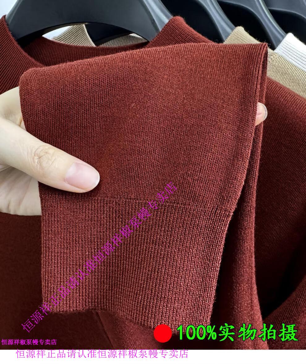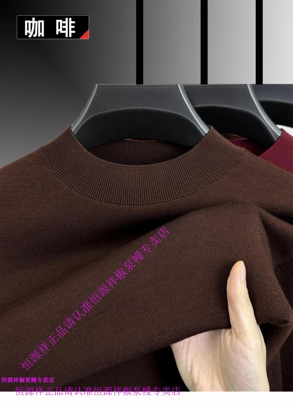 Hengyuanxiang 100% worsted pure wool sweater for men, machine washable winter mid-collar sweater for men, high-end all-wool thermal base layer sweater, light brown, 100% wool XL 175
