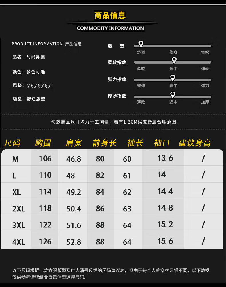 China (cm) 160-165/84-86 165-170 / 88-90 167-172 / 92-96 168-173 / 98-102 170-176 / 106-110