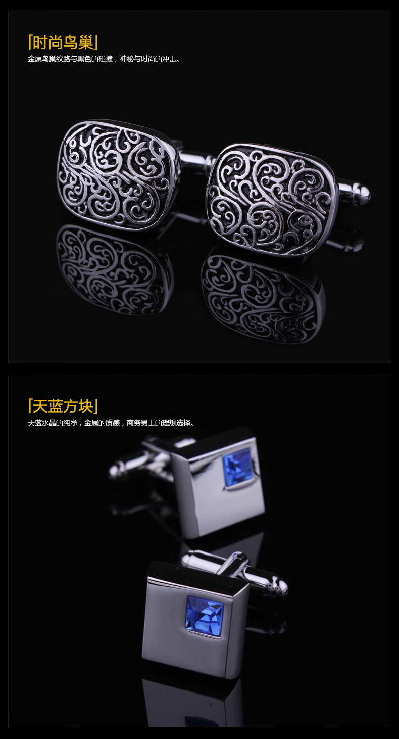Clolv kiss high-end gift box French shirt cufflinks cufflinks business men's cuff nails shirt buttons cuff buttons men's and women's square hollow diamond cufflinks gift box