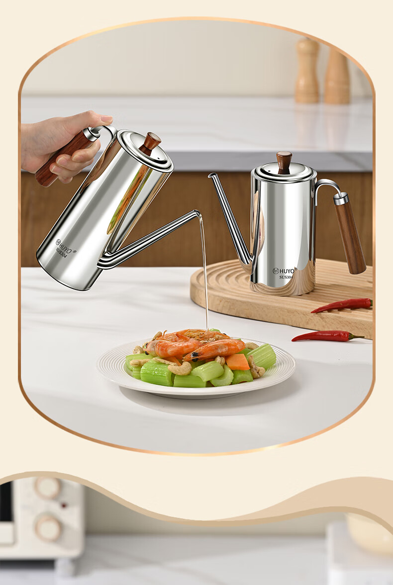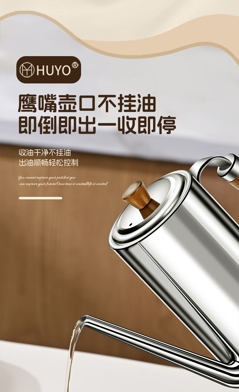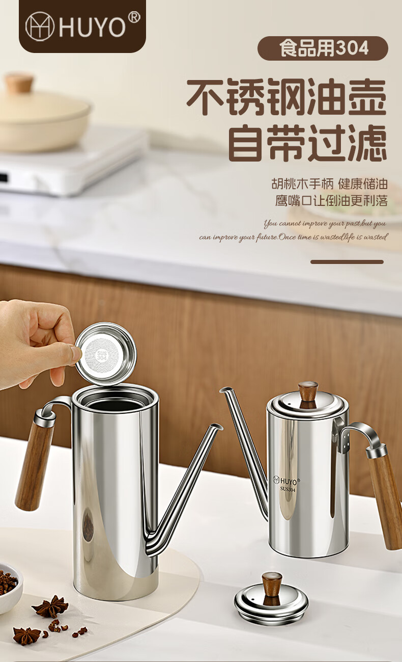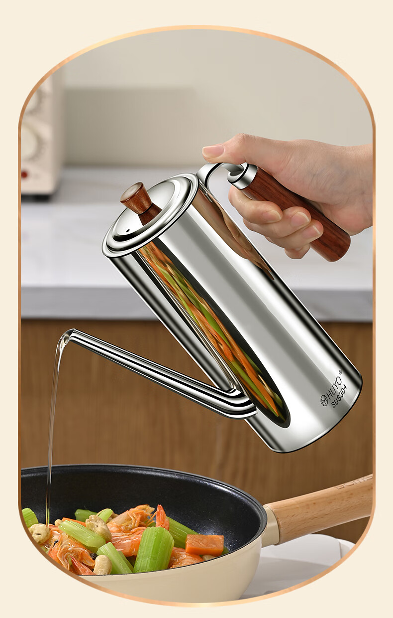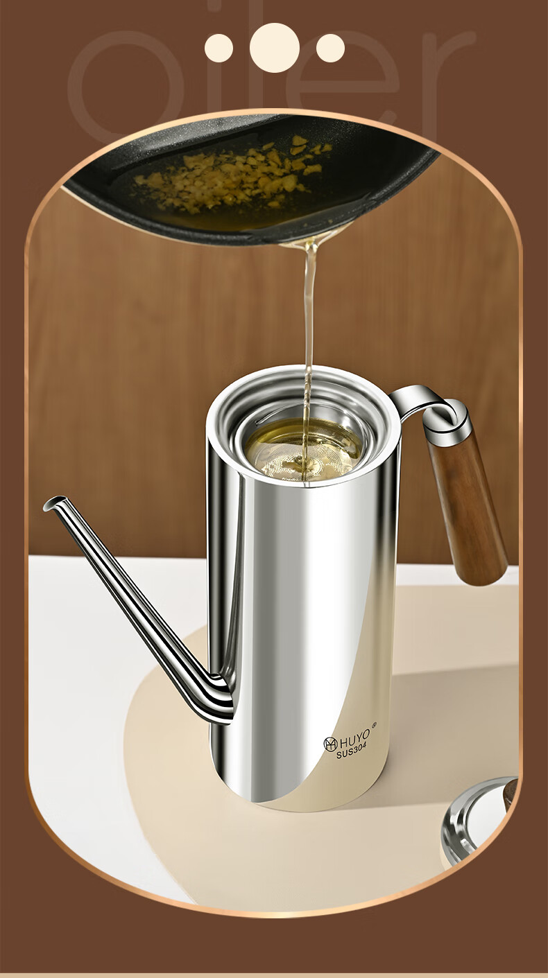 HUYO oil kettle kitchen 304 stainless steel oil filter kettle household with filter pouring oil bottle food grade thickened oil storage container walnut oil filter kettle large + free cleaning brush